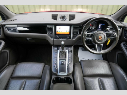 AIR SUSPENSION - SPORTS CHRONO - BOSE - Presented in the captivating hue of Carmine Red, contrasted by an Agate Grey leather interior, this 2017 67 registered Porsche Macan 3.0 TD V6 S PDK is an exceptionally specified example. With just 39,000 miles covered from new and boasting an impressive £16,000 in options, it represents one of the most comprehensively equipped models currently available. The lustrous Carmine Red finish is accentuated by the 21 911 Turbo Design alloy wheels, giving the car an assertive, purposeful stance. The Bi-Xenon main headlights in black, complete with Porsche Dynamic Light System (PDLS) add both visual drama and enhanced illumination, while high-gloss black door handles and openers, tinted LED taillights and black sports tailpipes from the sports exhaust system provide an elegant yet performance focused aesthetic. The panoramic roof system floods the cabin with natural light while the Macans engineering excellence is further elevated through air suspension with self-levelling, ride-height control and Porsche Active Suspension Management (PASM). Coupled with Power Steering Plus and Sport Chrono Package, the driving experience is both dynamic and immersive, unmistakably Porsche in character. Inside, the cabin exudes refined sophistication. The Comfort Memory Package with 14-way adjustable seats ensures the ideal driving position for any occupant, complemented by front seat heating, heated steering wheel and the Light Comfort Package. The Porsche Communication Management (PCM) system integrates navigation and a DVD player, working in harmony with the BOSE Surround Sound System. Practicality is well catered for too, with ParkAssist front and rear with reversing camera, Lane Keeping Assist, auto-dimming interior and exterior mirrors, and privacy glass.From every angle, this Macan 3.0 TD V6 S PDK conveys an aura of discreet power and assured elegance.****VIEWING STRICTLY BY APPOINTMENT ONLY - FOR FURTHER INFORMATION REGARDING THIS VEHICLE AND ANY OTHER PREMIUM MARQUE IN STOCK, PLEASE CALL SALES DIRECT. VEHICLE FINANCE SPECIALISTS****