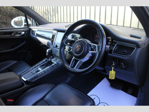20 RS SPYDER ALLOYS - PASM - BOSE - Presented in Carrera White metallic with black leather upholstery, this 2017 67 registered Porsche Macan 3.0 TD V6 S PDK has covered just 61,000 miles from new, representing an outstanding example. Fastidiously maintained and equipped with over £10,000 of options, it offers a rare combination of refinement and exemplary specification. The exterior is defined by the striking 20 RS Spyder Design alloy wheels, perfectly complementing the crisp Carrera White paintwork. Subtle yet purposeful enhancements include the Monochrome Black high-gloss exterior package and door handles finished in high-gloss black, while the Porsche logo and model designation painted to match provide a discreet, elegant finish. The panoramic roof system adds a sense of openness to the cabin while Illumination is provided by the Bi-Xenon lighting system with Porsche Dynamic Light System (PDLS), ensuring outstanding visibility. Lane Change Assist and the speed limit indicator add further confidence, while Power Steering Plus enhances low speed manoeuvrability. Inside, the Macan continues to impress with the highly desirable Comfort Memory Package featuring 14-way electrically adjustable front seats, automatic dimming mirrors and the Light Comfort Package. Heated front seats further enhance comfort during colder months. The Porsche Communication Management (PCM) system with navigation and DVD player integrates seamlessly with the BOSE Surround Sound System, offering exceptional connectivity, clarity and entertainment. ParkAssist front and rear with a reversing camera ensures effortless parking. Supported by Porsche Active Suspension Management (PASM), this Macan S delivers the perfect balance of ride comfort and dynamic agility. Fully prepared and presented in immaculate condition, this Macan stands out as a beautifully specified, meticulously maintained example. ****VIEWING STRICTLY BY APPOINTMENT ONLY - FOR FURTHER INFORMATION REGARDING THIS VEHICLE AND ANY OTHER PREMIUM MARQUE IN STOCK, PLEASE CALL SALES DIRECT. VEHICLE FINANCE SPECIALISTS****
