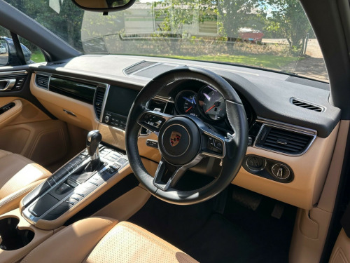This exceptional Porsche Macan 3.0 V6 S PDK 4WD Euro 6 5door in metallic Blue with a very low mileage of just 33,306 miles for its 2017 registration. This four wheel drive model is powered by a 3.0 litre petrol engine and meets Euro 6 emissions standards. Its provenance is further assured with a clear vehicle history check and a Full Service History, most recently Serviced on 09 August 2024 at 27,446 miles. The MOT remains valid until July 2026 with NO Advisories, and it comes with a 6 month RAC Platinum Warranty for your peace of mind. Inside, you'll find luxurious two tone Black and Luxor Beige Leather Upholstery, 19'' Macan Turbo Alloy Wheels complemented by 18 way Adaptive Sports Seats with a Memory Package and a Panoramic Roof system for an airy cabin feel. For enhanced convenience and safety, it features Front and Rear Park Assist with a 360 Degree Surround View Camera System, providing excellent visibility when manoeuvring and Lane Departure with Lane Changing Assist. The inclusion of 'Connect' further enhances the modern driving experience along with Light Comfort Package. These features collectively indicate how this Porsche Macan S offers a superior package compared to other vehicles in its class.This Macan S offers a compelling driving experience, highlighted by its impressive 0 to 62mph acceleration in just 5.4 seconds, demonstrating its sporty performance. The vehicle also boasts a low insurance group, making it more economical to own. Practicality is not overlooked, with generous boot space ideal for luggage or shopping.It is supplied with 2 keys, 6 Months RAC Platinum Warranty and 12 Months Breakdown Cover.NO ULEZ charge.Competitive finance packages arranged with rates starting from 9.9% APR (Subject to status).Part exchange welcome. HPI Clear. Call now to arrange a viewing. el tank - 75litre, wheel caps - full colour centre, panoramic roof system, lane departure with lane change assist, park assist - front and rear with surround view, 19in alloy wheels - macan turbo, connect, light comfort package - pp8, seat - adaptive sports seats with memory package - 18-way, leather two-tone - black - luxor beige, 18in alloy wheels - macan s, 8-way power seat on the driver and 6-way manual adjustment on the passenger seat, accent trim in silver-coloured finish, active radiator grille shutters, alarm and engine immobiliser with in-key transponder - two-stage locking, auto-hold function, automatic headlight activation including welcome home lighting, automatic rear hatch, bench seat in rear with two comfort seats outside left and right and a centre seat, bottle holders in door panels - front and rear, brake calipers - silver, bumpers comprising high-strength cross members and two deformation elements each with one threaded fixture point for towing eye contained in on-board tool kit, climate control - three zone, clothes hooks on the b-pillars, coasting function, cruise control, curtain airbags for cover across the entire roof frame and side glazing from the a-pillar to c-pillar, digital boost pressure gauge in the colour display of the instrument cluster, digital radio, door sill guards in aluminium with model designation at front, electric parking brake, electric windows - front and rear - remote closing function - anti trap protection and one touch operation, electrically adjustable and heated electrically folding exterior mirrors - aspherical on drivers side, fixed - removable luggage compartment cover, fog lights integrated into front end, folding front centre armrest - with fore-aft adjustment, four-way headrests - front, front apron with integrated air inlets, front fog lights, front light units with position lights and direction indicators with led guide technology, full size airbags for driver and front passenger, headlights - halogen, heated rear window with auto-off function, high-level third brake light - led integrated into roof spoiler, isofix mounting points for child seats on outer rear seats, instrument cluster with high-resolution 4.8in colour display - gear indicator - service interval display - external temperature indicator - fuel gauge and various warning displays, integrated aerial system for audio - navigation - telephone and tv, integrated cluster of three round instruments, interior lighting concept, interior package - piano black, interior trim in piano black finish, led tail lights with adaptive brake lights, lane departure warning, loading edge protection in aluminium, multi-collision brake, multifunction sports steering wheel with shift paddles - steering wheel rim in smooth-finish leather, non-smoker package, off road button, on-board computer, porsche logotype and model designation on rear lid in chrome look, psm - porsche stability management, ptm - porsche traction management, particle-pollen filter with active carbon filter, passenger airbag deactivation function for mounting child seats including display in overhead console, porsche car connect including porsche vehicle tracking system plus - pvts plus, porsche communication management - pcm, porsche hill control - phc, power steering, preparation for towbar system, rear armrest with two integral cupholders, rear screen wiper with intermittent wipe and washer jet, rear seats with separately folding bench seat - 40-20-40 and folding centre armrest, recommended gear for optimum fuel economy displayed in manual gearshift mode, remote central locking, rollover detection system enabling early deployment of curtain airbags and seat belt pretensioners, roof lining in fabric, round instrument with silver coloured rev counter, seat belt pretensioners and force limiters - manually adjustable seat belt height - reminder warning, side airbags at front - integrated in the seat, side window trims - aluminium, side-impact protection beams, sideblades - lava black, sound package plus, sport mode button, steel spring suspension, storage compartments in the interior, three point automatic seat belts, three sockets - 12-