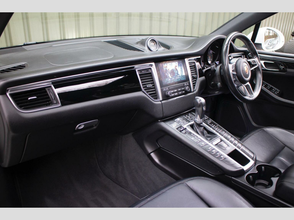 SPORTS CHRONO - 20 RS SPYDER ALLOYS - LED LIGHTS - 2018 18 registered and presented in timeless Gloss White over a Black partial leather interior, this exceptional Porsche Macan 3.0 V6 S PDK has covered just 37,000 miles from new and represents a particularly well specified and carefully maintained example of the model. At its heart lies Porsches characterful 3.0 litre V6, paired seamlessly with the seven speed PDK dual clutch transmission, delivering strong, immediate performance with the precision and composure expected of the marque. The driving experience is further elevated by Porsche Active Suspension Management and the Sport Chrono Package, endowing the car with impressive agility and control while retaining everyday comfort and refinement. This car benefits from approximately £12,000 of factory options including LED main headlights incorporating Porsche Dynamic Light System Plus provide superb visibility, while the 20 RS Spyder Design wheels and sports exhaust system with silver tailpipes lend the car a purposeful, sporting presence. A panoramic glass roof floods the cabin with natural light, complemented by Porsche Communication Management with navigation, ParkAssist with reversing camera, Lane Keeping Assist and a suite of convenience features including heated front seats, heated steering wheel, automatically dimming mirrors, privacy glass and Power Steering Plus. Subtle detailing reflects the care taken with the specification, including Porsche crests embossed on the head restraints, Garnet Red seat belts, high gloss black exterior elements, Piano Black interior package and an aluminium look fuel filler cap, all combining to create a cabin environment that feels both distinctive and impeccably finished. As one would expect of such modest mileage, the car presents in pristine condition throughout. A meticulously maintained example. ****VIEWING STRICTLY BY APPOINTMENT ONLY - FOR FURTHER INFORMATION REGARDING THIS VEHICLE AND ANY OTHER PREMIUM MARQUE IN STOCK, PLEASE CALL SALES DIRECT. VEHICLE FINANCE SPECIALISTS OFFERING COMPETITIVE PACKAGES****