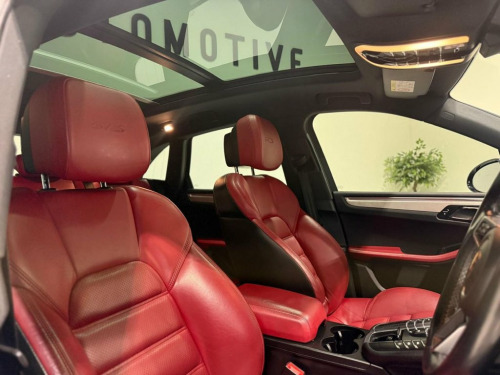 CTC Automotive are pleased to present this truly stunning Porsche MACAN 3.0T V6 GTS SUV 5dr Petrol PDK, Finished in Jet Black Metallic with full Red contrasting leather, This Macan GTS also comes with a selection of upgraded extras from factory such as :-Panoramic roof system, Navigation Module for Porsche Communication Management (PCM) , BOSE® Surround-Sound-System, Metallic paint, Lane Keeping Assist, ParkAssist (front and rear) with reversing camera, Privacy glass, Seat heating (front), Automatically dimming exterior and interior mirrors (i.c. w Comfort Memory Package) Heated steering wheel, 18-inch collapsible spare wheel, Smoker package, 75-litre fuel tank, Black-Garnet Red two-tone leather interior package with leather seats £0 Jet Black - Metallic, Sideblades painted in exterior colour, Sports exhaust system incl. Sports tail pipes black 20in Alloy Wheels - RS Spyder Design Whe, Accent Trim in Silver-Coloured Finish, Active Radiator Grille Shutters, Alarm and Engine Immobiliser with In-Key, Auto-Hold Function, Automatic Headlight Activation including, Automatic Rear Hatch, Bench Seat in Rear with Two Comfort Seat, Bi-Xenon Headlights in Black, Bottle Holders in Door Panels - Front an, Brake Calipers - Red, Bumpers Comprising High-Strength Cross M, Climate Control - Three Zone, Clothes Hooks on the B-Pillars, Coasting Function, Cruise Control, Curtain Airbags for Cover Across the Ent, Digital Boost Pressure Gauge in the Colo, Digital Radio, Door Sill Guards in Aluminium with Model, Electric Parking Brake, Electric Windows - F