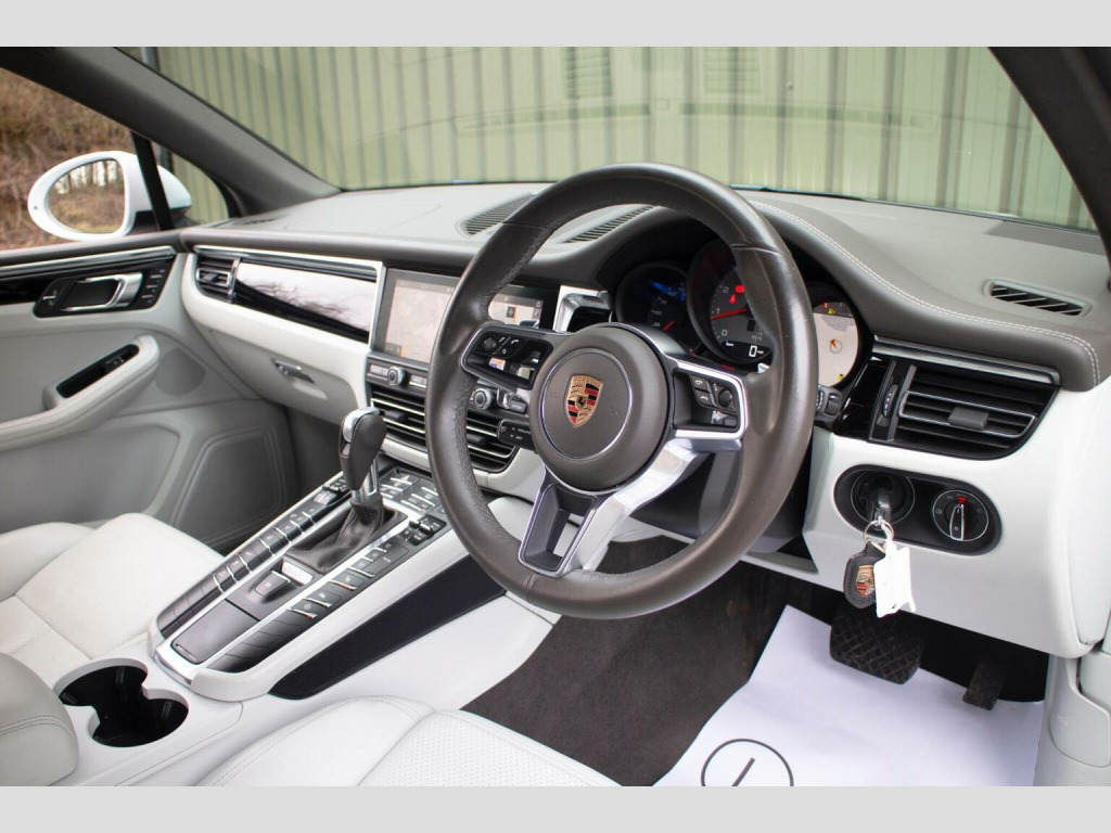 21 ALLOYS - DEPLOYABLE TOW BAR - Presented is a superb 2019 19 registered Porsche Macan 3.0T V6 S PDK, finished in the highly coveted Carrera White Metallic and beautifully complemented by a Pebble hide interior. Having covered just 31,000 miles from new and benefitting from a single, careful owner, this outstanding example is both rare and impeccably maintained. Specified with approximately £12,000 of carefully selected factory options, this Macan S combines distinctive presence with exceptional comfort and versatility. The striking 21 911 Turbo Design alloy wheels create an athletic stance, further enhanced by sideblades painted in the exterior colour, the Monochrome Black high-gloss exterior package, privacy glass and a painted rear mid-section for a clean, cohesive finish. Inside, the Agate Grey and Pebble Grey two tone leather interior provides an elegant environment, elevated by 14-way electric front seats with memory package. Heated front seats, heated steering wheel and a heated windscreen ensure year round usability, while automatically dimming interior and exterior mirrors add further convenience. Technology and practicality are equally impressive. Porsche Communication Management (PCM) with integrated navigation delivers seamless infotainment, complemented by Porsche Entry & Drive for effortless access and start up. ParkAssist front and rear with reversing camera simplifies everyday manoeuvring, while Power Steering Plus enhances low speed agility. The electrically extending towbar system adds practicality without compromising the vehicles sleek design and subtle finishing touches such as Porsche crests embossed on the front head restraints underscore the attention to detail throughout. Presented in what is arguably one of the finest and most seldom seen colour combinations available, this Macan 3.0T V6 S PDK is a particularly special example. ****VIEWING STRICTLY BY APPOINTMENT ONLY - FOR FURTHER INFORMATION REGARDING THIS VEHICLE AND ANY OTHER PREMIUM MARQUE IN STOCK, PLEASE CALL SALES DIRECT. VEHICLE FINANCE SPECIALISTS****