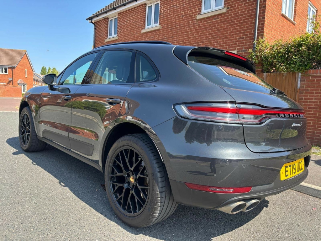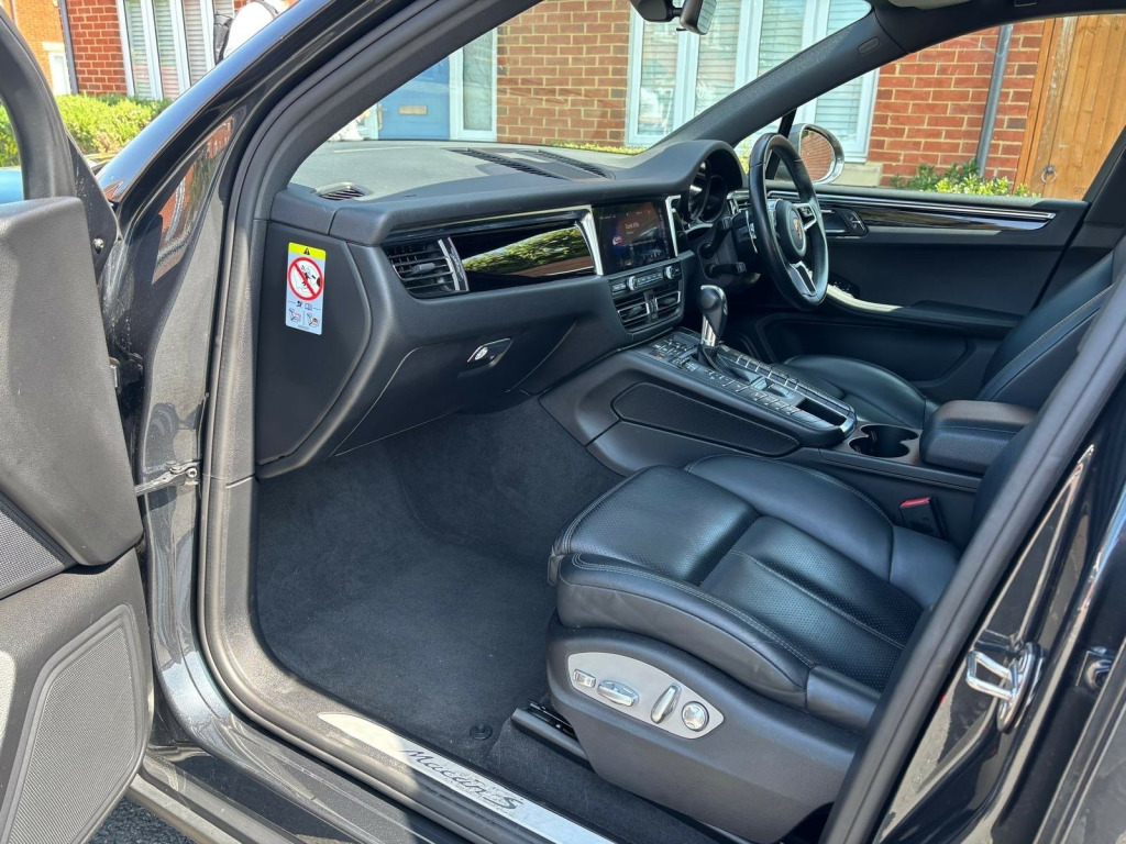 This 2019 Porsche Macan 3.0T V6 S SUV, with just 58000 miles on the clock, is the perfect combination of luxury and practicality. Powered by a Petrol engine and equipped with a PDK 4WD Euro 6 (s/s) transmission, this 5-door SUV has 5 seats, making it ideal for families or those who simply love a spacious ride. The MOT is valid until 05/10/2026, and it's also ULEZ compliant, so you can drive with peace of mind in the city. The sleek and stylish exterior is complemented by 18in Alloy Wheels - Macan S, along with other features such as Active Air Intake Flaps and Brake Calipers with Titanium Coloured Finish, enhancing both performance and aesthetics. With Bumpers Comprising High-Strength Cross Members and Combination Floating Calipers at Rear, this is a sturdy and reliable vehicle that's sure to turn heads. Don't miss out on the opportunity to own this stunning SUV. in alloy wheels - macan s, active air intake flaps, brake calipers with titanium coloured finish, bumpers comprising high-strength cross members and two deformation elements each with one threaded fixture point for towing eye contained in on-board tool kit, combination floating calipers at rear, electric windows - front and rear - remote closing function - anti trap protection and one touch operation, electrically adjustable and heated electrically folding exterior mirrors - aspherical on drivers side, front end with integrated air intake, front light units with position lights and direction indicators with led guide technology, fully galvanised body, heated rear window with auto-off function, porsche logo and model designation on rear hatch in chrome look, roof spoiler in high-gloss black, side window trims - aluminium, sideblades - lava black, six-piston aluminium monobloc fixed brake calipers at front, tinted thermally insulated glass all round, two twin tailpipes outside left and right with matt silver-coloured finish, tyre sealing compound and electric air compressor, 2-way headrests except for central rear seat, accent trim in silver-coloured finish, automatic tailgate, b- pillar clothes hooks on driver and passenger side, bottle holders in door panels - front and rear, climate control - three zone, coasting function, comfort seats - front, fixed - removable luggage compartment cover, floor mats, folding front centre armrest - with fore-aft adjustment, four-way headrests - front, front wipers system with two speeds - intermittent wipe and rain sensor, instrument cluster with high-resolution 4.8in colour display - gear indicator - service interval display - external temperature indicator - fuel gauge and various warning displays, integrated cluster of three round instruments with black rev counter, interior trim in piano black finish, led interior lighting concept, loading edge protection in aluminium, multifunction sports steering wheel with shift paddles - steering wheel rim in smooth-finish leather, non-smoker package, particle - pollen filter, rear armrest with two integral cupholders, rear seats with separately folding bench seat - 40-20-40 and folding centre armrest, roof lining in fabric, storage compartments in the interior, two variable-diameter cupholders in front, abs - anti-lock brake system, alarm system with ultrasonic interior surveillance, auto-hold function, central locking with remote control, curtain airbags for cover across the entire roof frame and side glazing from the a-pillar to c-pillar, electric parking brake, engine immobiliser with in-key transponder, full size airbags for driver and front passenger, isofix mounting points for child seats on outer rear seats, multi-collision brake, psm - porsche stability management, ptm - porsche traction management, passenger airbag deactivation function for mounting child seats including display in overhead console, porsche hill control - phc, rear screen wiper with intermittent wipe and washer jet, rollover detection system enabling early deployment of curtain airbags and seat belt pretensioners, side airbags at front - integrated in the seat, side-impact protection beams, three point automatic seat belts, automatic headlight activation including welcome home lighting, high-level third brake light - led integrated into roof spoiler, led headlights with automatic - static range control with 4-point led daytime running lights, three-dimensional led tail lights with integral 4-point brake lights and light strip, connect plus, digital radio, hi-fi sound system with 10 speakers and a total output of 150 watts with integrated amplifier and digital signal processing, integrated 4g-lte compatible sim, porsche communication management - pcm, preparation for towbar system, two sockets - 12-volt - centre console in front - luggage compartment, two usb charging ports in the rear centre console, usb charging and connectivity sockets in centre console storage compartment, cruise control with speed limiter, engine water cooled with thermal management, lane departure warning, manual controls - gearshift paddles on steering wheel and auto mode - recommended gear for optimum fuel economy displayed in manual gearshift mode, off road button, on-board computer, park assist with optical and acoustical warning - front and rear, power steering, sport mode button, steel spring suspension, tyre pressure monitoring system - tpm