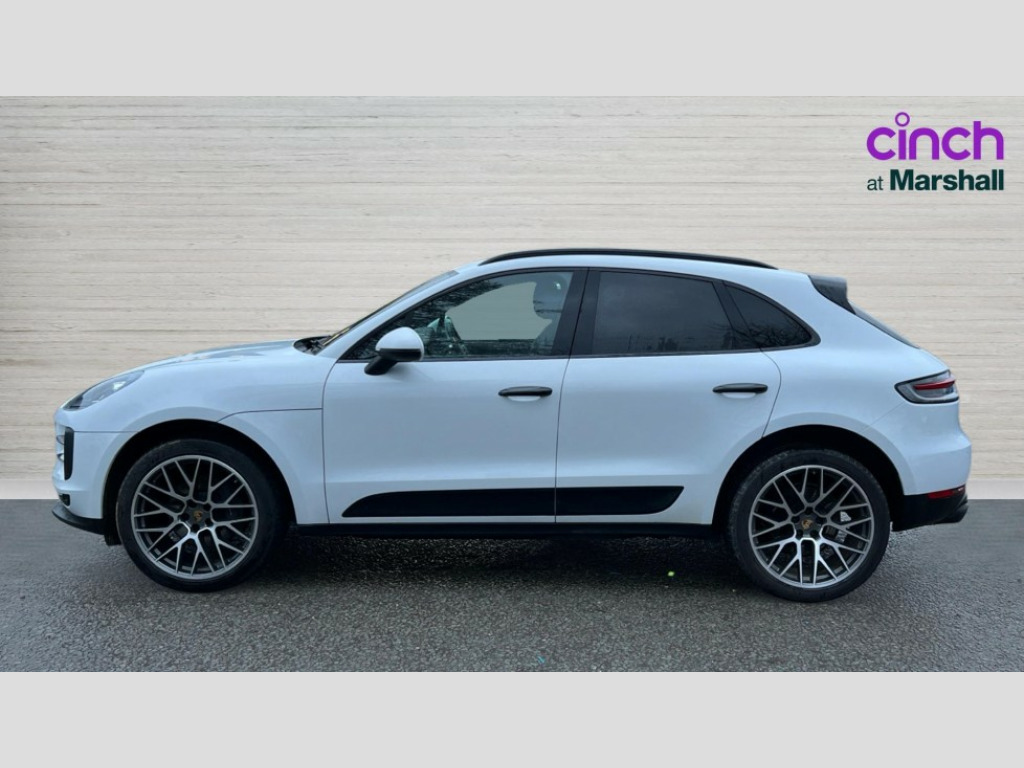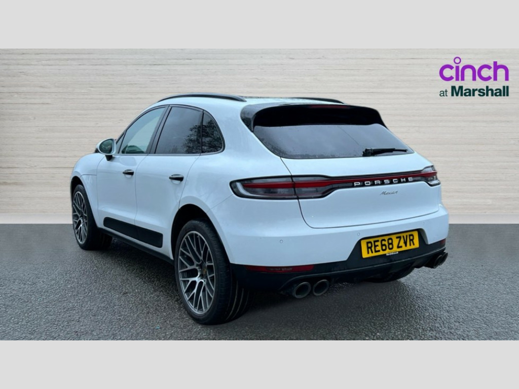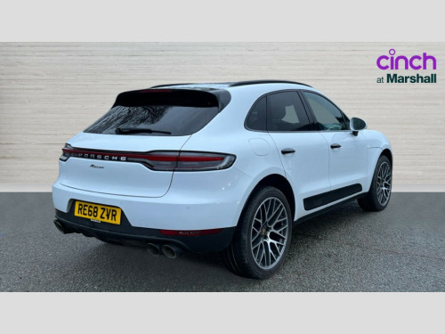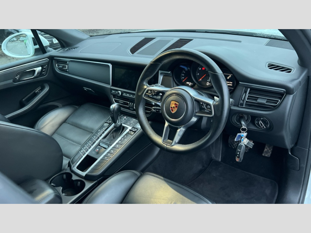 Porsche Macan 5dr PDK Automatic start/stop system, Coolant temperature gauge, External temperature gauge, Fuel gauge, Instrument cluster with high-resolution 4.8-inch TFT colour display, Integrated cluster of three round instruments with black rev counter, Mobile telephone preparation, Off-road button, On board computer, PCM navigation module, Power tailgate, Service interval indicator, Sports button in centre console, Voice control system, 7 Speed Porsche Doppelkupplung with manual controls on steering wheel and automatic mode, Gasoline particulate filter, Porsche stability management (PSM), Steel spring suspension including Porsche Active Suspension Management (PASM), 2 USB sockets in rear, Connect Plus with Apple CarPlay, wireless internet access, Carfinder, Remote Vehicle Status and Remote Services, DAB Digital radio, USB charging and connectivity socket in the centre console storage compartment, 2 speed front wipers + intermittent wipe, Active air intake flaps, Aspherical driver's exterior mirror, Automatic headlamp activation, Electric front and rear windows + anti trap + one touch, Electric/heated/folding door mirrors, Front end with integrated air intakes, Fully galvanised body, Heated rear window with automatic switch off, High level 3rd LED brake light integrated into roof spoiler, Integral side impact protection, Loading edge protection in aluminium, Porsche logo and model designation on rear hatch in high gloss silver, Rain sensor, Rear window wiper with intermittent function and washer jet, Roof spoiler in high gloss black, Three dimensional LED taillight with integrated 4 point brake lights and lighting strip, Towbar preparation, Trailer Stability Programme, Two single tube exhaust tailpipes in matt silver finish on left and right sides, Welcome home function, 12V power outlets in front console and luggage compartment, 3 zone climate control, 4 way adjustable front head restraints, 40:20:40 split folding rear bench seat, Air quality sensor, Automatic air recirculate, Cloth hook b-pillar, Fold up centre console armrest with fore/aft adjustment, Front and rear door pockets with bottle holders, Front cupholders x 2, Front reading lights, Glovebox illumination, Ignition Lock illumination, Illuminated centre console storage, Illumination of luggage compartment, Isofix system on outer rear seats, Luggage compartment cover, Pollen filter, Rear armrest with 2 cupholders, Rear reading lights, 3 point automatic seatbelts, 345mm diameter at front and 330mm at rear discs brakes, ABD, Anti-lock braking system (ABS), ASR, Auto hold function, Black painted brake calipers, Curtain airbags, Electronic parking brake, Front seatbelt pretensioners + load limiters, Front side airbags, Full size driver and passenger airbags, Height adjustable front seatbelts, Hill hold control, Manual passenger airbag deactivation function, Multi-Collision braking, PTM (Porsche Traction Management), Roll over sensor for curtain airbag and seatbelt pretensioners, Side impact protection in doors, Tyre pressure monitoring system, Vented discs brake with 4 piston aluminium monobloc fixed caliper at front, Vented discs brake with combination floating calipers at rear, Alarm system with interior radar surveillance, Electronic transponder immobiliser, Remote control central locking, Accent trims with silver coloured finish