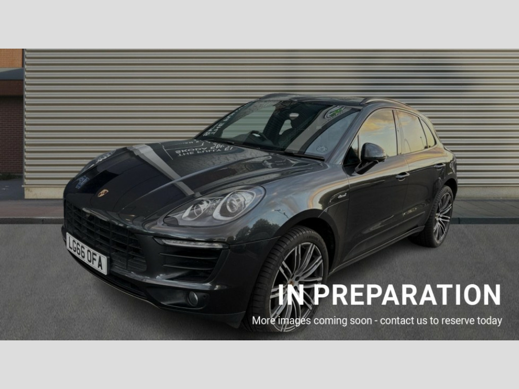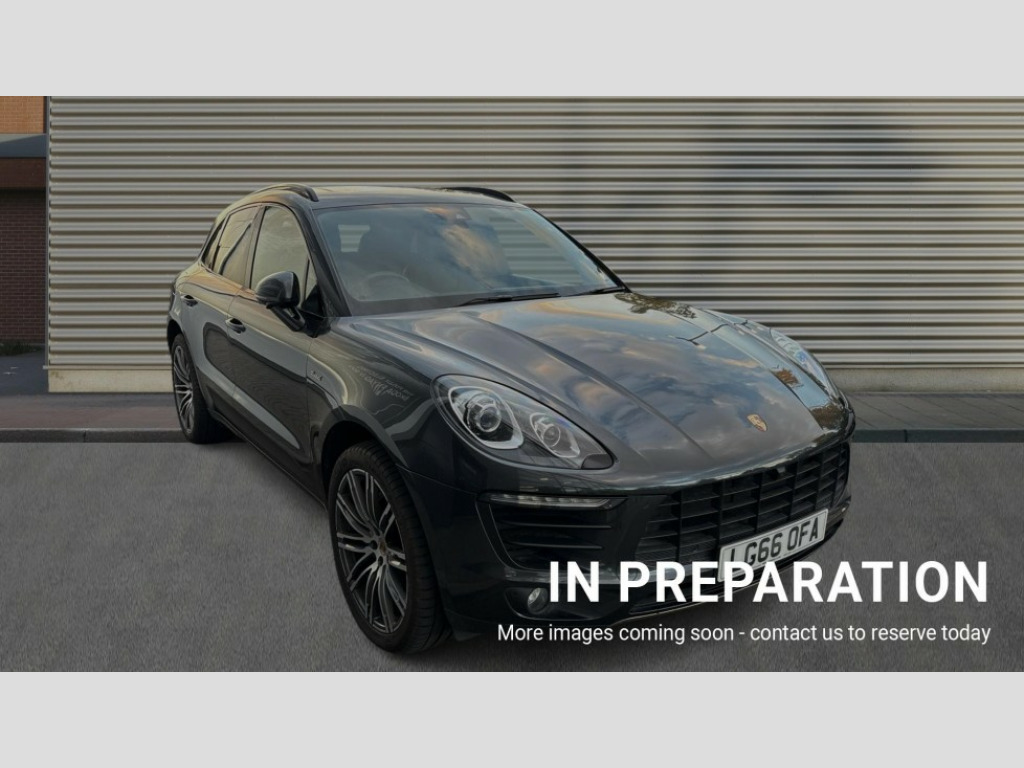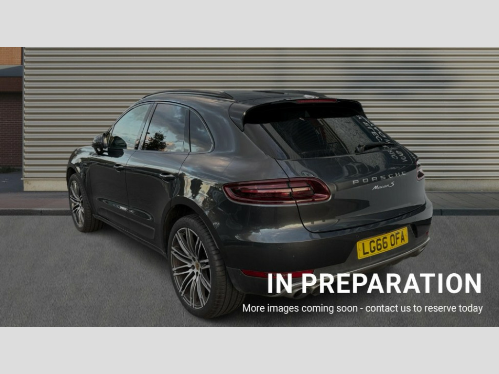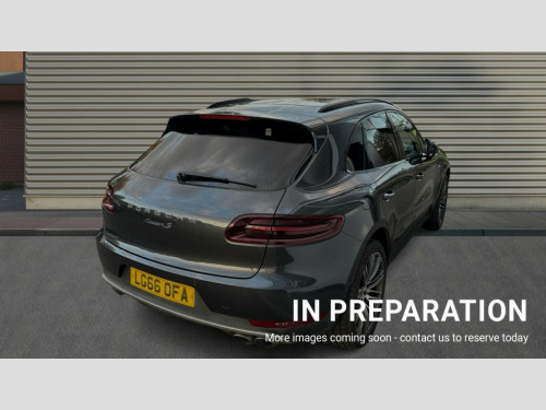 Porsche Macan S Diesel 5dr PDK 7-inch high-resolution TFT colour display, Brake pad wear sensors front and rear, External temperature gauge, Front/rear park distance control, Instrument cluster with high-resolution 4.8-inch TFT colour display, Mobile telephone preparation, Off-road button, On board computer, Porsche communications management, Power tailgate, Service interval indicator, Sports button in centre console, Diesel particulate filter, Porsche stability management (PSM), DAB Digital radio, USB interface in rear, 2 speed front wipers + intermittent wipe, Colour coded bumpers, Day time running light, Electric front and rear windows + anti trap + one touch, Electric/heated/folding door mirrors, Front fog lights, Heat insulating laminated glass, Heated rear window with auto timer, Heated washer jets, Intermittent rear wash/wipe, Painted side air intakes, Rain sensor, Tinted LED tail lights, Towbar preparation, Trailer Stability Programme, Welcome home function, 3 zone climate control, 4 12v Sockets, 4 way adjustable front head restraints, 40:20:40 split folding rear bench seat, Active carbon filter, Air quality sensor, Automatic air recirculate, Clothes hooks on front seat backrests, Front and rear cupholders x 2, Front armrest, Front reading lights, Ignition Lock illumination, Illuminated air conditioned glovebox, Illuminated centre console storage, Illumination of luggage compartment, Isofix system on outer rear seats, Pollen filter, Rear centre armrest, Rear headrests, Rear reading lights, Retractable Loadspace Cover, Retractable luggage net, Steering wheel gearshift paddles, Storage bins on all doors, Storage compartments in cargo area side walls, 3 point automatic seatbelts, 3 point rear seatbelts, ABS+ABD, ASR, Curtain airbags, Electronic parking brake, Front seat belts warning, Front seatbelt pretensioners + load limiters, Front side airbags, Full size driver and passenger airbags, Height adjustable front seatbelts, Hill hold control, Motor Slip Regulation (MSR) - Engine Drag Torque Control, Passenger airbag deactivation system, PTM (Porsche Traction Management), Silver anodised brake calipers, Two tone horn, Tyre pressure monitoring system, Alarm system, Electronic transponder immobiliser, Remote central locking, Trim strip in silver