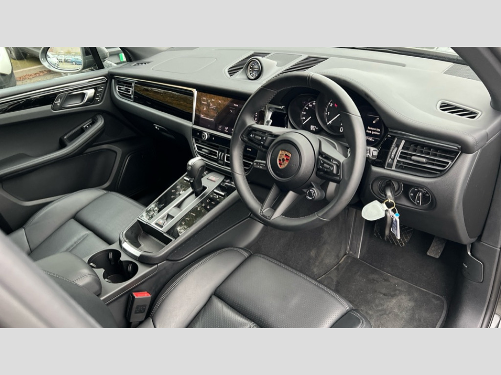 Porsche Macan T 5dr PDK Analogue clock on dashboard, Automatic start/stop system, Automatic tailgate, Cruise control + speed limiter, eCall emergency call system, Instrument cluster with high resolution 4.8-inch TFT display,gear indicator for PDK,service interval display,external temperature indicator,fuel gauge, Off-road button, On board computer, Porsche Communication Management (PCM) including online navigation module, mobile phone preparation, audio interfaces and voice control system, 7-Speed Porsche Doppelkupplung (PDK) with automatic mode and manual controls (gearshift paddles) on steering wheel, Direct fuel injection (DFI), Gasoline particulate filter, VarioCam camshaft control for inlet and exhaust valves, 2 USB sockets in rear centre console, Apple CarPlay with Siri voice recognition, Connect Plus including online navigation, LTE communication module with SIM card reader, wireless internet access, Porsche Car Connect services, DAB Digital radio, Porsche Vehicle Traking System Plus (PVTS Plus), Smartphone compartment with wireless charging, Two USB C charging and connectivity ports in the front centre console storage compartment, Active radiator grille shutters, Automatic headlight activation including welcome home lighting, Bumper system with high strength cross members and two deformation elements + One threaded fixture point for towing eye contained in onboard tool kit, Dynamic cornering lights, speed-sensitive headlight and dynamic range control, adverse weather function, four-point LED daytime running lights, Electric front and rear windows with remote closing function + anti trap + one touch, Electrically folding and heated exterior mirrors, Front light modules with LED position lights and direction indicators, Front windscreen wipers with two speeds, intermittent wipe and rain sensor, Front with integrated cooling air intakes, Fully galvanised body, Heated rear window with automatic switch off, High gloss black side window trims, High level 3rd LED brake light integrated into roof spoiler, Loading edge protection in aluminium, Rear side wing doors, Rear window wiper with intermittent function and washer jet, Roof spoiler in agate grey metallic, Towbar preparation, 3 adjustable rear headrests, 3 rear seats, 3 zone auto climate control separate temperature setting+air recirculation include quality sensor, airflow regulation+AC MAX button+humidity sensor, 40:20:40 split folding rear bench seat, Cloth hook b-pillar, Floor mats with Porsche logo, Fold up centre console armrest with fore/aft adjustment, Front and rear bottle holders in door panels, Front headrests, Front passenger seat, Glove compartment, Isofix fastening system for child seats on outer rear seats, Luggage compartment cover, Particle/pollen filter with active carbon filter, Rear armrest with 2 cupholders, Storage bin in centre console, Storage compartment in side of luggage compartment and storage compartment in spare wheel recess, Storage pocket in front and rear doors, Two integrated cup holders in front with variable diameter, Two socket 12V power outlets in front console and luggage compartment, Uncovered storage compartment in centre console, Ambient comfort lighting pack - Macan, Lower exterior trim package in black - Macan, Sport chrono package including mode switch - Macan T, 3-point automatic seatbelts with front and outer rear seats pretensioners and force limiter + manually height adjustable seatbelt + reminder warning, Auto hold function, Black painted brake calipers, Child locks on rear doors, Curtain airbags along entire roof frame and side windows from A pillar to the C pillar, Electronic parking brake, Front passenger airbag deactivation facility for installation of child seats indicator in overhead console, Front side airbags integrated into seat, Full size driver and passenger airbags, Internally vented brake discs with diameter of 350mm at front and 330mm at rear, Multi-Collision braking, Porsche hill control (PHC), PTM(Porsche Traction Management) and All-wheel drive with map-controlled multi-plate clutch, Roll over sensor for curtain airbag and seatbelt pretensioners, Side impact protection in doors, Tyre pressure monitoring system, Vehicle stability system, Porsche stability management (PSM) including ABS, ASR, ABD, MSR and trailer stability management, Vented discs brake with 4 piston aluminium monobloc fixed caliper at front, Vented discs brake with combination floating calipers at rear, Alarm system with ultrasonic interior surveillance, Dashcam prep, Engine immobiliser with key transponder, Remote control central locking, Accent trims with silver coloured finish