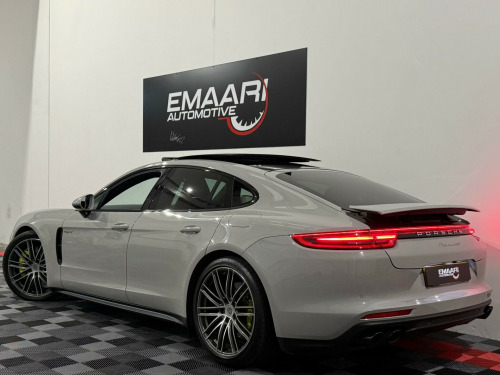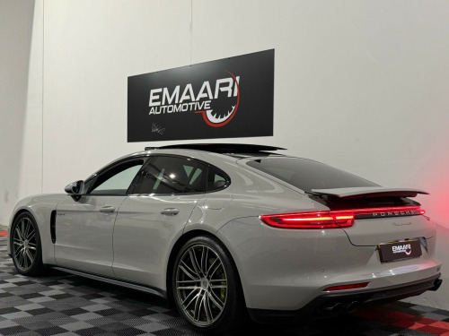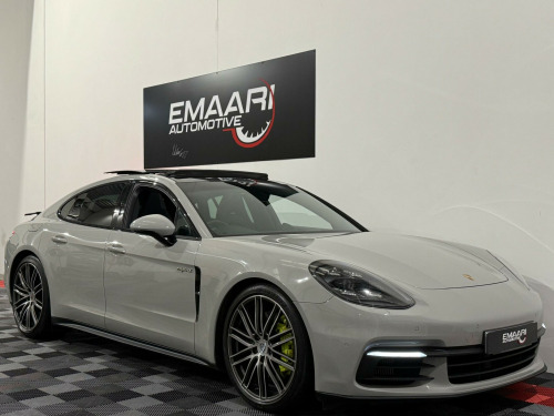 This 2018 Porsche Panamera V6 E Hybrid 4 is a remarkable example with exceptionally low mileage for its year, having covered just 36,000 miles. As a Euro 6 compliant model, it features a powerful 2.9L Petrol Plug-in Hybrid engine paired with a sophisticated Four Wheel Drive system, offering an impressive 0-62mph acceleration time of just 4.6 seconds. This Panamera 4 trim boasts a range of desirable features, including striking 21in Alloy Wheels in Platinum Silver, a sporty SportDesign Package, and a luxurious Panoramic Roof System with an opening sunroof. Inside, you'll find comfort and convenience with Four Zone Automatic Climate Control, ensuring a pleasant environment for all occupants, and 18 Way Adaptive Sports Seats in the front, complete with a memory package for personalised driving positions.The generous boot space further enhances the practicality of this already impressive vehicle, making it suitable for both daily use and longer journeys. The inclusion of features like the adaptive sports seats and the panoramic roof system clearly sets this Panamera apart, offering a superior level of comfort and a more engaging driving experience compared to many other vehicles in its class. This combination of performance, luxury, and thoughtful features makes this Porsche Panamera a truly outstanding choice. v sockets in the front centre console storage compartment, 19in alloy wheels - panamera, 3.6kw on-board charger, 8-way power seats - front with electrical adjustment of seat height - seat and backrest angle and fore-aft position, abs - anti-lock brake system, active bonnet system, adaptive air suspension including porsche active suspension management - pasm, adaptive rear spoiler - two-way in exterior colour, air outlet trim in front wings in black - high-gloss, automatic headlight activation including welcome home lighting, automatic rear hatch, automatically dimming exterior mirrors, automatically dimming rear view mirror, brake calipers in acid green, central analogue rev counter with black face - e-hybrid logo - power meter and pointer in acid green, connect plus, continuously adjustable door brake, courtesy lighting on mirror, cruise control, curtain airbags along entire roof frame and side glazing from the a-pillar to the c-pillar, dab digital radio, daytime running lights with four led spotlights in each main headlight, door sill guards in brushed aluminium with model designation at front, e-hybrid logo on front doors left and right in high-gloss silver colour with edging in acid green, electric parking brake, electric windows - front and rear, electrically adjustable - folding and heatable exterior mirrors - aspherical on drivers side, engine bonnet - rear tailgate - doors - side panels - roof and front wings in aluminium, engine immobiliser with remote central locking and alarm system with radar-based interior surveillance, flexible luggage compartment roller cover, floor mats, four doors with integrated side impact protection elements, four individual seats with continuous centre console and armrest in rear, front centre console with integrated storage compartment, front light units with position lights and direction indicators with led guide technology, front side airbags, full galvanised steel-aluminium hybrid lightweight bodyshell, full size airbags for driver and front passenger, hi-fi sound system with 10 speakers and a total output of 150 watts, hydrophobic front side windows, instrument cluster with two high-resolution displays, integrated headrests - front and rear, integrated porsche 4d chassis control, interior lighting - concept, interior package - black high-gloss finish, knee airbags for driver and front passenger, led main headlights, mounting points on rear seats for isofix child seat mounting system, multifunction steering wheel with shift paddles - steering wheel rim in smooth-finish leather, pcm - porsche communication management - include navigation, porsche logo and model designation on rear hatch in high-gloss silver - model designation with edging in acid green, ptm - porsche traction management, parkassist - front and rear with visual and audible warning, parking pre-climatisation, particle-pollen filter with active carbon filter, porsche side impact protection - posip, porsche universal charger including transport bag - 2-power cables and wall mount base, power assisted steering - electromechanical, power cable for 3-pin industrial blue outlet - 32a-230v, power cable for household outlet, power steering, rear seats with folding centre armrest and individually folding backrest 60-40, seats - heated front, side window trims in black, sport chrono package, steering wheel - manual height and fore-aft adjustment, storage compartments in interior, three-dimensional led tail lights with integral 4-point brake lights and light strip, tinted thermally insulated glass all round, two integrated cupholders in front centre armrest, two integrated cupholders in rear compartment, two tailpipes left and right in brushed stainless steel, two usb charging ports at rear, two-zone automatic climate control, tyre pressure monitoring - tpm, tyre sealing compound and electric air compressor, vehicle cable as connection between operating unit and the vehicle - length 2.5m, vehicle charging point - rear left to charge the high voltage battery, vehicle stability system porsche stability management - psm with abs, vehicle start without active key usage, windscreen washer system including rain sensor, privacy glass, panoramic roof system, sportdesign package, sports tailpipes, sports exhaust system incl sports tailpipes in black - high-gloss, 18-way adaptive sports seats - front with memory package, heated steering wheel, roof lining in alcantara, smoking package, four-zone automatic climate control, bose surround sound system, air outlet grilles - painted, exterior mirror painted - body colour, side window trims - black high gloss, sportdesign package painted in black - high-gl