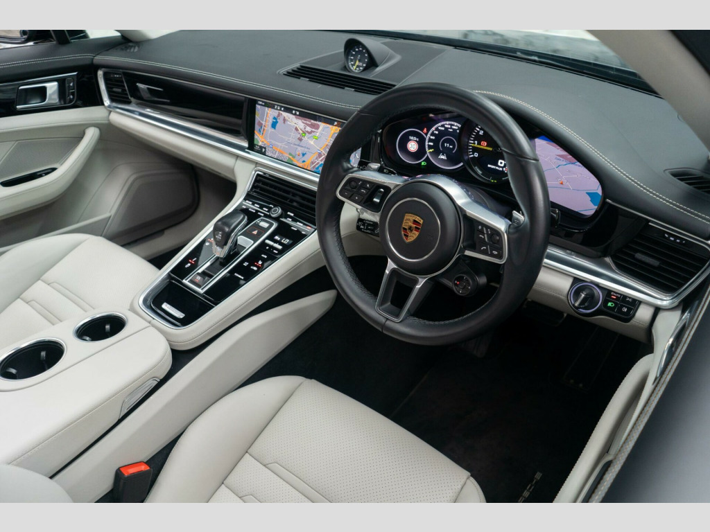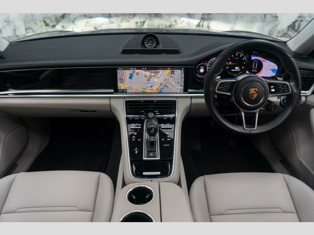 aptive cruise control, 21in alloy wheels - exclusive design, panoramic roof system, privacy glass, sports exhaust system incl sports tailpipes in black - high-gloss, sports exhaust system, 12v sockets in the front centre console storage compartment, 19in alloy wheels - panamera, 3.6kw on-board charger, 8-way power seats - front with electrical adjustment of seat height - seat and backrest angle and fore-aft position, abs - anti-lock brake system, active bonnet system, adaptive air suspension including porsche active suspension management - pasm, adaptive rear spoiler - two-way in exterior colour, air outlet trim in front wings in black - high-gloss, automatic headlight activation including welcome home lighting, automatic rear hatch, automatically dimming exterior mirrors, automatically dimming rear view mirror, brake calipers in acid green, central analogue rev counter with black face - e-hybrid logo - power meter and pointer in acid green, connect plus, continuously adjustable door brake, courtesy lighting on mirror, cruise control, curtain airbags along entire roof frame and side glazing from the a-pillar to the c-pillar, dab digital radio, daytime running lights with four led spotlights in each main headlight, door sill guards in brushed aluminium with model designation at front, e-hybrid logo on front doors left and right in high-gloss silver colour with edging in acid green, electric parking brake, electric windows - front and rear, electrically adjustable - folding and heatable exterior mirrors - aspherical on drivers side, engine bonnet - rear tailgate - doors - side panels - roof and front wings in aluminium, engine immobiliser with remote central locking and alarm system with radar-based interior surveillance, flexible luggage compartment roller cover, floor mats, four doors with integrated side impact protection elements, four individual seats with continuous centre console and armrest in rear, front centre console with integrated storage compartment, front light units with position lights and direction indicators with led guide technology, front side airbags, full galvanised steel-aluminium hybrid lightweight bodyshell, full size airbags for driver and front passenger, hi-fi sound system with 10 speakers and a total output of 150 watts, hydrophobic front side windows, instrument cluster with two high-resolution displays, integrated headrests - front and rear, integrated porsche 4d chassis control, interior lighting - concept, interior package - black high-gloss finish, knee airbags for driver and front passenger, led main headlights, mounting points on rear seats for isofix child seat mounting system, multifunction steering wheel with shift paddles - steering wheel rim in smooth-finish leather, pcm - porsche communication management - include navigation, porsche logo and model designation on rear hatch in high-gloss silver - model designation with edging in acid green, ptm - porsche traction management, parkassist - front and rear with visual and audible warning, parking pre-climatisation, particle-pollen filter with active carbon filter, porsche side impact protection - posip, porsche universal charger including transport bag - 2-power cables and wall mount base, power assisted steering - electromechanical, power cable for 3-pin industrial blue outlet - 32a-230v, power cable for household outlet, power steering, rear seats with folding centre armrest and individually folding backrest 60-40, seats - heated front, side window trims in black, sport chrono package, steering wheel - manual height and fore-aft adjustment, storage compartments in interior, three-dimensional led tail lights with integral 4-point brake lights and light strip, tinted thermally insulated glass all round, two integrated cupholders in front centre armrest, two integrated cupholders in rear compartment, two tailpipes left and right in brushed stainless steel, two usb charging ports at rear, two-zone automatic climate control, tyre pressure monitoring - tpm, tyre sealing compound and electric air compressor, vehicle cable as connection between operating unit and the vehicle - length 2.5m, vehicle charging point - rear left to charge the high voltage battery, vehicle stability system porsche stability management - psm with abs, vehicle start without active key usage, windscreen washer system including rain sensor