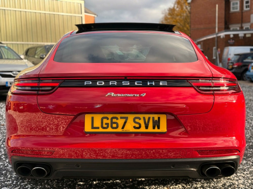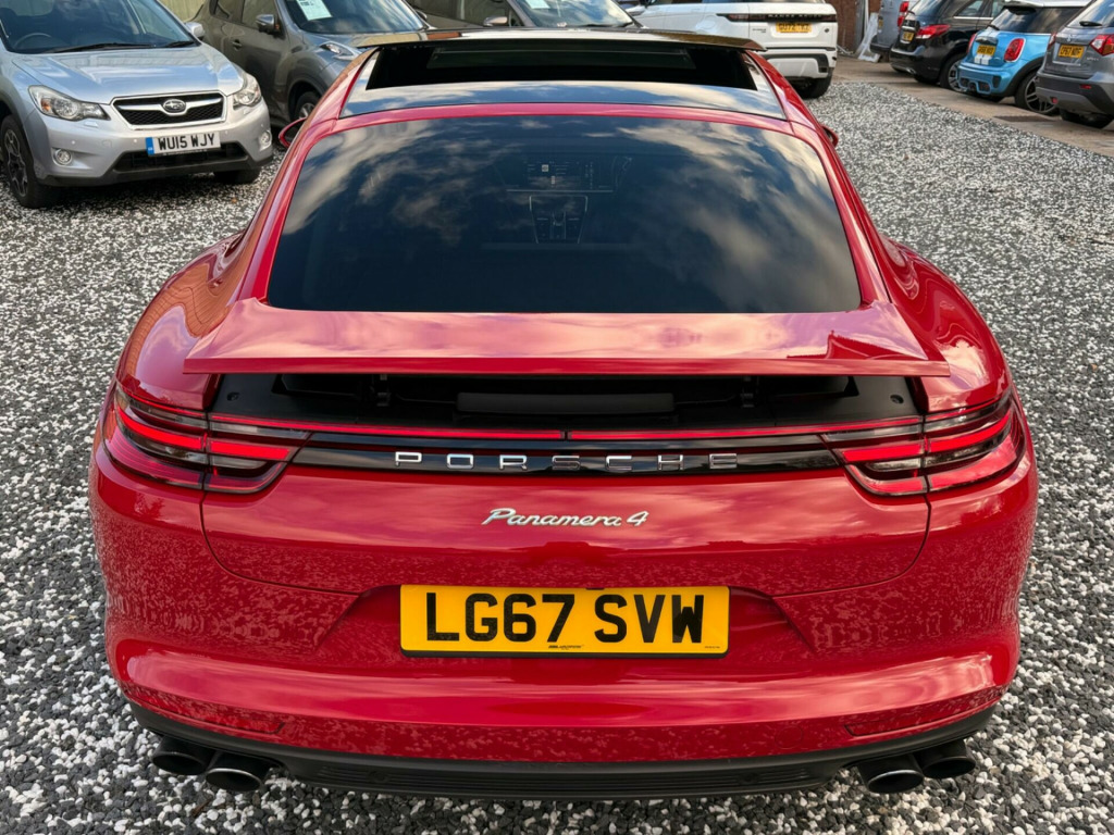 We are delighted to offer this 2017 Porsche Panamera V6 E-Hybrid 4 is presented in extremely rare STUNNING CARMINE RED with PANORAMIC GLSSS SUNROOF, Comes with a clear vehicle history check, offering peace of mind, Only driven a genuine 68,000 Miles from new, Backed with a full service history, Recent service just carried out, Mot October 2026, Road tax £195 per year, Nationwide deliver, Warranty. This four wheel drive model features a 2.9 litre petrol plug in hybrid engine and meets Euro 6 emission standards. It benefits from the desirable SportDesign Package, further enhanced by the SportDesign Package painted in high gloss black, MEGA SPECAdvanced LED daytime running lights, Cockpit dash, Apple car play, se surround sound system, lane change assist, parkassist including reversing camera, parkassist including surround view, porsche innodrive including adaptive cruise control, six-disc cd-dvd autochanger, sport chrono stopwatch instrument dial - bordeaux red, sport chrono stopwatch instrument dial in luxor beige, sport chrono stopwatch instrument dial in white, usb c interface in rear, adaptive cruise control, airbags - rear side, comfort access, isofix child seat mounting points on front passenger seat, led main headlights including porsche dynamic light system - pdls, led main headlights with matrix beam including porsche dynamic light system plus, rear wiper, tinted led taillights including light strip, vehicle key painted with key pouch in leather, air outlet grilles - painted, exterior mirror painted - body colour, privacy glass, panoramic roof system, sports exhaust system, sportdesign side skirts, sportdesign package painted in black - high-gloss, sportdesign package, side window trims - black high gloss, sports exhaust system incl sports tailpipes in black - high-gloss, sports tailpipes, thermally and noise insulated glass, wheel centres with full-colour porsche crest, cupholder covers - front, driver memory package, four-zone automatic climate control, leather interior - smooth-finish leather - black, seat belts - crayon, seat belts in bordeaux red, storage package, 7.2 kw on-board charger, pccb - porsche ceramic composite brakes, power steering plus, pccb - porsche ceramic composite brakes - calipers in acid green finish, rear axle steering including power steering plus, 12v sockets in the front centre console storage compartment, 19in alloy wheels - panamera, 3.6kw on-board charger, 8-way power seats - front with electrical adjustment of seat height - seat and backrest angle and fore-aft position, abs - anti-lock brake system, active bonnet system, adaptive air suspension including porsche active suspension management - pasm, adaptive rear spoiler - two-way in exterior colour, air outlet trim in front wings in black - high-gloss, automatic headlight activation including welcome home lighting, automatic rear hatch, automatically dimming rear view mirror, brake calipers in acid green, central analogue rev counter with black face - e-hybrid logo - power meter and pointer in acid green, connect plus, continuously adjustable door brake, courtesy lighting on mirror, cruise control, curtain airbags along entire roof frame and side glazing from the a-pillar to the c-pillar, dab digital radio, daytime running lights with four led spotlights in each main headlight, door armrest front centre console with integrated storage compartment, door sill guards in brushed aluminium with model designation at front, e-hybrid logo on front doors left and right in high-gloss silver colour with edging in acid green, electric parking brake, electric windows - front and rear, electrically adjustable - folding and heatable exterior mirrors - aspherical on drivers side, engine bonnet - rear tailgate - doors - side panels - roof and front wings in aluminium, engine immobiliser with remote central locking and alarm system with radar-based interior surveillance, flexible luggage compartment roller cover, floor mats, four doors with integrated side impact protection elements, four individual seats with continuous centre console and armrest in rear, front light units with position lights and direction indicators with led guide technology, front side airbags, full galvanised steel-aluminium hybrid lightweight bodyshell, full size airbags for driver and front passenger, hi-fi sound system with 10 speakers and a total output of 150 watts, instrument cluster with two high-resolution displays, integrated headrests - front and rear, interior lighting - concept, interior package - black high-gloss finish, knee airbags for driver and front passenger, led main headlights, mounting points on rear seats for isofix child seat mounting system, multifunction steering wheel with shift paddles - steering wheel rim in smooth-finish leather, pcm - porsche communication management - include navigation, porsche logo and model designation on rear hatch in high-gloss silver - model designation with edging in acid green, ptm - porsche traction management, parkassist - front and rear with visual and audible warning, particle-pollen filter with active carbon filter, porsche side impact protection - posip, porsche universal charger including transport bag - 2-power cables and wall mount base, power assisted steering - electromechanical, power cable for 3-pin industrial blue outlet - 32a-230v, power cable for household outlet, rear seats with folding centre armrest and individually folding backrest 60-40, seats - heated front, side window trims in black, sport chrono package, steering wheel - manual height and fore-aft adjustment, storage compartments in interior, three-dimensional led tail lights with integral 4-point brake lights and light strip, tinted thermally insulated glass all round, two integrated cupholders in front centre armrest, two integrated cupholders in rear compartment, two tailpipes left and right in brushed stainless steel, two usb charging ports at rear, two-zone automatic climate control, tyre pressure monitoring
