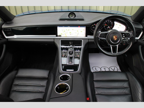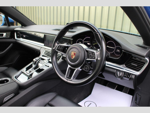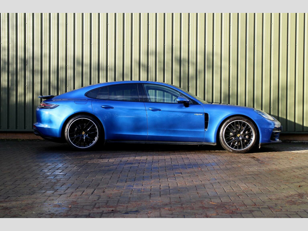 REAR AXLE STEERING -21 ALLOYS - BOSE - 2017 67 registered, this Porsche Panamera 2.9 V6 E-Hybrid 4 PDK is finished in Sapphire Blue Metallic, paired with a Black partial leather interior. With just 53,000 miles and only one previous owner from new, this example is offered in exceptional condition throughout. The vehicle benefits from an extensive factory specification in excess of £15,000. The 21 Panamera SportDesign wheels finished in high-gloss black give the car a commanding stance, while the panoramic roof system floods the cabin with natural light. Rear-axle steering, combined with Power Steering Plus, delivers remarkable agility and composure. The interior reflects Porsches hallmark blend of luxury and functionality, featuring 14-way electrically adjustable front seats with memory, front and rear seat heating and a refined Black partial leather trim. The BOSE Surround Sound System provides an immersive audio experience, complemented by the storage package, rear USB interface and ISOFIX mounting points on the front passenger seat, ensuring both practicality and comfort for all occupants. Advanced technology and driver assistance features include ParkAssist with Surround View, Lane Change Assist, LED headlights incorporating Porsche Dynamic Light System and tinted LED taillights with light strip. Additional enhancements such as sports tailpipes finished in black, privacy glass, black finished brake callipers, high-gloss black interior detailing and the deletion of the model designation contribute to the cars understated yet purposeful aesthetic. Practical touches including the rear wiper and Porsche Charging Dock for the Universal Charger further underline the thoughtful specification. Presented in a striking and highly desirable colour combination, this example is offered in a condition rarely seen, representing a truly outstanding example. ****VIEWING STRICTLY BY APPOINTMENT ONLY - FOR FURTHER INFORMATION REGARDING THIS VEHICLE AND ANY OTHER PREMIUM MARQUE IN STOCK, PLEASE CALL SALES DIRECT. VEHICLE FINANCE SPECIALISTS OFFERING COMPETITIVE PACKAGES****