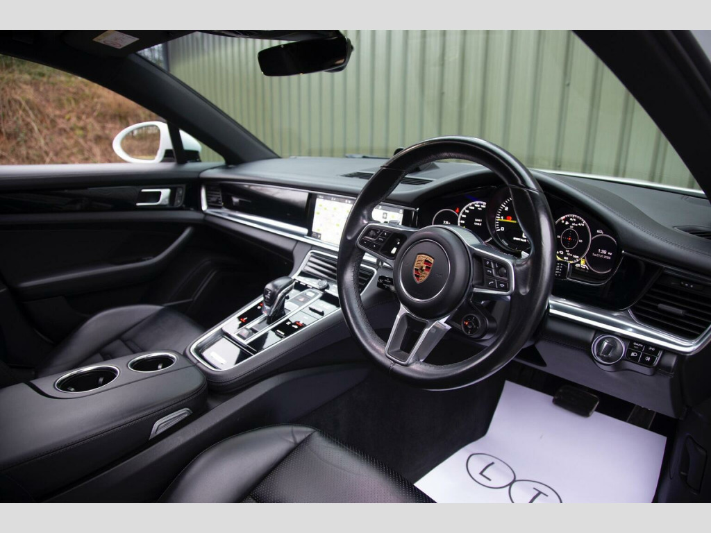 SPORT DESIGN KIT - PAN ROOF - BOSE - 2018 18 registered and presented in timeless Carrera White Metallic with a beautifully appointed Black smooth leather interior, this Porsche Panamera 2.9 V6 E-Hybrid is an exceptionally well specified and meticulously maintained example having covered just 41,000 miles from new. This particular car is elevated further by an extensive list of options totalling over £20,000, carefully selected to enhance both aesthetics and comfort. The full SportDesign package sharpens the exterior while the 21 Panamera SportDesign wheels, finished in high-gloss black, gives the car an assertive yet elegant stance. Matching SportDesign side skirts and black sports tailpipes continue the theme and the sports exhaust system adds a more engaging soundtrack. The panoramic roof system floods the cabin with natural light while the metallic paintwork beautifully accentuates the Panameras flowing lines. LED headlights incorporating Porsche Dynamic Light System (PDLS) provide superb visibility, complemented at the rear by distinctive tinted LED taillights for a contemporary, high end finish. Privacy glass further enhances both discretion and the cars sleek aesthetic. Inside, the smooth-finish leather interior delivers the unmistakable quality, elevating the sense of craftsmanship throughout. Comfort is exceptional, with heated front and rear seats ensuring year round usability for all passengers, while additional rear side airbags enhances safety. The BOSE Surround Sound System provides an immersive, concert hall quality audio experience and ParkAssist with reversing camera makes manoeuvring effortless. The result is a Panamera specified to an unusually high standard, combining visual impact, luxury and everyday practicality in equal measure.****VIEWING STRICTLY BY APPOINTMENT ONLY - FOR FURTHER INFORMATION REGARDING THIS VEHICLE AND ANY OTHER PREMIUM MARQUE IN STOCK, PLEASE CALL SALES DIRECT. VEHICLE FINANCE SPECIALISTS OFFERING COMPETITIVE PACKAGES AND PART EXCHANGE PRICES****