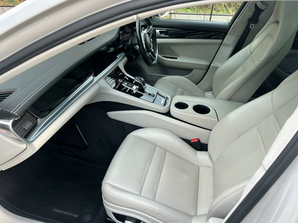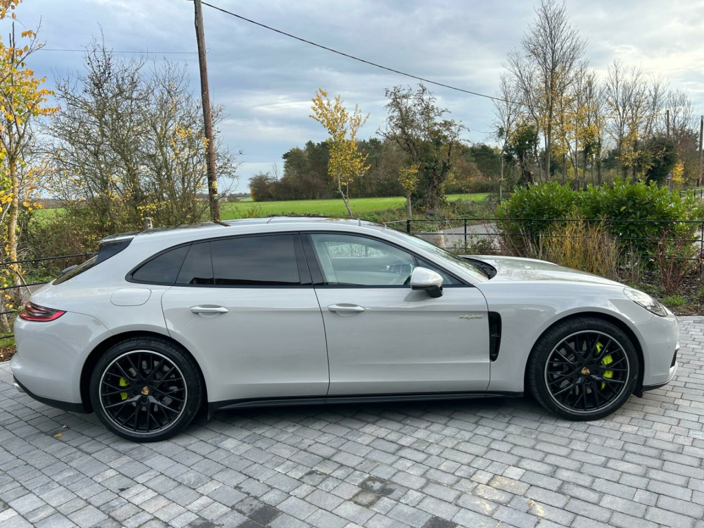 This 2019 Porsche Panamera V6 E-Hybrid 4 offers an exceptional blend of performance and efficiency. Full Porsche history As a Euro 6 compliant model, it features a sophisticated 2.9 litre petrol plug in hybrid engine paired with a smooth four wheel drive system, ensuring responsive handling in all conditions. This particular Panamera 4 trim comes equipped with a suite of advanced driver assistance systems, including Adaptive Cruise Control for effortless long distance journeys, and comprehensive ParkAssist with front and rear sensors, a reversing camera, and a 360 degree surround view to aid manoeuvrability. Further enhancing its appeal are the striking 21 inch Exclusive Design alloy wheels painted in Jet Black Metallic, alongside Lane Keep Assist with Speed Limit Indicator and Lane Change Assist for added safety and convenience.The performance of this Panamera is truly noteworthy, accelerating from 0 to 62 miles per hour in a swift 4.6 seconds. This impressive acceleration demonstrates its dynamic capabilities, setting it apart from many other vehicles in its class. The combination of its plug in hybrid technology, advanced all wheel drive, and Porsche's renowned engineering provides a driving experience that is both exhilarating and remarkably efficient, making it a compelling choice for those seeking a premium sports saloon. aptive cruise control, bose surround sound system, lane change assist, parkassist - front and rear including reversing camera and surround view, lane keep assist including speed limit indicator, 21in alloy wheels - exclusive design painted in jet black metallic, panoramic roof system, 12v sockets in the front centre console storage compartment, 19in alloy wheels - panamera, 3.6kw on-board charger, 4+1 seats - rear compartment with full-size individual seat design outside left and right and one centre seat, abs - anti-lock brake system, active bonnet system, adaptive air suspension including porsche active suspension management - pasm, adaptive roof spoiler - 2-way - in black - high gloss, air outlet trim in front wings in black - high-gloss, armrest - front centre console with integrated storage compartment, automatic headlight activation including welcome home lighting, automatic tailgate, automatically dimming exterior mirrors, automatically dimming rear view mirror, brake calipers in acid green, central analogue rev counter with black face - e-hybrid logo - power meter and pointer in acid green, comfort seats - front with 8-way electrical adjustment of seat height - seat and backrest angle and fore-aft position, connect plus, continuously adjustable door brake, courtesy lighting on mirror, cruise control, curtain airbags along entire roof frame and side glazing from the a-pillar to the c-pillar, dab digital radio, daytime running lights with four led spotlights in each main headlight, door sill guards in brushed aluminium with model designation at front, e-hybrid logo on front doors left and right in high-gloss silver colour with edging in acid green, electric parking brake, electric windows - front and rear, electrically adjustable - folding and heatable exterior mirrors - aspherical on drivers side, engine bonnet - rear tailgate - doors - side panels - roof and front wings in aluminium, engine immobiliser with remote central locking and alarm system with radar-based interior surveillance, floor mats, four doors with integrated side impact protection elements, front footwell lights - illuminated vanity mirrors for driver and passenger - luggage compartment lighting - glove compartment light, front light units with position lights and direction indicators with led guide technology, front side airbags, full galvanised steel-aluminium hybrid lightweight bodyshell, full size airbags for driver and front passenger, hi-fi sound system with 10 speakers and a total output of 150 watts, instrument cluster with two high-resolution displays, integrated 4g-lte compatible sim, integrated headrests - front and rear, integrated porsche 4d chassis control, interior lighting - concept, interior package - black high-gloss finish, keyless go, knee airbags for driver and front passenger, led main headlights, mounting points on rear seats for isofix child seat mounting system, multifunction steering wheel with shift paddles - steering wheel rim in smooth-finish leather, pcm - porsche communication management - include navigation, porsche logo and model designation on rear hatch in high-gloss silver - model designation with edging in acid green, ptm - porsche traction management, parkassist - front and rear with visual and audible warning, parking pre-climatisation, particle-pollen filter with active carbon filter, porsche side impact protection - posip, porsche universal charger including transport bag - 2-power cables and wall mount base, power cable for 3-pin industrial blue outlet - 32a-230v, power cable for household outlet, power steering, rear screen wiper with intermittent wipe and washer jet, rear seats with folding centre armrest and individually folding backrest 40-20-40, retractable luggage compartment cover, seats - heated front, side window trims in black, sport chrono package, steering wheel - manual height and fore-aft adjustment, storage compartment in rear centre console and storage compartment in rear central armrest, storage compartments in interior, three-dimensional led tail lights with integral 4-point brake lights and light strip, tinted thermally insulated glass all round, two integrated cupholders in front centre armrest, two integrated cupholders in rear compartment, two tailpipes left and right in brushed stainless steel, two usb charge ports in rear compartment, two-zone automatic climate control, tyre pressure monitoring - tpm, tyre sealing compound and electric air compressor, vehicle cable as connection between operating unit and the vehicle - length 2.5m, vehicle charging point - rear left to charge the high voltage battery, vehicle stability system