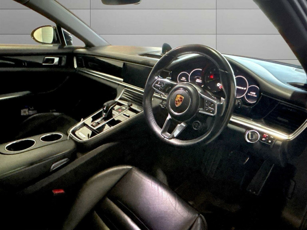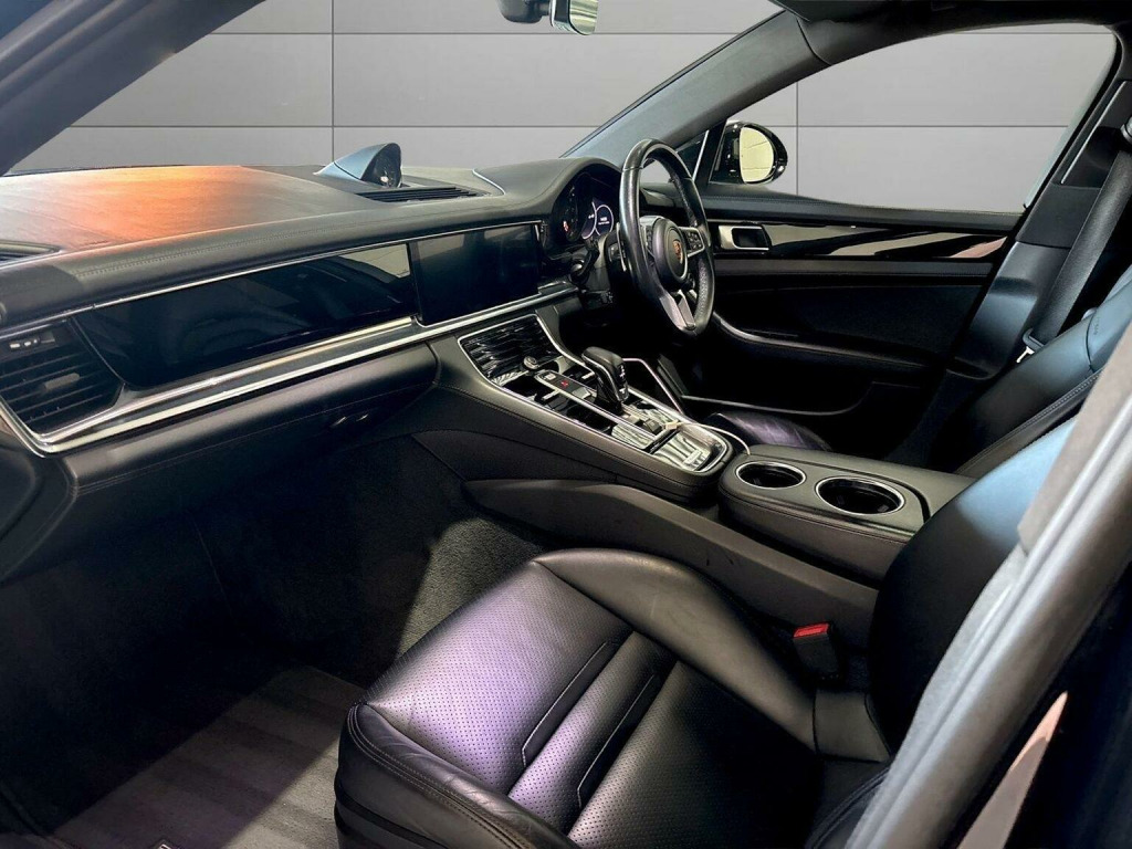 This 2018 Porsche Panamera Sport Turismo V6 E-Hybrid 4 is presented with full Porsche service history and a clear vehicle history check, offering peace of mind. This model features good specification, a 2.9 litre petrol plug in hybrid engine, paired with four wheel drive for confident handling. It meets Euro 6 emission standards. Notable features include automatic headlight activation with a welcome home function, LED main headlights, and ParkAssist for both front and rear, providing visual and audible warnings to aid parking. Inside, you will find heated front seats for comfort and a two zone automatic climate control system to ensure an ideal cabin temperature for all occupants. The Porsche Panamera V6 E-Hybrid 4 demonstrates impressive performance, accelerating from 0 to 62 miles per hour in just 4.6 seconds. This swift acceleration indicates a superior driving experience compared to many other vehicles in its class. The combination of its hybrid powertrain and Porsche engineering delivers both efficiency and dynamic capability, making it a compelling choice for those seeking a premium driving experience.