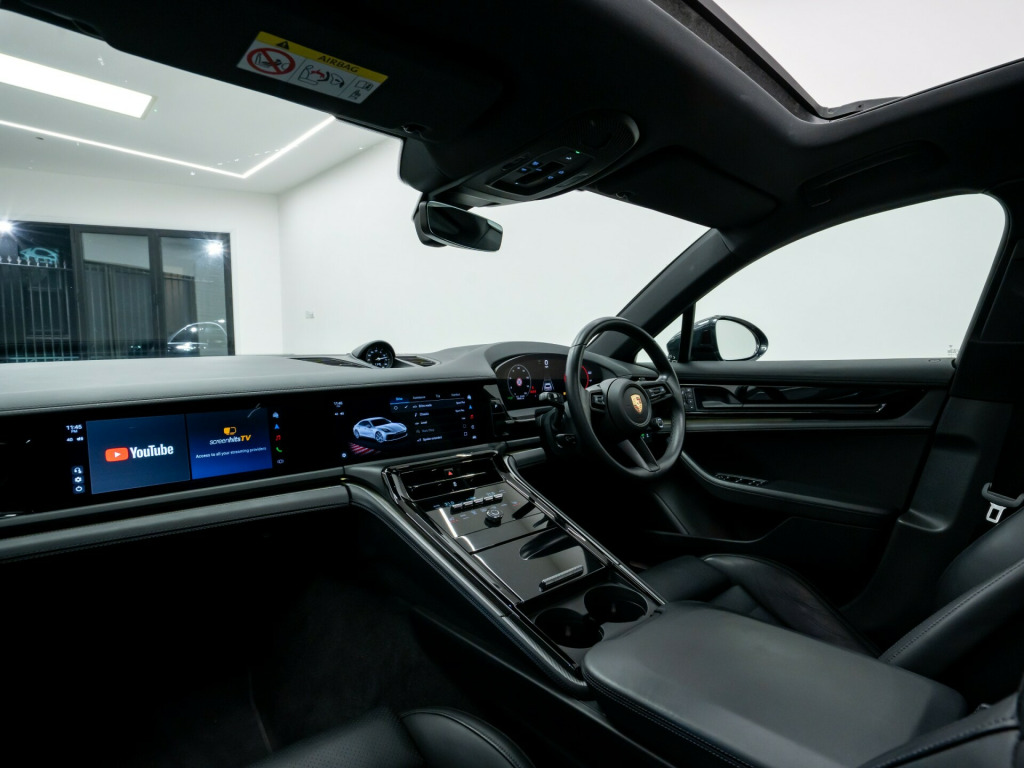New to stock is this 2024 Porsche Panamera finished in Volcano Grey Metallic and covering 18,845 miles from new.Combining four door practicality with unmistakable Porsche performance, the Panamera provides a balance of luxury, performance and the practical nature of a saloon vehicle. Powered by a responsive 2.9 litre twin turbo V6 engine delivering 325 bhp through Porsche's PDK dual clutch transmission, it offers effortless acceleration and a composed driving experience.This example presents beautifully both inside and out and was well specified from new with the following factory options:8G4 - Matrix-Beam LED Headlights8LH - Sport Chrono Plus Package0P3 - Polished Stainless Steel Sports TailpipesJH2 - Display for Front Passenger1X2 - Rear-Wheel Drive6FJ - Black Exterior Mirror HousingsQJ4 - Aluminium Interior Package7X2 - Park Distance Control (Front and Rear)GZ2 - Soft Close Doors7Y8 - Blind Spot AssistVL2 - Extended and Crash-Active Pedestrian Protection8K8 - Automatic Headlight Control with Coming Home Feature8T8 - Adaptive Cruise Control & Speed LimiterKA2 - Rear View Camera System9VL - BOSE Premium Sound Package4A3 - Heated Front Seats6I5 - Lane Keeping System4KF - Rear Privacy GlassService History: 08.05.2024 - PDI - Porsche Bournemouth The upcoming 18 month service will be completed with Porsche prior to vehicle sale. Supplied with both remote keys, original Porsche book packs, HPI Clear report, and V5 logbook showing 1 former keeper.Part Exchanges welcome and dealer finance available from 8.9% APR subject to underwriting through our panel of 14 direct to dealer lenders. in alloy wheels - panamera, aluminum roof, automatically dimming exterior mirrors, brake system - brake calipers in black, door handles painted in exterior colour, electric windows - front and rear, exhaust system with twin single tube tailpipes outside left and right in brushed stainless steel, exterior mirror lower trims painted in exterior colour including mirror base painted in black - high-gloss, fuel - charging cover, porsche logo in silver - colour - high gloss, rear diffuser in louvered design, side window trims - silver colour high gloss, sideskirts, silver coloured model designation on tailgate - high gloss, tpm valves in silver, three-dimensional taillight strip, tyre sealing compound and electric air compressor, wheel centres with monochrome porsche crest, abs - anti-lock brake system, airbags, alarm system with interior surveillance, front side airbags, isofix fastening system for child seats on outer rear seats, lane keep assist, preparation for porsche dashcam, speed limit indicator, warn and brake assist including pedestrian protection, accent package in black, automatically dimming rear view mirror, comfort seats - front with 8-way electrical, deletion of model logo embossed on headrests, door sill guards in aluminium with model designation, driver memory package, flexible luggage compartment roller cover, floor mats, individual rear seats, interior package - diamar painted in silvershade, leather door panel and central armrests, non-smoking package, pdk gear lever, particle-pollen filter with active carbon filter, pedals and footrest in black, powered tailgate, roof lining in fabric, seat heating - front, sports steering wheel, sun visors, two-zone automatic climate control, active speed limit assist, adaptive air suspension including porsche active suspension management - pasm, driving modes, parkassist - front and rear with visual and audible warning, power steering plus, reversing camera, sport button, tyre pressure monitoring - tpm, dab digital radio, smartphone compartment with wireless charging, smartphone integration - apple carplay and android auto, sound package plus, matrix led headlights