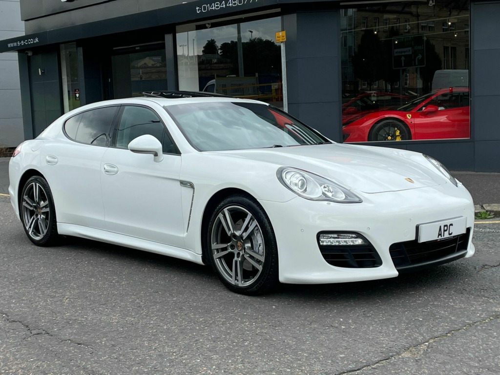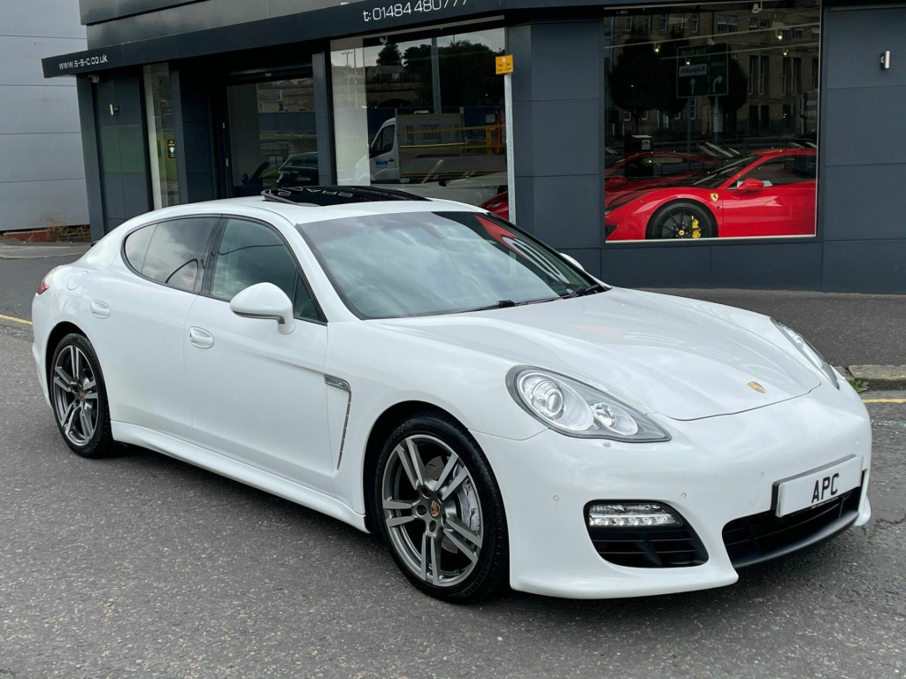 Stunning Panamera Platinum Edition. Finished In White With Black Leather Interior. Fantastic Spec Inc: Electric Glass Sunroof, BOSE Sound System, Sat/Nav With Bluetooth Phone Prep, External Media Interface, Auto Boot Lid, Auto Xenon Headlamps, Electric Heated Seats, Heated Rear Seats, Porsche Crest On Headrests, Multi Function Leather Steering Wheel, Electric Rear Spoiler, Electric Folding Mirrors, Rear Wiper, Twin Exhaust Tailpipes, Front & Rear Parking Sensors, Cruise Control, Climate Control, A/C, Computer.