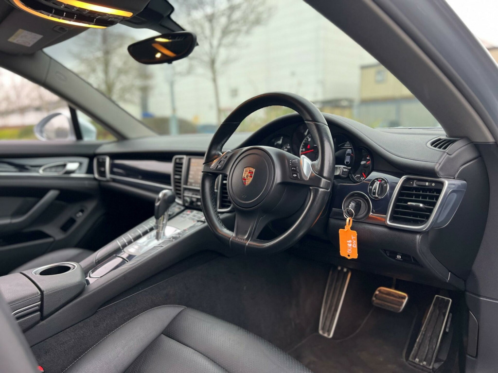 2014 Porsche Panamera 3.0D V6 TiptronicS Euro 5 (s/s) 5dr in Silver. 81000 warranted miles on the clock. Car comes with a 12 Month Warranty!!! MOT till 6th October 2026. Only 1 previous owners from new. Service History Available: 6 Services 1 Main Dealer. Car starts and drives well with no mechanical faults. Full V5 Available. Good spec including: Sat Nav, Leather Seats, Leather Steering Wheel, CD/DAB Radio/AUX/USB, Bluetooth, AC/Climate Control, Electric Windows, Electric Mirrors, Alloy Wheels, Cruise Control, Parking Sensors, Privacy Glass, Central Locking and many more. Nationwide Delivery Available. P/X Welcome. HPI Clear. 2 Keys. Any questions don't hesitate to contact us on 07443456706. Whatsapp available as well in alloy wheels - panamera, 2 single-tube tailpipes - left-right side outboard - stainless steel - brushed, 235 watts total output, 2x front 12v sockets, 2x rear 12v sockets, 7in tft touchscreen, abd - automatic brake differential, abs - anti-lock brake system, active hood system, adaptive brake lights, adaptive rear spoiler 2-way, airbag - curtain, airbag - driver, airbag - head, airbag - passenger, airbag - passenger deactivation switch, alarm system, armrest - front centre console with integrated storage compartment, auto-deployed rear spoiler, bi-xenon headlights, brake assistant, brake calipers - black, brake pad wear monitoring on each brake caliper, cdr audio system, central locking with remote control, coasting function, cruise control, cupholders x2, daytime running lights - led, diffuser in lower rear apron - smooth - black grained, digital radio - dab - dab+dmb, door mirrors - electrically adjustable and heated with power fold, door sill guards - brushed aluminium, driving light assistant, dynamic range adjustment, edtc - engine drag torque control, electric parking brake, electric windows - front lift with one touch operation and electrically operated rear side windows, engine immobiliser, external amplifier, fixed luggage compartment cover, floor mats, folding centre armrest - rear, front fog lights - led, glovebox, halogen auxiliary main-beam, headlight cleaning system, headlights - automatic dynamic headlight levelling, isofix anchors for child seat attachment on rear seats, instrument cluster with high-resolution 4.8in tft colour display, integrated antenna system for audio-navigation-telephone and tv, integrated cluster of five round instruments, integrated headrests - front and rear, interior indicator - gear recommendation, interior lighting packaging, interior trim - black high-gloss, knee airbags for driver and front passenger, led reading lights, pcm - porsche communication management - multimedia system, porsche logotype and model designation on rear lid in chrome look, psm - porsche stability management, park assist - front and rear, park assist - rear, particle-pollen filter with activated charcoal canister, porsche side impact protection - posip, power assisted steering with variable steering ratio, powerlift tailgate, radio - twin rds tuner and single cd-dvd drive, rain sensor, rear window heating with auto-off function, retractable luggage compartment roller cover, satellite navigation module, seats - comfort with electric height fore and aft adjustment, seats - heated front, side airbags at front - integrated in the seat, side window surrounds in matt black, speakers x11, split-folding rear seats - 60-40, sport button on the centre console, sports steering wheel with manual fore-aft and height adjustment, standstill management, steering wheel - gearshift paddles, steering wheel - multi-function, steering wheel - smooth leather, storage - pockets on front seat backrest, storage nets in lateral luggage compartment covers and passenger foot well area, tailights - led, tinted heat-insulating glass all-round with grey top tint on windshield, trailer stabilisation function, trim strips - silver coloured, two-zone automatic climate control, tyre sealing compound and electric air compressor, water-repellent coating on front windows, welcome home lighting