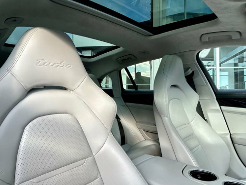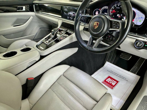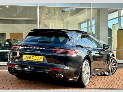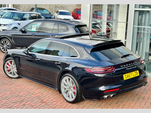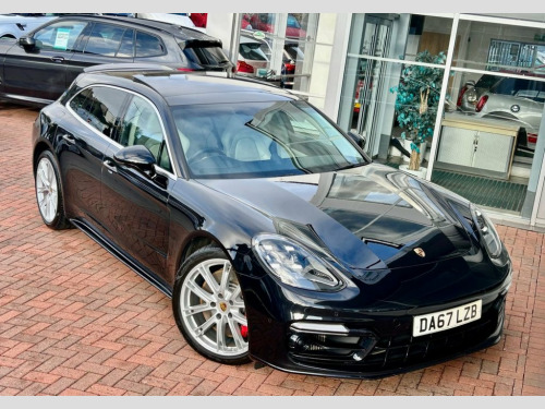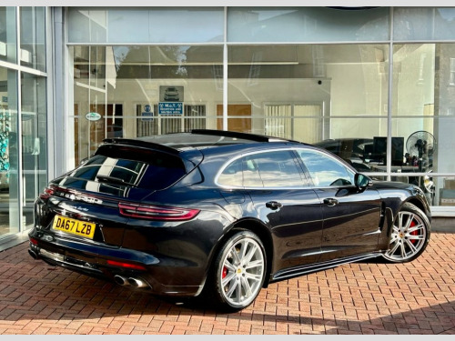 A Stunning Machine! Cost New in Excess of £117,000.00 and comes with a Phenomenal Specification Including More than £17000.00 of Factory Options. Our Sport Turismo is Presented in Jet Black Metallic with Two Tone Ebony Black and Crayon Grey Leather Upholstery and 21 Inch Exclusive Design Alloy Wheels. Factory Options include a Powered Panoramic Roof, a SportDesign Package in Black, Sport Chrono Package, a Switchable Sports Exhaust, Park Assist with Surround View, 18 Way Adaptive Sports Seats with Memory Pack, an Alcantara Headlining, Soft Close Doors, Ambient Lighting, a Heated Steering wheel, 4 Zone Climate control, Adaptive Cruise control, a Power Operated Tailgate and Factory Privacy Glass. In addition you will find Front and Rear Seat Heating, Electric, Heated and Power-folding mirrors, Air Suspension with PASM, Bluetooth and Media Connectivity and PCM with Navigation. Supplied with 2 Keys and Porsche Centre service confirmation at 18267m, 24141m, 46540m and 67147 miles 18-Way Adaptive Sports Seats - Front wit, 21in Alloy Wheels - Panamera Exclusive D, Adaptive Cruise Control, Ambient Lighting including Interior Ligh, Cupholder Covers - Front, Four-Zone Automatic Climate Control, Heated Steering Wheel, Interior Package - Black High-Gloss Fini, Jet Black, Lane Keep Assist including Speed Limit I, Panoramic Roof System, ParkAssist Including Surround View, Power Steering Plus, Preparation for Porsche Rear Seat Entert, Privacy Glass, Soft Close Doors, Sport Chrono Package, SportDesign Package Painted in Black - H, SportDesign Side Skirts, Sports Exhaust System, Two-Tone Leather Interior - Smooth-Finis, USB C Interface in Rear, Wheel Centres with Full-Colour Por