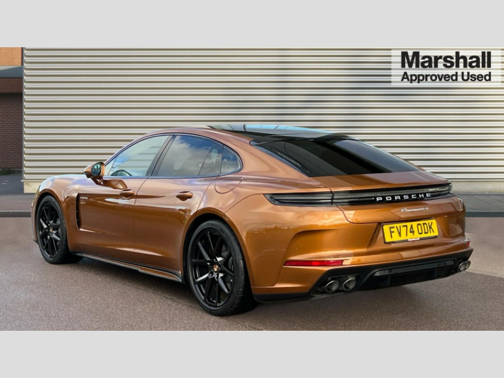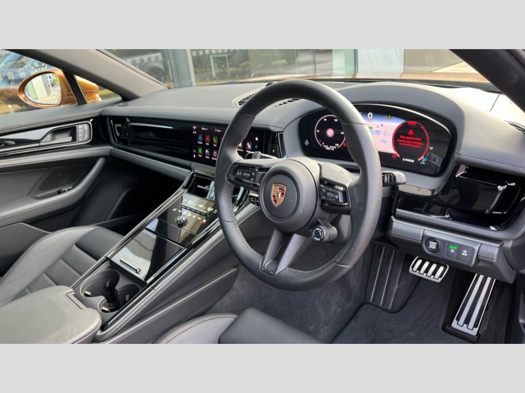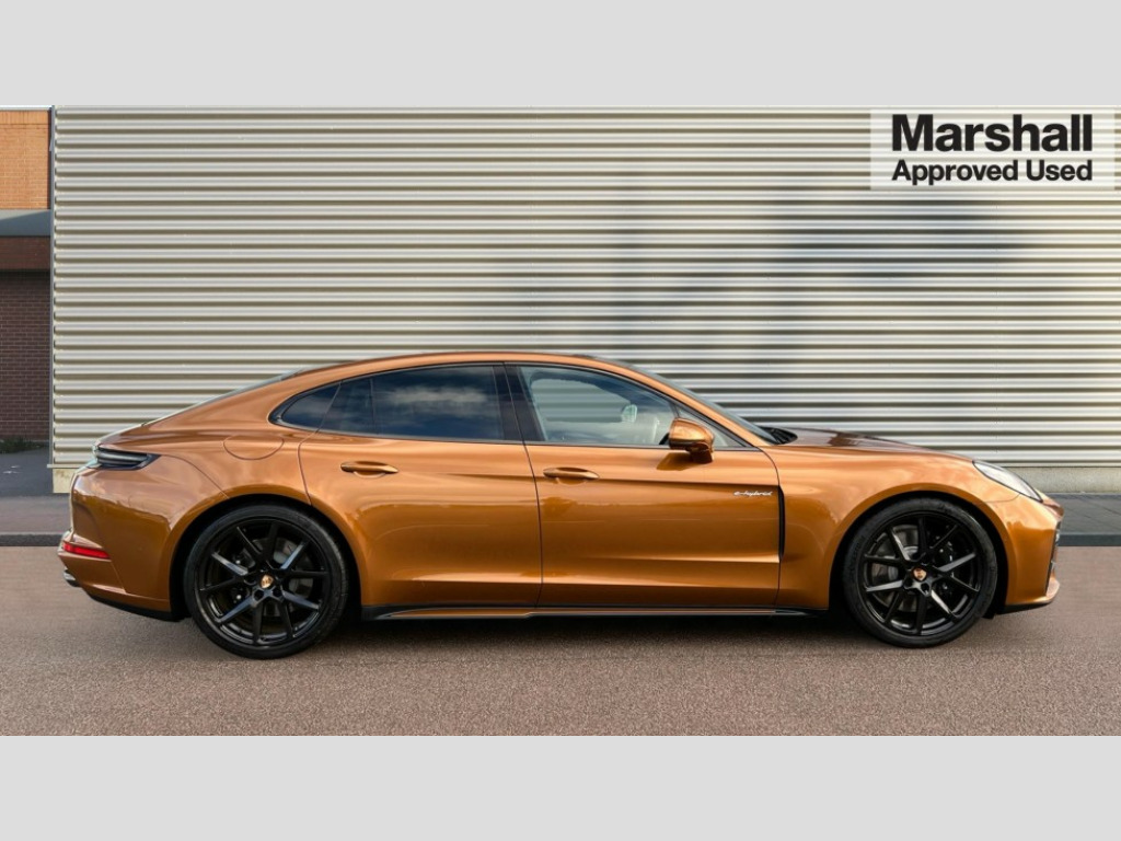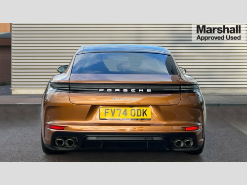 Porsche Panamera 2.9 V6 4 E-Hybrid 5dr PDK Active speed limit assist, Auto start/stop function and coasting, Driver awarness detection, Emergency call service, Lane keep assist, Power steering plus, Powered tailgate, Service interval indicator, Smartphone integration with Apple CarPlay and Android auto, Speed limit indicator, Traffic sign recognition, Trip computer, Warn and brake assist including pedestrian protection, 11 kW on board AC charger, 4D Integrated chassis control, 8 Speed Porsche Doppelkupplung (PDK), 80 litre fuel tank, Adaptive air suspension including Porsche Active Suspension Management (PASM), Aluminium double wishbone front axle, Aluminium multi link rear axle, Mode 3 charging cable, Starter battery, DAB Digital radio, Smartphone compartment with wireless charging upto 15W, 2 speed front wipers + intermittent wipe, Auto dimming exterior mirrors, Auto dimming rear view mirror, Automatic headlight activation including welcome home lighting, Door handles painted in exterior colour, Electric front and rear windows + anti trap + one touch, Electrically adjustable, folding and heatable exterior mirrors with aspherical on driver's side, Fuel/charging cover, Heated rear window with auto timer, LED 3rd brake light, LED daytime running lights, Rear diffusor in louvered design, Rear side wing doors, Rear wiper, Remote window closing, Windscreen washer system including rain sensor, 2 individual seats in 2nd row, Deletion of turbo S logo embossed on headrests, Front seat heating, Integrated front and rear headrests, Isofix child seat mounting points on outer rear seats, Leather door panel and central armrests, Particle/pollen filter with active carbon filter, PDK gear lever, Pedals and footrest in black, Single front passenger seat with armrest, Sun visors, Two integrated cup holders in the front centre console, 2 x 3-point rear seatbelts, 2x3 point front seatbelts with pre-tensioners, Active bonnet, Anti-lock braking system (ABS), Brake system, Curtain airbags along entire roof frame and side windows from the A pillar to the C pillar left and right, Driver and front passenger knee airbag, Electronic parking brake, Front side airbags, Full size driver and front passenger airbags, Manual child lock in rear doors, Tyre pressure monitoring system, Vehicle stability system and porsche stability management (PSM), Alcohol interlock preparation, Anti-theft wheel bolts, Comfort access system, Dashcam prep, Engine immobiliser with remote central locking and alarm system with radar based interior surveillance, TPM valve in silver, Tyre sealing compound and electric air compressor
