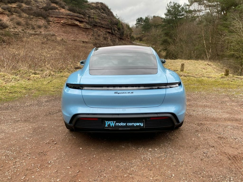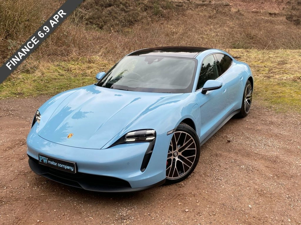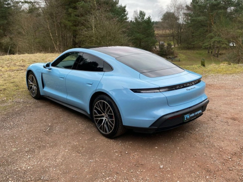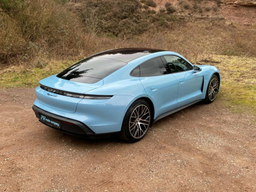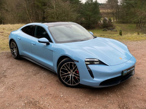 VAT qualifying 2021 71 REG 2 KEYS Porsche Taycan 4S Performance 79.2kWh Auto 4WD 4dr (11kW Charger FROZEN BLUE MET With Full Black Leather HD COCKPIT STYLE DASH DISPLAY AND WIDE HD SCREENS,20in Taycan Turbo Aero ALLOYS , Ambient Lighting, Metallic Paint, Model Designation Painted-matt Black, Panoramic Roof System - Fixed Glass, Privacy Glass, Prsch Logo Led Door Courtesy Lights, Side Window Trim In Black-high Gloss. Representative APR 7.9% LOW RATE FINANCE AVAILABLE CALL FOR DETAILS. A STUNNING CAR WITH FULL SERVICE HISTORY FROM NEW, GREAT SPEC AND IN AMAZING CONDITION. ALL CARS ARE TURNED OUT TO THE HIGHEST INDUSTRY LEADING STANDARDS, EACH HAVING GONE THROUGH A COMPREHENSIVE MULTI POINT INSPECTION. IF YOU REQUIRE ANY FURTHER INFORMATION ON THIS VEHICLE PLEASE CONTACT ONE OF OUR SALES TEAM DIRECTLY ON CALL WAYNE OR SCOT 01782 342585 OR 07469714011.px welcome. ULEZ-compliant.As a VAT Qualifying vehicle it has the additional benefit to VAT Registered individuals or companies buying the car solely for business use, as they could reclaim the 20% VAT from the purchase price.NO FINANCE COMMISSION ON ANY OF OUR CARS Leather free - Black, PORSCHE logo LED door courtesy lights, 20" Taycan turbo aero alloy wheels, Exterior mirrors painted in exterior col, Fixed panoramic roof, Privacy glass, High gloss black side window trims, Porsche metallic - Frozen blue, 16.8 inch curved touchscreen display, Brake pad wear indicator, Centre console with direct touch control, Driver personalisation for ergonomic, co, E-call, Lane keeping assist including traffic si, Porsche Communication Management (PCM) i, Porsche connect with apple carplay, Porsche recuperation management, Power boot lid, Range mode for activation efficiency ori, Tailgate button, Wireless phone charging in centre consol, Engine immobiliser with