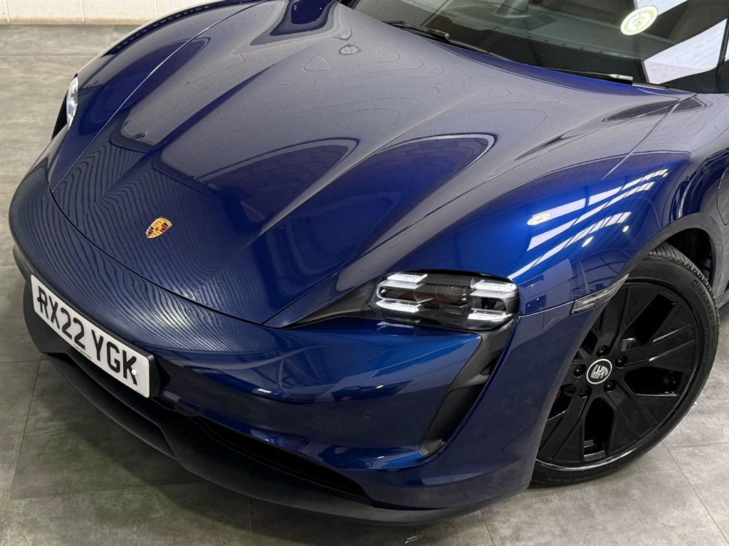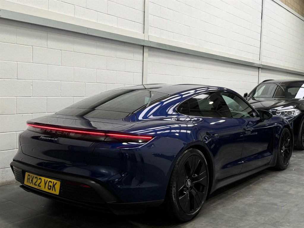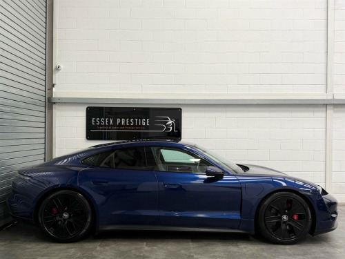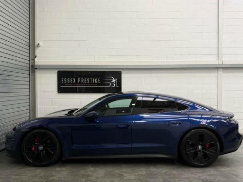 Full Service History, Sat Nav, Black Pack, Bose Sound System, Sports Chrono, 11kW AC On-Board Charger,12v Electrical Socket in Rear Luggage Compartment,12v Electrical Socket in the Centre Console Storage Compartment,16.8in Curved Display,19in Alloy Wheels - Taycan S Aero,2 USB-C Charge Ports in the Rear,2 USB-C Connectivity and Charge Ports in the Centre Console Storage Compartment,3-Point Automatic Seat Belts with Pre-Tensioners - Front and Outer Rear Seats and Front Force Limiter,4-Point LED Daytime Running Lights,50kW DC On-Board Charger for use of Public Charging Stations with a voltage of 400V,ABS - Anti-lock Brake System,Accent Package in Black,Active Bonnet System,Active Carbon Fine Dust Filter,Adaptive Air Suspension including Porsche Active Suspension Management - PASM,Advanced 2-Zone Climate Control,Aluminium Double-Wishbone Front Axle,Aluminium Multi-Link Rear Axle,Auto-Deploying Door Handles,Automatic Headlight Activation including Welcome Home Lighting,Automatic Hold Function,B-Pillar Clothes Hook on Driver and Passengers Side,Brake Calipers - Red,Brake Pad Wear Indicator,Bumpers Comprising High-Strength Cross Members and Two Deformation Elements Each with One Threaded Fixture Point for Towing Eye Contained in On-Board Tool Kit,Cable between Charger and Vehicle - 7.5m,Centre Console with Direct Touch Control,Charge Port on Driver and Front Passenger Side,Collision and Brake Assist,Comfort Seats - Front with 8-way Electrical Adjustment of Seat Height - Seat and Backrest Angle and Fore-aft Position,Cruise Control including Adaptive Speed Limiter,Curtain Airbags Along Entire Roof Frame and Side Windows from the A-Pillar to the C-Pillar,DC Charging at Public Charging Stations with Voltage of 800V,Digital Radio,Door Sill Guards in Brushed Aluminium,Driver Personalisation,Electric Parking Brake,Electric Windows - Front and Rear,Electrically Adjustable and Heated Exterior Mirrors - Aspherical on Drivers Side,Engine Bonnet - Rear Tailgate - Doors - Side Panels - Roof and Front Wings in Aluminium,Engine Immobiliser with Remote Central Locking and Alarm System with Radar-Based Interior Surveillance,Exterior Mirror Lower Trims Including Mirror Base in Black,Floor Mats,Four-Piston Aluminium Monobloc Fixed Brake Calipers at Rear,Front Centre Console Armrest with Integrated Storage Compartment,Front Side Airbags,Full Size Airbags for Driver and Front Passenger,Full Surface Aerodynamic Underbody Panelling,Fully Galvanised Steel-Aluminium Hybrid Lightweight Bodyshell,Heat Pump,Heated Rear Window with Auto-Off Function,ISOFIX Mounting Points for Child Seats on Outer Rear Seats,Illuminated Vanity Mirrors for Driver and Front Passenger,Integrated Front Headrests,Integrated Porsche 4D Chassis Control,Keyless Drive,Knee Airbags for Driver and Front Passenger,LED Headlights including Porsche Dynamic Light System Plus - PDLS Plus,LED Interior Lighting Concept,Lane Keeping Assist including Traffic Sign Recognition,Light Strip,Lower Valance in Black,Luggage Compartments at Front and Rear,Manual Adjustment of Seat Belt Height for Driver and Front Passenger Seats,Mobile Charger Plus with 4.5m Vehicle Side Cable,Model Designation on Tailgate in Silver Colour,Multi-Collision Brake,Multi-Function Sports Steering Wheel in Leather,ParkAssist - Front and Rear with Visual and Audible Warning,Parking Pre-Climatisation,Performance Battery Plus,Porsche Active Aerodynamics with Active Air Intake Flaps and Adaptive Rear Spoiler,Porsche Communication Management PCM Includes Navigation Module Mobile Phone Preparation Audio Interface and Voice Control System,Porsche Connect with Apple Carplay,Porsche Intelligent Range Manager,Porsche Logo in Glass Look Integrated into Rear Light Strip,Porsche Recuperation Management - PRM,Porsche Stability Management - PSM Including ABS with Extended Brake Functions,Porsche Vehicle Tracking System Plus,Power Boot Lid,Power Steering,Range Mode for the Activation of Efficiency-Orientated Settings,Rear Diffuser in Louvered Design in Black,Rear Seats with 2 Seats in Single-Seat Look - Fold out Armrest and Split Folding Backrests 60-40,Rollover Detection for Activation of Curtain Airbags and Seat Belt Pretensioners,Roof Lining in Fabric,Roof in Aluminium Contoured Design with Dynamic Recess Profile,Seat Belt Warning System for Driver - Front Passenger and Rear Seat System,Seats - Heated Front,Side Impact Protection Integrated into Doors,Side Window Trims - Silver Colour - High-Gloss,Sideskirts in Black,Six-Piston Aluminium Monobloc Fixed Brake Calipers at Front,Sound Package Plus,Sport Mode for the Activation of Dynamic Performance Settings Including Launch Control,Storage Compartment,Sun Visors for Driver and Front Passenger,Supply Cable for Domestic Electrical Socket,Supply Cable for Industrial Electrical Outlet - 230V-32A,Taycan Badge on the Centre Console,Thermally Insulated Glass All Round,Third Brake Light,Two Integrated Cupholders Front and Rear,Tyre Pressure Monitoring - TPM,Upper Valance with Vertical Air Intakes - Air Curtain,Wheel Centres with Monochrome Porsche Crest,Windscreen Wiper System Including Rain Sensor and Washer Jets,Wireless Phone Charging in Centre Console Storage Compartment,BOSE Surround Sound System with 14 Speakers Including Subwoofer and a Total Output of 710 Watts,ParkAssist Including Reversing Camera,Privacy Glass,Wheels Painted in High Gloss Black,Sport Chrono Package with Porsche Design Clock