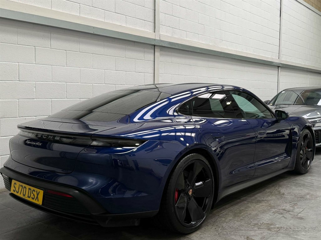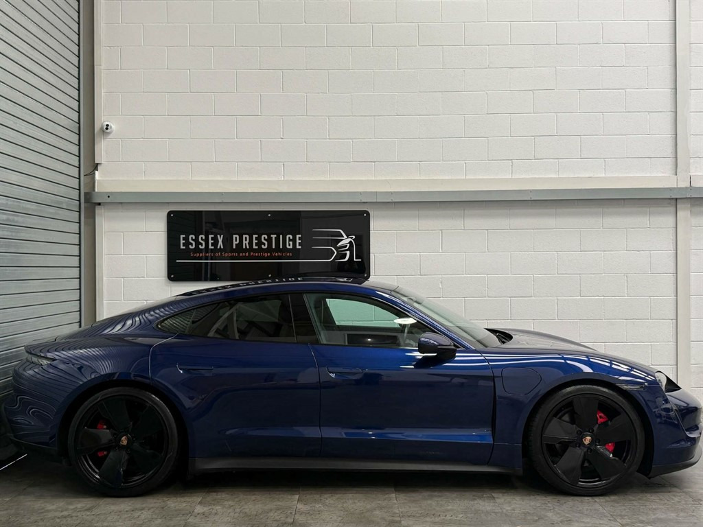 Full Service History, Sat Nav, Rear View Camera, Front & Rear Sensors, Bose Sound System, Black Pack, Apple Car Play, Heated Front Seats, 11kW AC On-Board Charger,12v Electrical Socket in Rear Luggage Compartment,12v Electrical Socket in the Centre Console Storage Compartment,16.8in Curved Display,2 USB-C Charge Ports in the Rear,2 USB-C Connectivity and Charge Ports in the Centre Console Storage Compartment,3-Point Automatic Seat Belts with Pre-Tensioners - Front and Outer Rear Seats and Front Force Limiter,4-Point LED Daytime Running Lights,50kW DC On-Board Charger for use of Public Charging Stations with a voltage of 400V,ABS - Anti-lock Brake System,Accent Package in Black,Active Bonnet System,Active Carbon Fine Dust Filter,Adaptive Air Suspension including Porsche Active Suspension Management - PASM,Advanced 2-Zone Climate Control,Aluminium Double-Wishbone Front Axle,Aluminium Multi-Link Rear Axle,Auto-Deploying Door Handles,Automatic Headlight Activation including Welcome Home Lighting,Automatic Hold Function,Automatic Tailgate,B-Pillar Clothes Hook on Driver and Passengers Side,Brake Calipers with Red Finish,Brake Pad Wear Indicator,Bumpers Comprising High-Strength Cross Members and Two Deformation Elements Each with One Threaded Fixture Point for Towing Eye Contained in On-Board Tool Kit,Cable between Charger and Vehicle - 7.5m,Centre Console with Direct Touch Control,Charge Port on Driver and Front Passenger Side,Collision and Brake Assist,Comfort Seats - Front with 8-way Electrical Adjustment of Seat Height - Seat and Backrest Angle and Fore-aft Position,Cruise Control including Adaptive Speed Limiter,Curtain Airbags Along Entire Roof Frame and Side Windows from the A-Pillar to the C-Pillar,DC Charging at Public Charging Stations with Voltage of 800V,Digital Radio,Door Sill Guards in Brushed Aluminium,Driver Personalisation,Electric Parking Brake,Electric Windows - Front and Rear,Electrically Adjustable and Heated Exterior Mirrors - Aspherical on Drivers Side,Engine Bonnet - Rear Tailgate - Doors - Side Panels - Roof and Front Wings in Aluminium,Engine Immobiliser with Remote Central Locking and Alarm System with Radar-Based Interior Surveillance,Exterior Mirror Lower Trims Including Mirror Base in Black,Floor Mats,Four-Piston Aluminium Monobloc Fixed Brake Calipers at Rear,Front Centre Console Armrest with Integrated Storage Compartment,Front Side Airbags,Full Size Airbags for Driver and Front Passenger,Full Surface Aerodynamic Underbody Panelling,Fully Galvanised Steel-Aluminium Hybrid Lightweight Bodyshell,Heat Pump,Heated Rear Window with Auto-Off Function,ISOFIX Mounting Points for Child Seats on Outer Rear Seats,Illuminated Vanity Mirrors for Driver and Front Passenger,Integrated Front Headrests,Integrated Porsche 4D Chassis Control,Keyless Drive,Knee Airbags for Driver and Front Passenger,LED Headlights including Porsche Dynamic Light System Plus - PDLS Plus,LED Interior Lighting Concept,Lane Keeping Assist including Traffic Sign Recognition,Light Strip,Lower Valance in Black,Luggage Compartments at Front and Rear,Manual Adjustment of Seat Belt Height for Driver and Front Passenger Seats,Model Designation on Tailgate in Silver Colour,Multi-Collision Brake,Multi-Function Sports Steering Wheel in Leather,PTM - Porsche Traction Management,ParkAssist - Front and Rear with Visual and Audible Warning,Parking Pre-Climatisation,Performance Battery Plus,Porsche Active Aerodynamics with Active Air Intake Flaps and Adaptive Rear Spoiler,Porsche Communication Management PCM Includes Navigation Module Mobile Phone Preparation Audio Interface and Voice Control System,Porsche Connect with Apple Carplay,Porsche Intelligent Range Manager,Porsche Logo in Glass Look Integrated into Rear Light Strip,Porsche Stability Management - PSM Including ABS with Extended Brake Functions,Porsche Vehicle Tracking System Plus,Power Steering,Range Mode for the Activation of Efficiency-Orientated Settings,Rear Diffuser in Louvered Design in Black,Rear Seats with 2 Seats in Single-Seat Look - Fold out Armrest and Split Folding Backrests 60-40,Rollover Detection for Activation of Curtain Airbags and Seat Belt Pretensioners,Roof Lining in Fabric,Roof in Aluminium Contoured Design with Dynamic Recess Profile,Seat Belt Warning System for Driver - Front Passenger and Rear Seat System,Seats - Heated Front,Side Impact Protection Integrated into Doors,Side Window Trims - Silver Colour - High-Gloss,Sideskirts in Black,Six-Piston Aluminium Monobloc Fixed Brake Calipers at Front,Sound Package Plus,Sport Mode for the Activation of Dynamic Performance Settings Including Launch Control,Storage Compartment,Sun Visors for Driver and Front Passenger,Supply Cable for Domestic Electrical Socket,Supply Cable for Industrial Electrical Outlet - 230V-32A,Tailgate Button,Taycan Badge on the Centre Console,Thermally Insulated Glass All Round,Third Brake Light,Two Integrated Cupholders Front and Rear,Tyre Pressure Monitoring - TPM,Upper Valance with Vertical Air Intakes - Air Curtain,Wheel Centres with Monochrome Porsche Crest,Windscreen Wiper System Including Rain Sensor and Washer Jets,Black Pack,BOSE Surround Sound System with 14 Speakers Including Subwoofer and a Total Output of 710 Watts,21in Alloy Wheels - Taycan Exclusive Design,Wheels Painted in High Gloss Black,Partial Leather - Black
