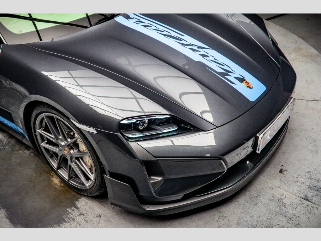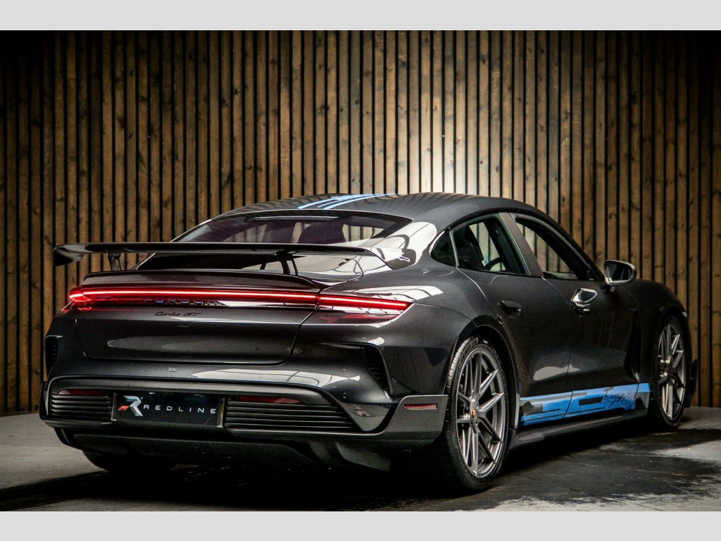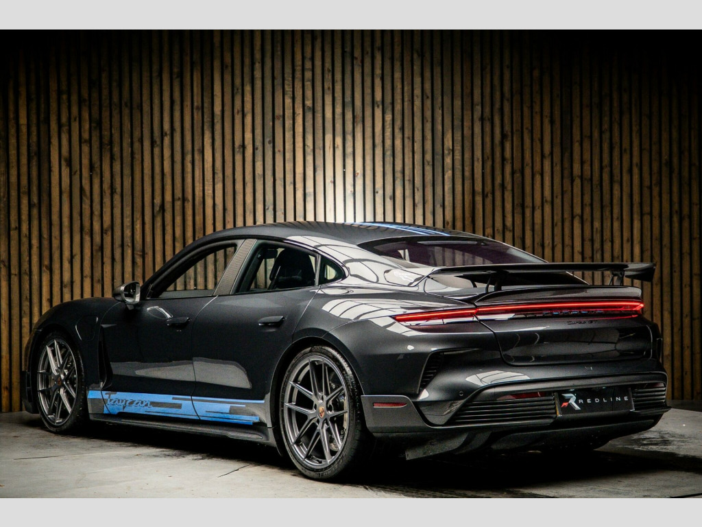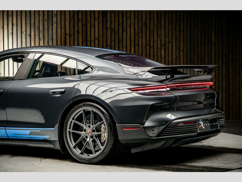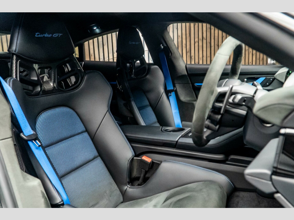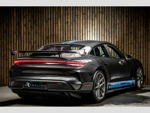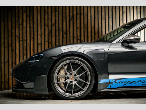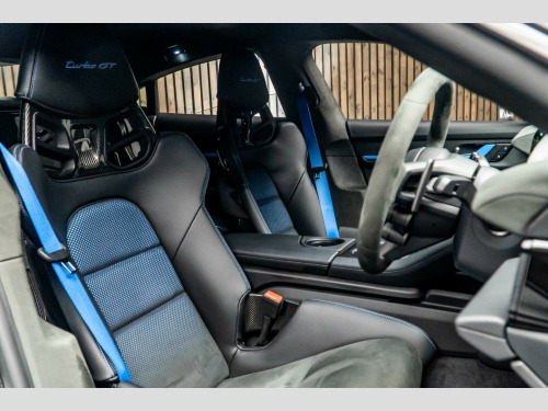 This exceptional 2025 Porsche Taycan Performance Plus Turbo GT (Weissach) presents a unique opportunity, having been driven only 4,000 miles by a single owner. As a fully electric vehicle with four wheel drive, it boasts a substantial 105 kWh battery offering a maximum range of 347 miles when new. This Taycan is equipped with a BOSE Surround Sound System, advanced Matrix LED Headlights, and seamless Smartphone Integration including Android Auto and Apple CarPlay. Comfort is assured with Advanced 4-Zone Climate Control, and convenience is enhanced by a Smartphone Compartment with Wireless Charging.The performance of this Taycan is truly remarkable, with an acceleration of 0-62mph achieved in just 2.2 seconds, demonstrating its superior capability compared to other vehicles in its class. The rapid charging time of only 20 minutes to reach 80% capacity from empty further highlights its advanced electric technology. This combination of low mileage, single ownership, impressive range, and exhilarating performance makes this Porsche Taycan a standout choice.. 11kW AC On-Board Charger, 21in Alloy Wheels - Turbo GT - Forged Lightweight, 3-Point Automatic Seat Belts with Pre-Tensioners - Front and Outer Rear Seats and Front Force Limiter, ABS - Anti-lock Brake System, Accent Package in Black, Active Speed Limit Assist, Advanced 4-Zone Climate Control, Aerodynamics Package, Alarm System with Interior Surveillance, Alcohol Interlock Preparation, Aluminum roof, Anti-Theft Wheel Bolts, Centre Armrest, Deletion of GTS Logo on Sideskirt Inlays, Digital Radio, Door Handles Painted in Exterior Colour, Door Sill Guards - Black, Driver Awareness Detection, Electric Parking Brake, Electric Windows - Front and Rear, Electrically Folding Exterior Mirrors, Emergency Call Systems eCall and bCall, Emergency Tyre Sealant and Pump Kit, Exterior Mirror Upper Trims in Carbon, Floor Mats, Front Side Airbags, Full Size Airbags for Driver and Front Passenger, GT- Sports Steering Wheel in Race-Tex Black with Two Mode Switches, Headrests with Sticthed Medal Designation, Heat Pump, ISOFIX Mounting Points for Child Seats on Outer Rear Seats, Interior Lighting, Keyless Drive, Knee Airbags for Driver and Front Passenger, Lane Keeping Assist including Traffic Sign Recognition, Light Strip with Porsche Logo Black, Lightweight Carbon Casing - Replacing Rear Seats Including Storage Compartment, Lightweight Porsche Ceramic Composite Brake (PCCB) - Brake Calipers in Victory Gold, Lightweight Starter Battery, Lightweight and Noise Insulated Glass, Lower Valance with Inlays Painted in Exterior Colour, Manual Charging Cover, Matrix LED Headlights, Model Designation Painted in Black Matt, Navigation High, Non-Smoking Package, PTV Plus - Porsche Torque Vectoring Plus, ParkAssist - Front and Rear with Visual and Audible Warning, Particle and Pollen Filter with Active Carbon Filter, Pedals and Footrest in Black, Pedestrian Safety, Performance Battery Plus, Porsche Active Ride, Porsche E-Performance Powertrain with Permanent Magnet Synchronous Motor on the Rear Axle, Porsche Intelligent Range Manager, Power Steering Plus, Public Charging Cable - Mode 3, Rear Axle Steering including Power Steering Plus, Rear Wiper, Reversing Camera, Roof Lining in Race-Tex, Seat Belts - Black, Side Airbags at Front - Integrated in the Seat, Side Window Trims - Black High Gloss, Smartphone Compartment with Wireless Charging, Smartphone Integration, Sound Package Plus without Speaker in the Rear, SportDesign Sideskirts with Inlays in Carbon, Steering Wheel - Manual Height and Fore-Aft Adjustment, Storage Package, Summer Tyres Performance for 21in Wheels, Sun Visors for Driver and Front Passenger, Third Brake Light, Three Point Automatic Seat Belts, Tyre Pressure Monitoring - TPM, USB-C Fast Charging Function, Warn and Brake Assist including Pedestrian Protection, Wheel Arch Covers, Wheels Painted in Standard Colour, Fire Extinguisher, Rear Light Strip with PORSCHE logo in Glacier Ice Blue, BOSE Surround Sound System, Accents Package Pulseblue, Taycan Decorative Sticker Set, Side Logo Weissach on the Rear Wing in Silver, Seat Belts Voltage Blue, Porsche Electric Sport Sound.