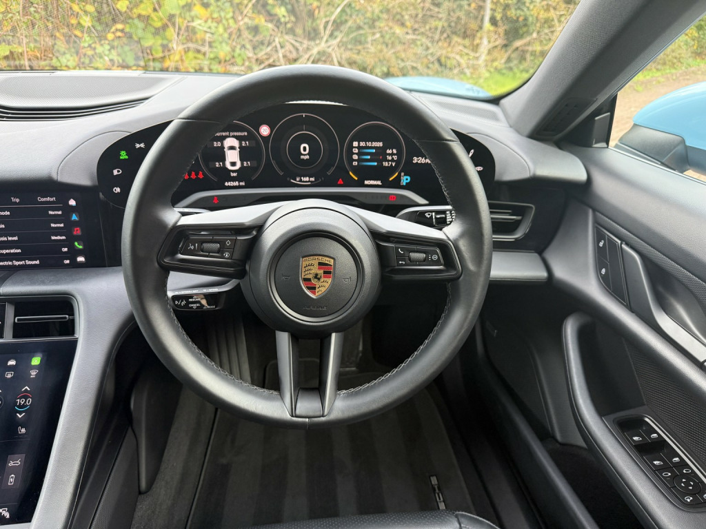 2021 (71) Porsche Taycan 4 Performance Battery Plus – One Owner | Full Porsche History | Tracker Installed | Frozen Blue Metallic, , A truly stunning example of Porsches all-electric performance saloon – this 2021 Porsche Taycan 4 has had just one owner from new and is finished in the rare and striking Frozen Blue Metallic, making it one of the most eye-catching Taycans on the market. , With 44,000 miles and a full Porsche service history, this example has been maintained to the highest standard and specified with over £13,500 worth of factory options, including the essential Performance Battery Plus. , ???? Factory Options Include:, • Performance Battery Plus (£4,049), • Adaptive Air Suspension with Porsche Active Suspension Management (PASM) (£1,527), • 20 Taycan Turbo Aero Wheels (£1,524), • BOSE Surround Sound System (£956), • 22kW On-Board AC Charger (£1,179), • ParkAssist with Surround View (£522), • Porsche Electric Sport Sound (£354), • Comfort Access (£774), • Ambient Lighting (£299), • Porsche Crest on Front Headrests (£161), • Frozen Blue Metallic Paintwork, • Partial Black Leather Interior, • Power Steering Plus (£203), • 2+1 Rear Seat Configuration (£336), • Electric Folding Mirrors (£210), • Side Airbags (Rear) (£291), • Tracker Installed for added peace of mind, , This Taycan perfectly blends luxury, technology, and Porsche performance – with instant torque, all-wheel-drive handling, and incredible refinement. A true future classic and one of the cleanest examples available. , ???? One Owner from New, ???? 44,000 Miles, ???? Full Porsche Service History, ???? Outstanding Condition Throughout, ???? Tracker Installed, , ✅ Warranty Included – Extendable Options, ✅ Finance Available (We are a broker, not a lender), ✅ Nationwide Delivery Available, , ???? 01252 268836, ???? www.automanor.co.uk