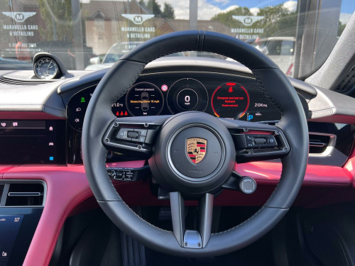 This 2022 Porsche Taycan Performance Plus 4 is a remarkable example, boasting exceptionally low mileage of just 4950 miles and having had only one owner. This electric, four wheel drive saloon offers a substantial 93 kWh battery, providing a maximum range of 304 miles when new. It comes equipped with a suite of desirable features, including wireless phone charging conveniently located in the centre console storage compartment, and Porsche Connect with Apple CarPlay for seamless connectivity. Driving is enhanced by LED headlights with automatic activation and welcome home lighting, while the heated front seats ensure comfort in all conditions.The Taycan Performance Plus 4 is designed for exhilarating performance, achieving 0-62mph in a swift 5.1 seconds, demonstrating its dynamic capabilities. This impressive acceleration, combined with its electric powertrain and four wheel drive system, sets it apart from many other vehicles in its class. Recharging is efficient, with a full charge at home taking approximately 13 hours and 30 minutes using a 7kW charger, and a rapid charge to 80% possible in as little as 24 minutes at a public charging station. aptive cruise control, bose surround sound system with 14 speakers including subwoofer and a total output of 710 watts, burmester high-end 3d surround sound system, head up display, lane change assist, night view assist, parkassist including reversing camera, parkassist including surround view, porsche innodrive including adaptive cruise assist, porsche rear seat entertainment, porsche charging dock - wall box, preparation for porsche rear seat entertainment, 150kw dc on-board booster, passenger display, sport chrono package with porsche design subsecond clock, exclusive matrix led headlights in black with porsche dynamic light system plus, led matrix headlights including porsche dynamic light system plus, porsche electric sport sound, preparation for porsche dashcam, side airbags in rear compartment, vehicle key in leather with key pouch in leather, 20in alloy wheels - taycan turbo design, 20in alloy wheels - taycan turbo s design, advanced 4-zone climate control, aluminium pedals, leather door trim package, 11kw ac on-board charger, 12v electrical socket in rear luggage compartment, 12v electrical socket in the centre console storage compartment, 16.8in curved display, 19in alloy wheels - taycan aero, 2 usb-c charge ports in the rear, 2 usb-c connectivity and charge ports in the centre console storage compartment, 3-point automatic seat belts with pre-tensioners - front and outer rear seats and front force limiter, 4-point led daytime running lights, 50kw dc on-board charger for use of public charging stations with a voltage of 400v, abs - anti-lock brake system, accent package in black, active bonnet system, active carbon fine dust filter, adaptive air suspension including porsche active suspension management - pasm, advanced 2-zone climate control, aluminium double-wishbone front axle, aluminium multi-link rear axle, auto-deploying door handles, automatic headlight activation including welcome home lighting, automatic hold function, automatic tailgate, b-pillar clothes hook on driver and passengers side, brake calipers - black, brake pad wear indicator, bumpers comprising high-strength cross members and two deformation elements each with one threaded fixture point for towing eye contained in on-board tool kit, cable between charger and vehicle - 7.5m, centre console with direct touch control, charge port on driver and front passenger side, collision and brake assist, comfort seats - front with 8-way electrical adjustment of seat height - seat and backrest angle and fore-aft position, cross turismo style lower valance with inlays in brilliant silver finish, cross turismo style rear diffuser with inlays in brilliant silver finish, cross turismo style side skirts with inlays in brilliant silver finish, cruise control including adaptive speed limiter, curtain airbags along entire roof frame and side windows from the a-pillar to the c-pillar, dc charging at public charging stations with voltage of 800v, digital radio, door sill guards - black, driver personalisation, electric parking brake, electric windows - front and rear, electrically adjustable and heated exterior mirrors - aspherical on drivers side, engine bonnet - rear tailgate - doors - side panels - roof and front wings in aluminium, engine immobiliser with remote central locking and alarm system with radar-based interior surveillance, exterior mirror lower trims including mirror base in black, floor mats, folding luggage compartment cover, four-piston aluminium monobloc fixed brake calipers at rear, front centre console armrest with integrated storage compartment, front side airbags, full size airbags for driver and front passenger, full surface aerodynamic underbody panelling, fully galvanised steel-aluminium hybrid lightweight bodyshell, gravel mode for activation of settings for enhanced rough road and loose surface capability, heat pump, heated rear window with auto-off function, isofix mounting points for child seats on outer rear seats, illuminated vanity mirrors for driver and front passenger, integrated front headrests, integrated porsche 4d chassis control, keyless drive, knee airbags for driver and front passenger, led headlights, led interior lighting concept, lane keeping assist including traffic sign recognition, light strip, luggage compartments at front and rear, manual adjustment of seat belt height for driver and front passenger seats, mobile charger plus with 4.5m vehicle side cable, model designation on tailgate in silver colour, multi-collision brake, multi-function sports steering wheel in leather, parkassist - front and rear with visual and audible warning, parking pre-climatisation, performance battery plus, porsche active aerodynamics with active air intake flaps and adaptive rear spoiler, porsche communication management pcm includes navigation module mobile phon