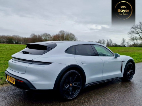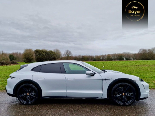 MEGA SPEC IN THE BEST COLOUR ICE GREY + VAT QUALIFYING This 2021 Porsche Taycan Performance Plus 4S is a superb example, having had only one previous owner since new. As a fully electric vehicle, it offers a compelling blend of performance and advanced technology. This four wheel drive model boasts a substantial 93 kWh battery, providing a maximum range of up to 281 miles when new. For convenience, a full charge at home using a 7kW charger takes approximately 13 hours and 30 minutes, while rapid public charging can replenish the battery from empty to 80% in as little as 25 minutes. The Taycan 4S is equipped with striking Exclusive Matrix LED Headlights in Black, featuring Porsche Dynamic Light System Plus for optimal visibility. Enjoy an open and airy cabin thanks to the Fixed Glass Panoramic Roof. Immerse yourself in sound with the BOSE Surround Sound System, which includes 14 speakers, a subwoofer, and a total output of 710 Watts. Parking is made easier with ParkAssist and a reversing camera. The vehicle also sits on impressive 21 inch Alloy Wheels in a Cross Turismo Design. These features, combined with its impressive 0-60mph acceleration in just 4.1 seconds, demonstrate the Taycan's superior engineering and driving experience compared to other vehicles in its class. 11kW AC On-Board Charger, 12v Electrical Socket in Rear Luggage Co, 12v Electrical Socket in the Centre Cons, 16.8in Curved Display, 19in Alloy Wheels - Taycan S Aero, 2 USB-C Charge Ports in the Rear, 2 USB-C Connectivity and Charge Ports in, 21in Alloy Wheels - Cross Turismo Design, 3-Point Automatic Seat Belts with Pre-Te, 4+1 Seats System, 4-Point LED Daytime Running Lights, 50kW DC On-Board Charger for use of Publ, ABS - Anti-lock Brake System, Accent Package in Black, Active Bonnet System, Active Carbon Fine Dust Filter, Adaptive Air Suspension including Porsch, Advanced 2-Zone Climate Control, Aluminium Double-Wishbone Front Axle, Aluminium Multi-Link Rear Axle, Ambient Lighting, Auto