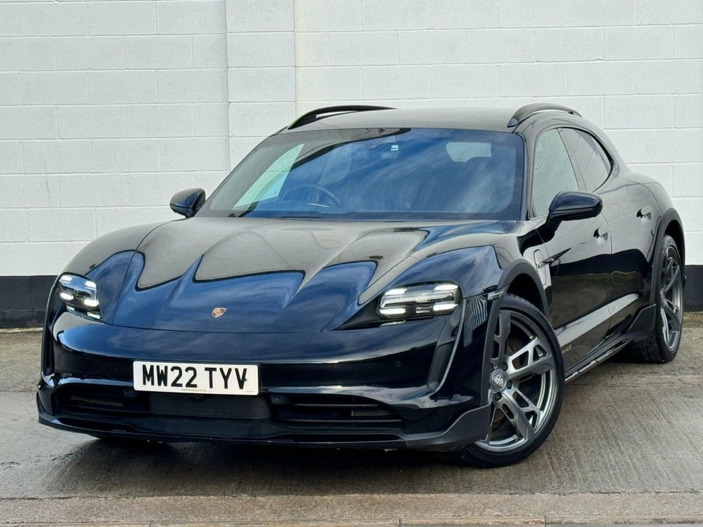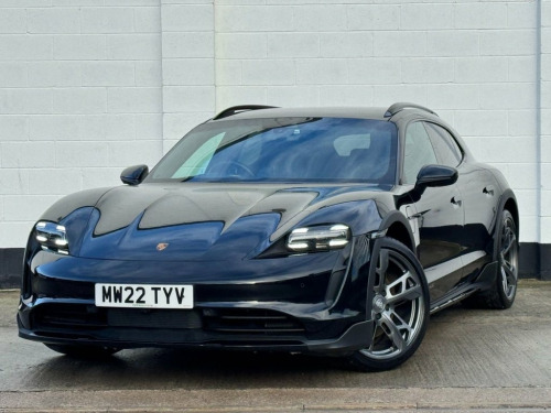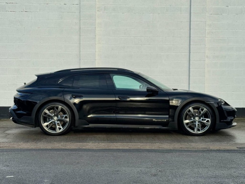 2022 (22) Porsche Taycan 4S Cross Turismo Performance Plus 93.4kWh – Jet Black Metallic – FPSH – High Specification Presented in Jet Black Metallic with full Porsche service history, this Taycan 4S Cross Turismo Performance Plus offers a compelling combination of performance, capability and practicality, supported by a desirable factory specification and Porsche's hallmark engineering quality. This Performance Plus variant features the 93.4kWh battery with dual-motor all-wheel drive, delivering rapid acceleration and refined touring comfort, while the Cross Turismo body provides increased ride height, extended luggage space and versatile 4+1 seating. Key Factory Specification & Options • 21in Cross Turismo Design Alloy Wheels (Satin Aurum) • Fixed Glass Panoramic Roof • Offroad Design Package • Powered Charging Port Cover • 18-Way Adaptive Sports Seats (Front) • 4+1 Seats System • Ambient Interior Lighting • GT Sport Heated Steering Wheel • Accent Package in Neodyme • Porsche Electric Sport Sound • Sport Chrono Package including Compass Display on Dashboard • Park Assist with Surround View Performance & Technical Highlights • Model Year: 2022 (22) • Battery: 93.4kWh Performance Plus • Powertrain: Dual-motor AWD • Transmission: Single-speed automatic (EV) • Acceleration: 0-62mph approx. 4.1s (manufacturer) • Top Speed: 149mph (manufactu Smooth Finish Leather - Black, Door Sill Guards in Black Brushed Alumin, Side Window Trims - Black High Gloss, 18-Way Adaptive Sports Seats - Front wit, Accent Package in Neodyme, Porsche Electric Sport Sound, Model Designation on Doors - Aurum, Sport Chrono Package Including Mode Swit, 21in Alloy Wheels - Cross Turismo Design, Windscreen with Grey Top-Tint, Roof Rails - Black Aluminium, Porsche Crest on Head Restraints, Powered Charging Port Cover, Electrically Folding Exterior Mirrors, GT Sport Steering Wheel in Leather - Hea, Offroad Design Package, Wheels Painted in Satin Aurum, Brake Calipers - Black High-Gloss, Model Designation Painted - Black High-G, ParkAssist Including Surround Vie