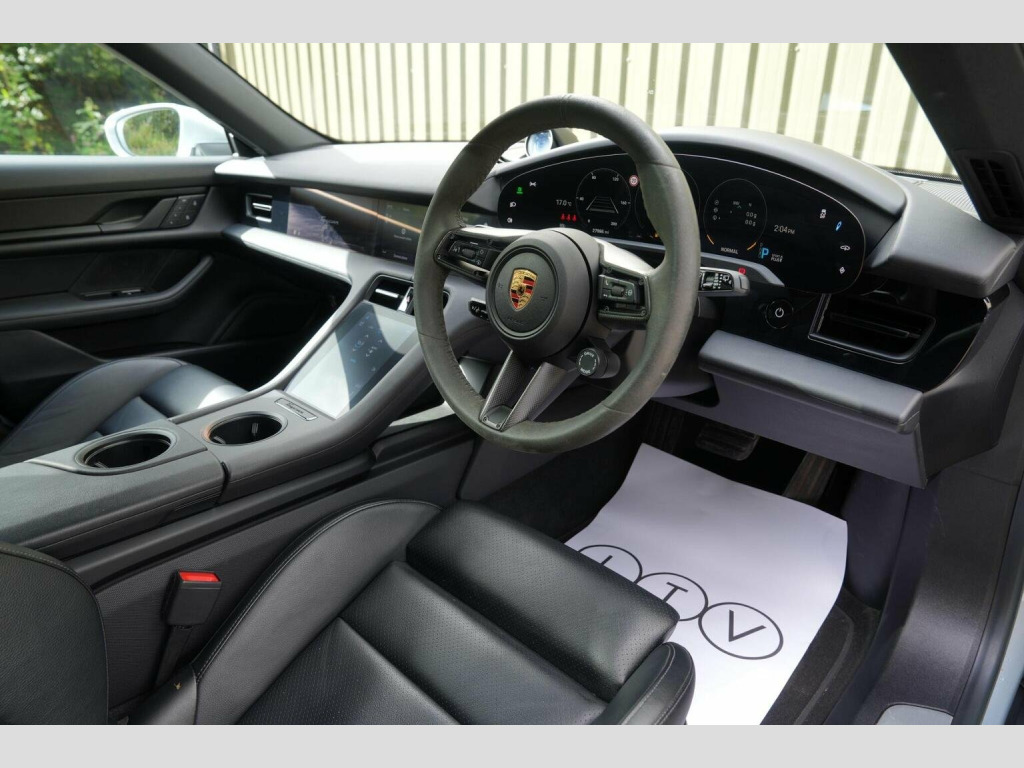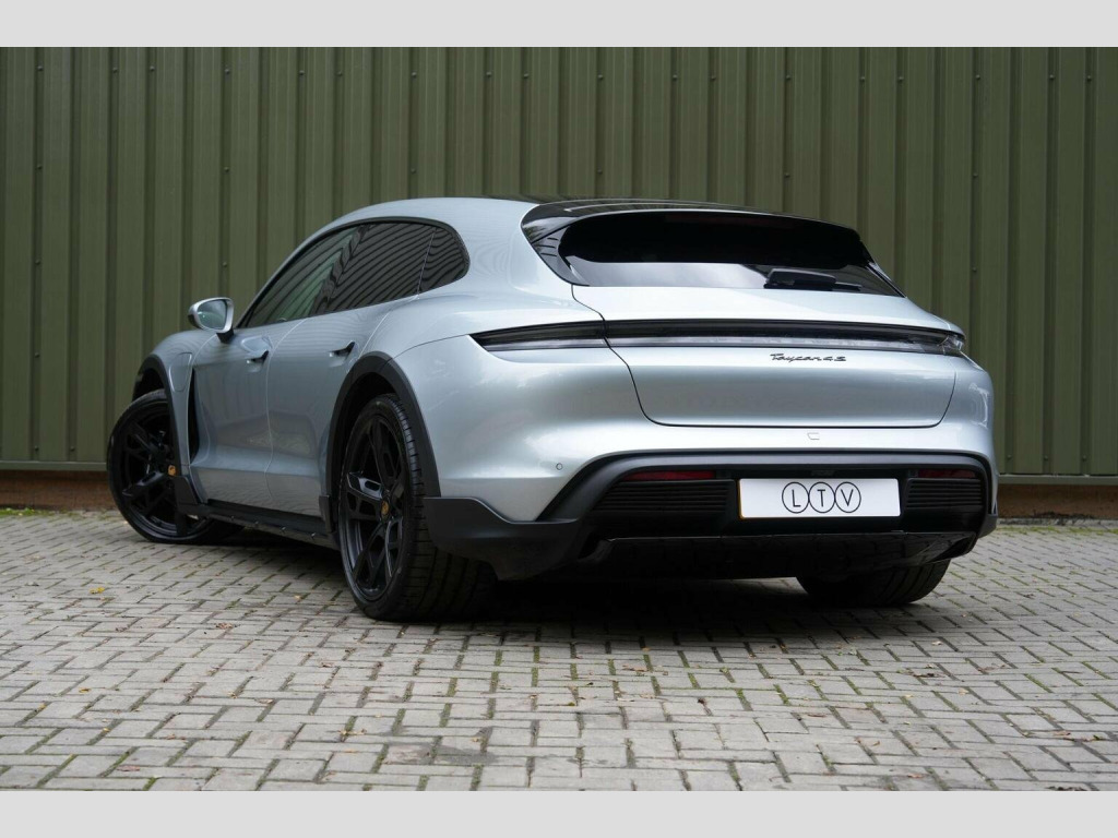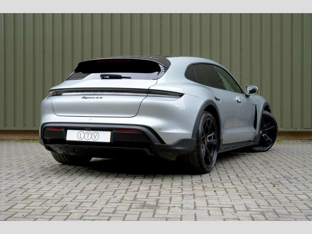 SPORTS CHRONO PACKAGE - CRESTED HEADRESTS - 2023 72 registered, this striking Taycan Performance Plus Cross Turismo is finished in Dolomite Silver metallic with a Black partial leather interior. Having covered just 27,000 miles under the careful stewardship of one sole custodian from new, it is presented in immaculate condition and benefits from a carefully selected range of rare and desirable factory options. The exterior specification is both elegant and purposeful. 21 Cross Turismo Design alloy wheels, painted in satin black and adorned with full colour Porsche crest centres, a combination that adds subtle distinction. The black high gloss brake calipers and matt black model designation provide further contrast, creating a refined sporting presence. A fixed glass panoramic roof enhances both the silhouette and the sense of light within the cabin, while the windscreen with grey top-tint adds a finishing touch of sophistication. Inside, the Taycan blends cutting edge design with understated luxury. The 4+1 seating configuration offers additional practicality, while details such as the Porsche crests embossed on the head restraints emphasise exclusivity. The steering wheel, trimmed in matt carbon with Race-Tex accents and heating, is both tactile and rare in its specification. Partial black leather upholstery complements the modern, driver focused environment. Performance is underscored by the inclusion of the Sport Chrono Package with Porsche Design subsecond clock, a feature that not only enhances driving dynamics but also reflects Porsches heritage in precision instrumentation. Finished in one of the marques most contemporary colour combinations, with a specification seldom encountered together, this Taycan Performance Plus Cross Turismo is more than just a technical showcase, it is an immaculate example of Porsches fully electric sporting estate. **VIEWING STRICTLY BY APPOINTMENT ONLY - FOR FURTHER INFORMATION REGARDING THIS VEHICLE AND ANY OTHER PREMIUM MARQUE IN STOCK, PLEASE CALL SALES DIRECT. VEHICLE FINANCE SPECIALISTS OFFERING COMPETITIVE PACKAGES**