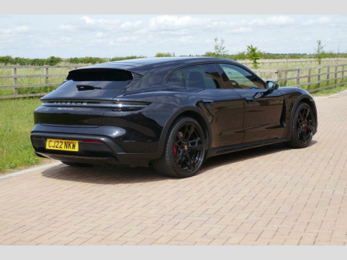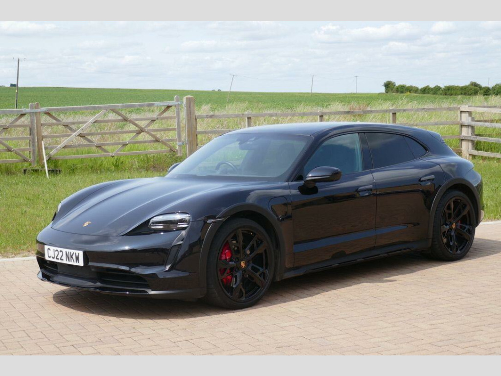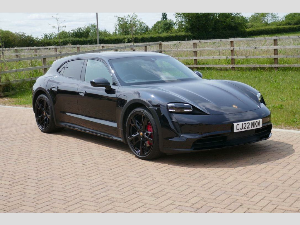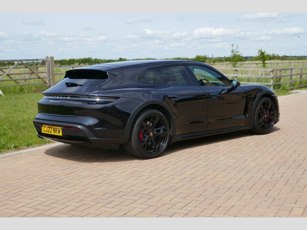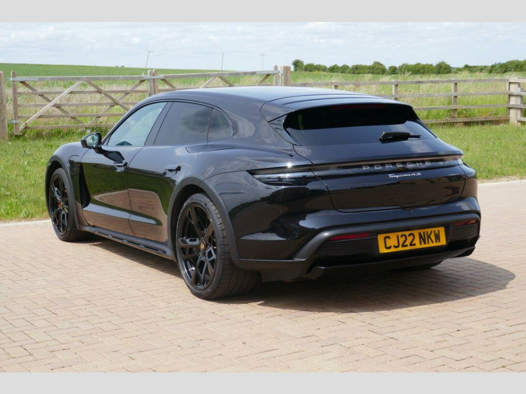 Taycan 4S Cross Turismo in Jet Black Metallic, factory options include 21-Inch Cross Turismo Design Wheels, Power Steering Plus, BOSE Surround Sound System, Side window trims in Black (high-gloss), Privacy glass, Ambient lighting, Driver memory package, ParkAssist including Surround View, Sport Chrono Package incl. mode switch, Wheels painted in Jet Black Metallic, Electric folding exterior mirrors, Heated GT sports steering wheel in leather, Windscreen with grey top-tint, Panoramic roof - fixed, Porsche Electric Sport Sound, 'PORSCHE' logo LED door courtesy lights, Inlays painted in Black (high-gloss). Full Porsche service history se surround sound system with 14 speakers including subwoofer and a total output of 710 watts, parkassist including surround view, 21in alloy wheels - cross turismo design, electrically folding exterior mirrors, fixed glass panoramic roof, porsche logo led door courtesy lights, privacy glass, side window trims - black high gloss, wheels painted in exterior colour, ambient lighting, driver memory package, gt sport steering wheel in leather - heated, inlays painted in black high-gloss, porsche electric sport sound, power steering plus, sport chrono package, 11kw ac on-board charger, 12v electrical socket in rear luggage compartment, 12v electrical socket in the centre console storage compartment, 16.8in curved display, 2 usb-c charge ports in the rear, 2 usb-c connectivity and charge ports in the centre console storage compartment, 3-point automatic seat belts with pre-tensioners - front and outer rear seats and front force limiter, 4-point led daytime running lights, abs - anti-lock brake system, accent package in black, active bonnet system, active carbon fine dust filter, adaptive air suspension including porsche active suspension management - pasm, advanced 2-zone climate control, aluminium double-wishbone front axle, aluminium multi-link rear axle, auto-deploying door handles, automatic headlight activation including welcome home lighting, automatic hold function, automatic tailgate, brake calipers - red, centre console with direct touch control, charge port on driver and front passenger side, collision and brake assist, comfort seats - front with 8-way electrical adjustment of seat height - seat and backrest angle and fore-aft position, cruise control including adaptive speed limiter, curtain airbags along entire roof frame and side windows from the a-pillar to the c-pillar, dc charging at public charging stations with voltage of 800v, digital radio, door sill guards in brushed aluminium, driver personalisation, electric parking brake, electric windows - front and rear, engine bonnet - rear tailgate - doors - side panels - roof and front wings in aluminium, engine immobiliser with remote central locking and alarm system with radar-based interior surveillance, floor mats, folding luggage compartment cover, four-piston aluminium monobloc fixed brake calipers at rear, front centre console armrest with integrated storage compartment, front side airbags, full size airbags for driver and front passenger, full surface aerodynamic underbody panelling, fully galvanised steel-aluminium hybrid lightweight bodyshell, gravel mode for activation of settings for enhanced rough road and loose surface capability, heat pump, isofix mounting points for child seats on outer rear seats, integrated front headrests, integrated porsche 4d chassis control, keyless drive, knee airbags for driver and front passenger, led headlights including porsche dynamic light system plus - pdls plus, lane keeping assist including traffic sign recognition, light strip, luggage compartments at front and rear, multi-collision brake, multi-function sports steering wheel in leather, parkassist - front and rear with visual and audible warning, parking pre-climatisation, performance battery plus, porsche active aerodynamics with active air intake flaps and adaptive rear spoiler, porsche communication management pcm includes navigation module mobile phone preparation audio interface and voice control system, porsche connect with apple carplay, porsche intelligent range manager, porsche logo in glass look integrated into rear light strip, porsche recuperation management - prm, porsche stability management - psm including abs with extended brake functions, porsche vehicle tracking system plus, range mode for the activation of efficiency-orientated settings, rear seats with 2 seats in single-seat look - fold out armrest and split folding backrests 60-40, rollover detection for activation of curtain airbags and seat belt pretensioners, roof spoiler in high-gloss black, seats - heated front, side impact protection integrated into doors, six-piston aluminium monobloc fixed brake calipers at front, sport mode for the activation of dynamic performance settings including launch control, storage compartment, storage package, taycan badge on the centre console, thermally insulated glass all round, third brake light, two integrated cupholders front and rear, tyre pressure monitoring - tpm, upper valance with vertical air intakes - air curtain, windscreen wiper system including rain sensor and washer jets, wireless phone charging in centre console storage compartment