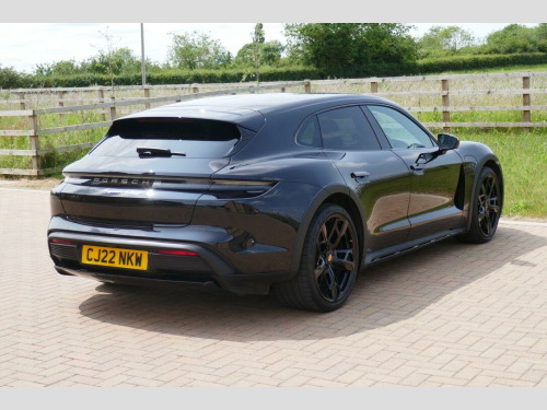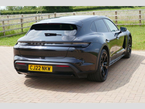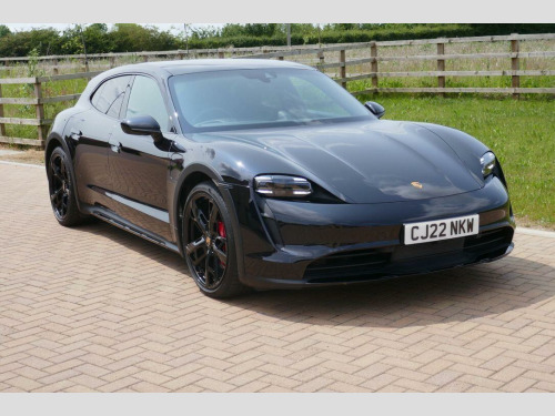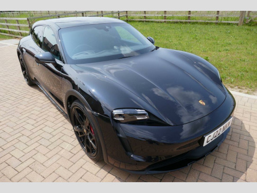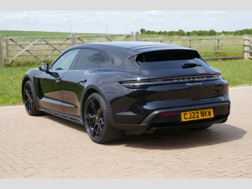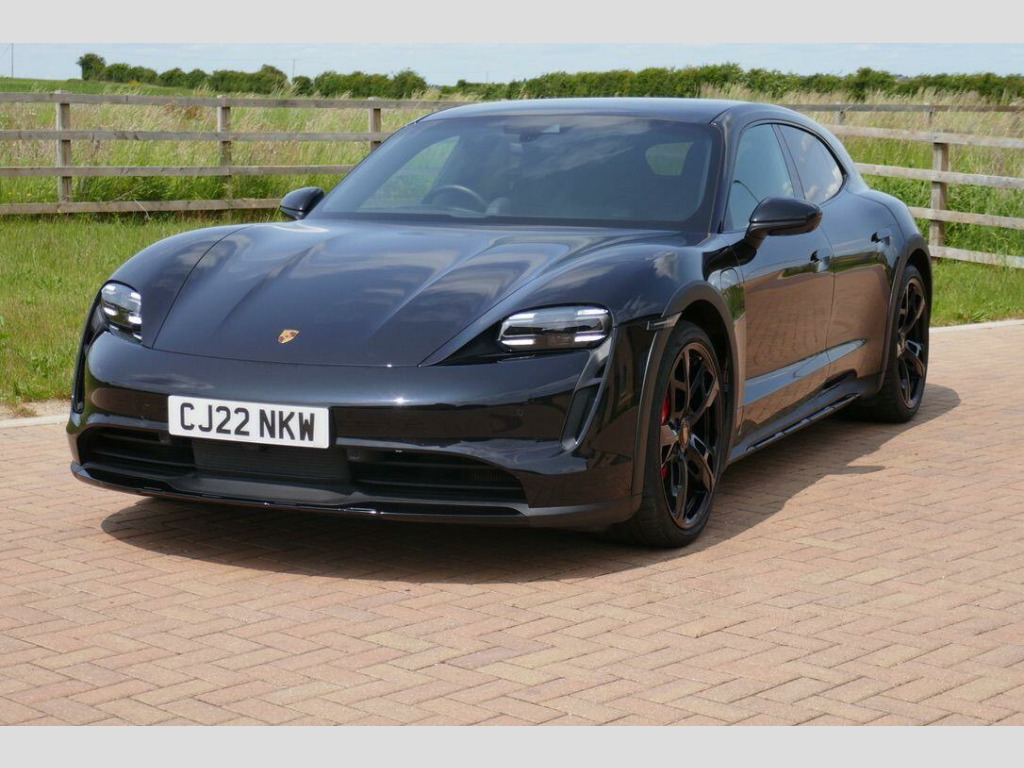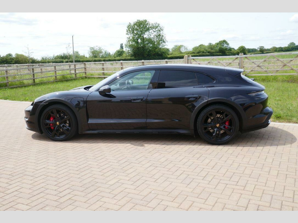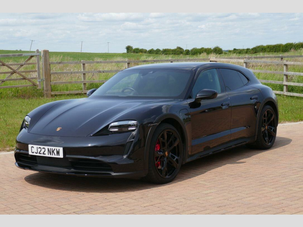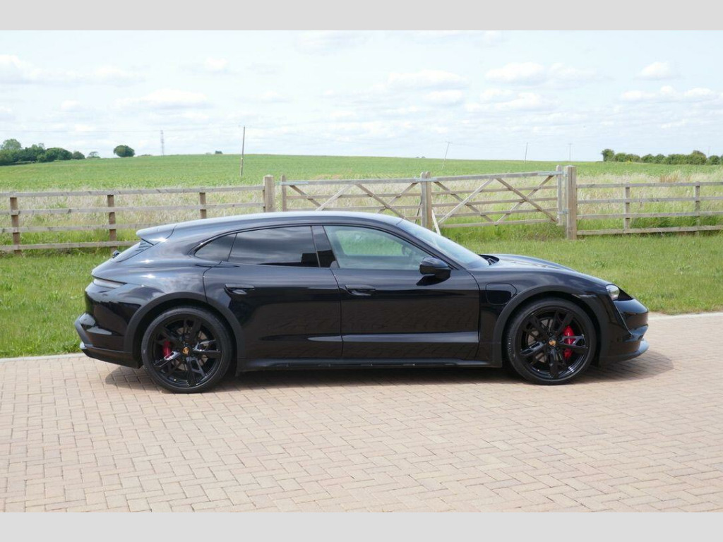 Taycan 4S Cross Turismo in Jet Black Metallic, factory options include 21-Inch Cross Turismo Design Wheels, Power Steering Plus, BOSE Surround Sound System, Side window trims in Black (high-gloss), Privacy glass, Ambient lighting, Driver memory package, ParkAssist including Surround View, Sport Chrono Package incl. mode switch, Wheels painted in Jet Black Metallic, Electric folding exterior mirrors, Heated GT sports steering wheel in leather, Windscreen with grey top-tint, Panoramic roof - fixed, Porsche Electric Sport Sound, 'PORSCHE' logo LED door courtesy lights, Inlays painted in Black (high-gloss). Full Porsche service history se surround sound system with 14 speakers including subwoofer and a total output of 710 watts, parkassist including surround view, 21in alloy wheels - cross turismo design, electrically folding exterior mirrors, fixed glass panoramic roof, porsche logo led door courtesy lights, privacy glass, side window trims - black high gloss, wheels painted in exterior colour, ambient lighting, driver memory package, gt sport steering wheel in leather - heated, inlays painted in black high-gloss, porsche electric sport sound, power steering plus, sport chrono package, 11kw ac on-board charger, 12v electrical socket in rear luggage compartment, 12v electrical socket in the centre console storage compartment, 16.8in curved display, 2 usb-c charge ports in the rear, 2 usb-c connectivity and charge ports in the centre console storage compartment, 3-point automatic seat belts with pre-tensioners - front and outer rear seats and front force limiter, 4-point led daytime running lights, abs - anti-lock brake system, accent package in black, active bonnet system, active carbon fine dust filter, adaptive air suspension including porsche active suspension management - pasm, advanced 2-zone climate control, aluminium double-wishbone front axle, aluminium multi-link rear axle, auto-deploying door handles, automatic headlight activation including welcome home lighting, automatic hold function, automatic tailgate, brake calipers - red, centre console with direct touch control, charge port on driver and front passenger side, collision and brake assist, comfort seats - front with 8-way electrical adjustment of seat height - seat and backrest angle and fore-aft position, cruise control including adaptive speed limiter, curtain airbags along entire roof frame and side windows from the a-pillar to the c-pillar, dc charging at public charging stations with voltage of 800v, digital radio, door sill guards in brushed aluminium, driver personalisation, electric parking brake, electric windows - front and rear, engine bonnet - rear tailgate - doors - side panels - roof and front wings in aluminium, engine immobiliser with remote central locking and alarm system with radar-based interior surveillance, floor mats, folding luggage compartment cover, four-piston aluminium monobloc fixed brake calipers at rear, front centre console armrest with integrated storage compartment, front side airbags, full size airbags for driver and front passenger, full surface aerodynamic underbody panelling, fully galvanised steel-aluminium hybrid lightweight bodyshell, gravel mode for activation of settings for enhanced rough road and loose surface capability, heat pump, isofix mounting points for child seats on outer rear seats, integrated front headrests, integrated porsche 4d chassis control, keyless drive, knee airbags for driver and front passenger, led headlights including porsche dynamic light system plus - pdls plus, lane keeping assist including traffic sign recognition, light strip, luggage compartments at front and rear, multi-collision brake, multi-function sports steering wheel in leather, parkassist - front and rear with visual and audible warning, parking pre-climatisation, performance battery plus, porsche active aerodynamics with active air intake flaps and adaptive rear spoiler, porsche communication management pcm includes navigation module mobile phone preparation audio interface and voice control system, porsche connect with apple carplay, porsche intelligent range manager, porsche logo in glass look integrated into rear light strip, porsche recuperation management - prm, porsche stability management - psm including abs with extended brake functions, porsche vehicle tracking system plus, range mode for the activation of efficiency-orientated settings, rear seats with 2 seats in single-seat look - fold out armrest and split folding backrests 60-40, rollover detection for activation of curtain airbags and seat belt pretensioners, roof spoiler in high-gloss black, seats - heated front, side impact protection integrated into doors, six-piston aluminium monobloc fixed brake calipers at front, sport mode for the activation of dynamic performance settings including launch control, storage compartment, storage package, taycan badge on the centre console, thermally insulated glass all round, third brake light, two integrated cupholders front and rear, tyre pressure monitoring - tpm, upper valance with vertical air intakes - air curtain, windscreen wiper system including rain sensor and washer jets, wireless phone charging in centre console storage compartment