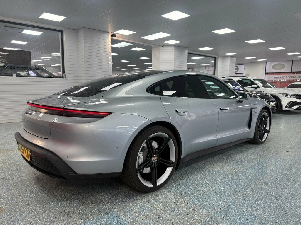 This 2020 Porsche Taycan Performance Plus 4S presents with exceptionally low mileage for its age, having covered just 23,050 miles. As an all electric vehicle with Four Wheel Drive, this 4S trim model boasts a substantial 93 kWh battery, offering a maximum range of 288 miles when new. It features a striking Fixed Glass Panoramic Roof, 21 inch Alloy Wheels in Mission E Design, and the BOSE Surround Sound System with 14 speakers for an immersive audio experience. Connectivity is enhanced with Porsche Connect and Apple CarPlay, while the Advanced 2 Zone Climate Control ensures passenger comfort. Experience exhilarating performance with the Taycan's impressive acceleration, achieving 0 to 60 miles per hour in just 4.0 seconds, a figure that highlights its dynamic capabilities. Charging is convenient, with a full charge at home taking approximately 13 hours and 30 minutes using a 7kW charger, and a rapid charge to 80% achievable in as little as 25 minutes at a compatible public charging station. These attributes combine to make this Taycan a compelling choice for those seeking a blend of electric innovation and Porsche's renowned driving pleasure. 21in Alloy Wheels - Mission E Design, Fixed Glass Panoramic Roof, BOSE Surround Sound System with 14 Speak, Frozen Blue, 11kW AC On-Board Charger, 12v Electrical Socket in Rear Luggage Co, 12v Electrical Socket in the Centre Cons, 16.8in Curved Display, 19in Alloy Wheels - Taycan S Aero, 2 USB-C Charge Ports in the Rear, 2 USB-C Connectivity and Charge Ports in, 3-Point Automatic Seat Belts with Pre-Te, 4-Point LED Daytime Running Lights, 50kW DC On-Board Charger for use of Publ, ABS - Anti-lock Brake System, Accent Package in Black, Active Bonnet System, Active Carbon Fine Dust Filter, Adaptive Air Suspension including Porsch, Advanced 2-Zone Climate Control, Aluminium Double-Wishbone Front