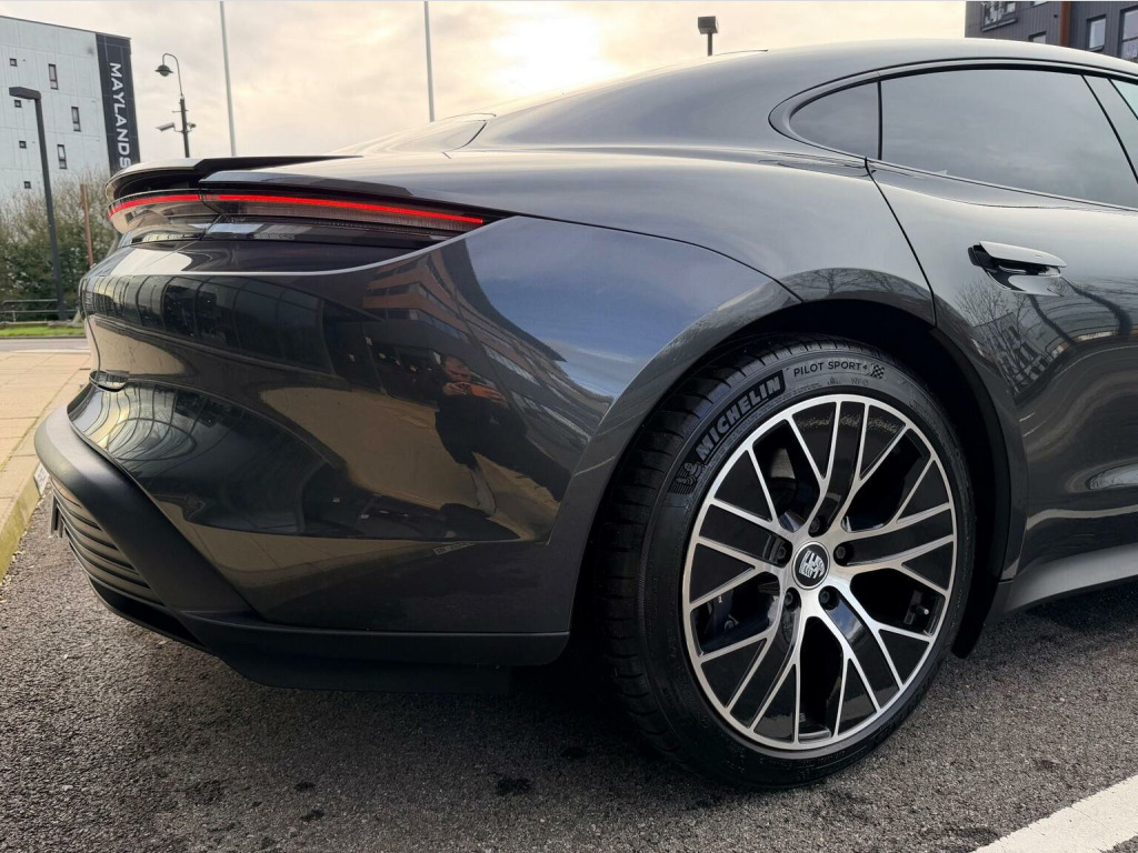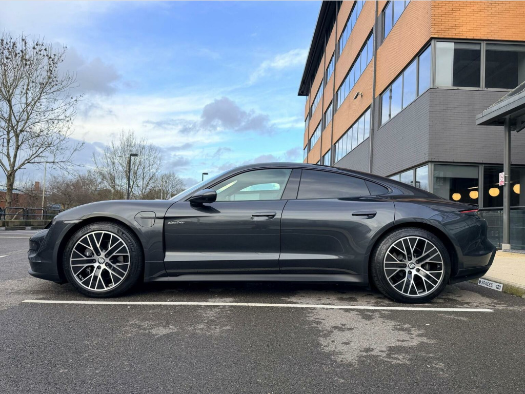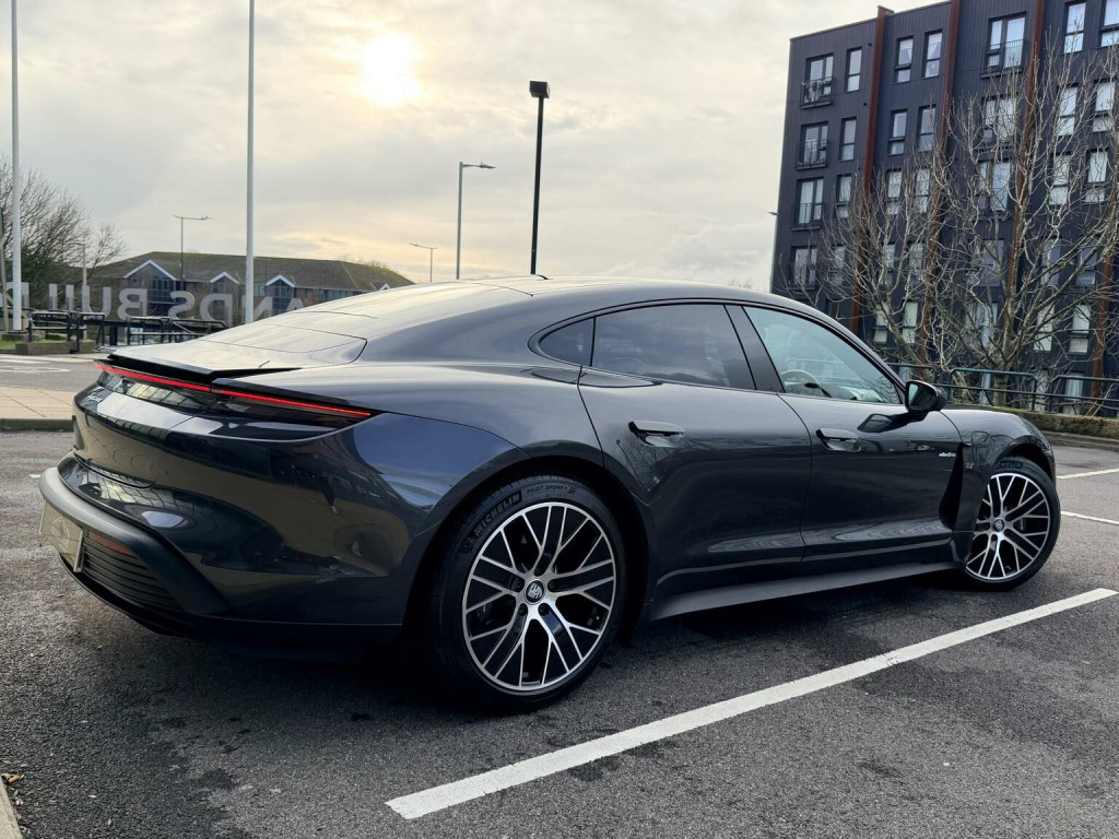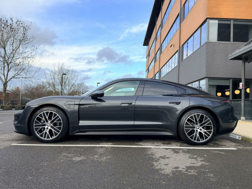 Over £14k of added extras, Adaptive Air Suspension including Porsche Active Suspension Management (PASM),Power Steering Plus,Electric charging cover,Heated steering wheel,Panoramic roof,20-Inch Taycan Turbo Aero Wheels,Automatically dimming exterior and interior mirrors,4+1 Seats,Electric folding exterior mirrors,LED main headlights including Porsche Dynamic Light System Plus (PDLS Plus),BOSE® Surround Sound System,Porsche Electric Sport Sound,Performance Battery Plus,ParkAssist including Surround View 360,Storage Package,Ambient lighting,Privacy glass,Seat heating (front),Preparation for roof transport system,Lane Keep Assist,COMFORT AIR PRESSURE, HIGH SPEED,HEAT PUMP,Apple® CarPlaY, Ascent PackThis 2022 Porsche Taycan Performance Plus presents a remarkable ownership proposition, having been cherished by just one owner from new and boasting exceptionally low mileage for its age at only 28,200 miles. As a fully electric vehicle, it offers a substantial battery total capacity of 93 kWh, providing a maximum range of up to 314 miles when new. This Taycan is equipped with advanced LED Headlights featuring Porsche Dynamic Light System Plus, ensuring optimal visibility. It includes a BOSE Surround Sound System with 14 speakers and a 710 Watt output, complete with a subwoofer. Comfort is further enhanced by a heated steering wheel, ideal for cooler journeys, and the convenience of ParkAssist with a reversing camera. The powered charging port cover adds a touch of modern refinement. Charging this electric Taycan is both convenient and efficient. At home, using a 7kW charger, a full charge takes approximately 13 hours and 30 minutes. For quicker top ups, the fastest public charging option can replenish the battery from empty to 80% in just 24 minutes. These charging capabilities, combined with its impressive range and the premium features like the BOSE sound system and dynamic LED lighting, position this Porsche Taycan Performance Plus as a superior choice for those seeking an electric driving experience that blends performance, technology, and refined comfort.