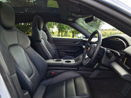 We are delighted to offer this exceptionally high specification Porsche Taycan Performance Plus - with the larger battery. This car has £31,949 of optional extras including Head Up Display, Pan Roof, Soft Leather, Sport Design Body Kit plus so much more. This must be the best spec Taycan we have ever had! Representing excellent value for money. Service History. This 2021 Porsche Taycan Performance Plus presents an exceptional ownership proposition with its remarkably low mileage of just 12,222 miles, having been cherished by only one owner since new. As a fully electric vehicle, it boasts a substantial 93 kWh battery offering a maximum range of 301 miles when new. This Taycan is further enhanced by the desirable SportDesign Package painted in high gloss black, 21 inch Mission E Design alloy wheels, and the striking white calipers of the Porsche Surface Coated Brakes. Inside, you'll find comfort and support with the 18 way Adaptive Sports Seats for the front occupants, complete with a memory package, and a fixed glass panoramic roof that floods the cabin with natural light. The charging capabilities of this Taycan are impressive, with a full charge at home on a 7kW charger taking approximately 13 hours and 30 minutes, while rapid public charging can replenish the battery from empty to 80% in as little as 25 minutes. These features, combined with its advanced electric powertrain and the exclusive Porsche driving dynamics, position this Taycan Performance Plus as 11kW AC On-Board Charger, 12v Electrical Socket in Rear Luggage Co, 12v Electrical Socket in the Centre Cons, 150kW DC On-Board Booster, 16.8in Curved Display, 18-Way Adaptive Sports Seats - Front wit, 19in Alloy Wheels - Taycan Aero, 2 USB-C Charge Ports in the Rear, 2 USB-C Connectivity and Charge Ports in, 21in Alloy Wheels - Mission E Design, 3-Point Automatic Seat Belts with Pre-Te, 3D Surround View with Active Parking Sup, 4+1 Seats System, 4-Point LED Daytime Running Lights, 50kW DC On-Board Charger for use of Publ, ABS - Anti-lock Brake System, Accent Package in Black, Active Bonnet System, Active Carbon Fine Dust Filter, Adaptive Air Suspension including Porsch, Adaptive Cruise Cont