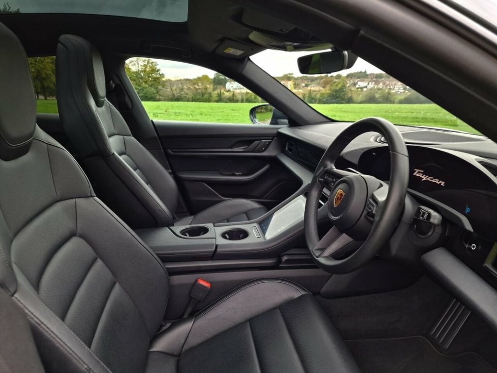 This 2022 Porsche Taycan Performance Plus presents a superb ownership proposition, having had just one owner from new. This electric saloon boasts a substantial 93 kWh battery, offering a maximum range of 314 miles when fully charged. For convenient home charging, a full recharge using a 7kW unit takes approximately 13 hours and 30 minutes, while rapid public charging can replenish the battery from empty to 80% in as little as 24 minutes. The vehicle has covered a low mileage of just 19,750 miles for its age. Adding to its appeal, this Taycan features a fixed panoramic glass roof, creating an airy and spacious cabin. The practical 4+1 seating system provides flexibility for passengers, and parking is made effortless with front and rear ParkAssist, complete with visual and audible warnings. LED headlights ensure excellent visibility, and the heated front seats offer comfort in all conditions. These features collectively enhance the driving experience, setting this Porsche Taycan apart from other vehicles in its class. 11kW AC On-Board Charger, 12v Electrical Socket in Rear Luggage Co, 12v Electrical Socket in the Centre Cons, 16.8in Curved Display, 19in Alloy Wheels - Taycan Aero, 2 USB-C Charge Ports in the Rear, 2 USB-C Connectivity and Charge Ports in, 20in Alloy Wheels - Taycan Turbo Aero, 3-Point Automatic Seat Belts with Pre-Te, 4+1 Seats System, 4-Point LED Daytime Running Lights, 50kW DC On-Board Charger for use of Publ, ABS - Anti-lock Brake System, Accent Package in Black, Active Bonnet System, Active Carbon Fine Dust Filter, Advanced 2-Zone Climate Control, Aluminium Double-Wishbone Front Axle, Aluminium Multi-Link Rear Axle, Auto-Deploying Door Handles, Automatic Headlight Activation including