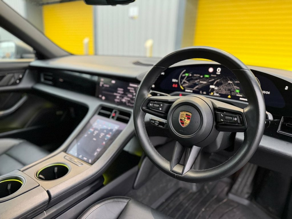 This 2021 Porsche Taycan Performance Plus offers an exceptional electric driving experience with its impressive range and rapid charging capabilities. As an electric vehicle, it boasts a substantial 93 kWh battery, providing a maximum range of 301 miles when new. Recharging at home using a 7kW charger will take approximately 13 hours and 30 minutes, while rapid public charging can replenish the battery from empty to 80% in just 25 minutes. This Taycan also features a Fixed Glass Panoramic Roof, LED Headlights for clear visibility, and Heated Front Seats for added comfort. Connectivity is enhanced with Porsche Connect and Apple CarPlay going through surround BOSE speaker system, and parking is made easier with ParkAssist, which includes front and rear sensors providing visual and audible warnings. The Taycan Performance Plus stands out with its advanced technology and performance. The combination of its substantial battery capacity and efficient electric powertrain delivers a driving experience that surpasses many other vehicles in its class. The inclusion of features like the panoramic glass roof creates an airy and open cabin atmosphere, while the LED headlights ensure optimal illumination. Furthermore, the integrated Porsche Connect system with Apple CarPlay allows for seamless access to your digital life, and the comprehensive ParkAssist system offers peace of mind when manoeuvring in tight spaces. BOSE Surround Sound System with 14 Speak, 20in Alloy Wheels - Taycan Turbo Aero, Fixed Glass Panoramic Roof, 11kW AC On-Board Charger, 12v Electrical Socket in Rear Luggage Co, 12v Electrical Socket in the Centre Cons, 16.8in Curved Display, 19in Alloy Wheels - Taycan Aero, 2 USB-C Charge Ports in the Rear, 2 USB-C Connectivity and Charge Ports in, 3-Point Automatic Seat Belts with Pre-Te, 4-Point LED Daytime Running Lights, 50kW DC On-Board Charger for use of Publ, ABS - Anti-lock Brake System, Accent Package in Black, Active Bonnet System, Active Carbon Fine Dust Filter, Advanced 2-Zone Climate Control, Aluminium Double-Wishbone Front Axle, Aluminium Multi-Link Rear Axle, Auto-Deploying Do