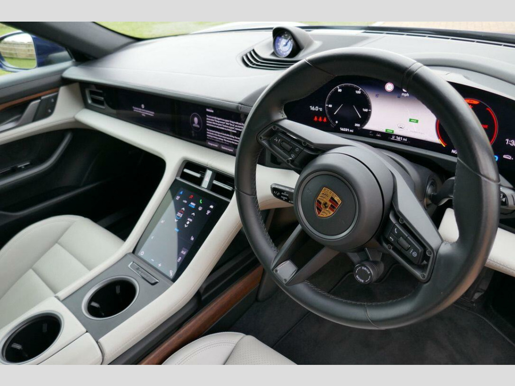 1 owner Taycan Sport Turismo with a very low mileage and a fantastic specification. In the region of £20k's of factory options including Crayon/Black Smooth Leather Interior, Air Suspension PASM, Panoramic Roof, Performance Battery Plus, Sports Design Pack in High Gloss Black, Bose Surround Sound, Sport Chrono Pack, 4 + 1 Seats, plus much more, full Porsche service history. VAT Qualifying, 6 months warranty included se surround sound system with 14 speakers including subwoofer and a total output of 710 watts, passenger display, parkassist including reversing camera, 20in alloy wheels - sport aero, door handles painted in black - high-gloss, electrically folding exterior mirrors, fixed glass panoramic roof, powered charging port cover, privacy glass, sportdesign front apron, sportdesign package painted in black - high-gloss, sportdesign side skirts, windscreen with grey top-tint, 4+1 seats system, accent package in dark silver, ambient lighting, dark paldao interior package, seat heating - front and rear, two-tone leather interior - smooth-finish leather - black and crayon, porsche electric sport sound, adaptive air suspension including porsche active suspension management - pasm, sport chrono package, led headlights including porsche dynamic light system - pdls plus, 12v electrical socket in rear luggage compartment, 12v electrical socket in the centre console storage compartment, 16.8in curved display, 2 usb-c charge ports in the rear, 2 usb-c connectivity and charge ports in the centre console storage compartment, 3-point automatic seat belts with pre-tensioners - front and outer rear seats and front force limiter, 4-point led daytime running lights, abs - anti-lock brake system, accent package in black, active bonnet system, active carbon fine dust filter, advanced 2-zone climate control, aluminium double-wishbone front axle, aluminium multi-link rear axle, auto-deploying door handles, automatic headlight activation including welcome home lighting, automatic hold function, automatic tailgate, brake calipers - black, collision and brake assist, comfort seats - front with 8-way electrical adjustment of seat height - seat and backrest angle and fore-aft position, cruise control including adaptive speed limiter, curtain airbags along entire roof frame and side windows from the a-pillar to the c-pillar, dc charging at public charging stations with voltage of 800v, digital radio, door sill guards - black, driver personalisation, electric parking brake, electric windows - front and rear, engine bonnet - rear tailgate - doors - side panels - roof and front wings in aluminium, engine immobiliser with remote central locking and alarm system with radar-based interior surveillance, exterior mirror lower trims including mirror base in black, floor mats, folding luggage compartment cover, four-piston aluminium monobloc fixed brake calipers at rear, front centre console armrest with integrated storage compartment, front side airbags, full size airbags for driver and front passenger, full surface aerodynamic underbody panelling, fully galvanised steel-aluminium hybrid lightweight bodyshell, heat pump, isofix mounting points for child seats on outer rear seats, integrated front headrests, integrated porsche 4d chassis control, keyless drive, knee airbags for driver and front passenger, led headlights, lane keeping assist including traffic sign recognition, light strip, luggage compartments at front and rear, multi-collision brake, multi-function sports steering wheel in leather, parking pre-climatisation, porsche active aerodynamics with active air intake flaps and adaptive rear spoiler, porsche communication management pcm includes navigation module mobile phone preparation audio interface and voice control system, porsche connect with apple carplay, porsche intelligent range manager, porsche logo in glass look integrated into rear light strip, porsche recuperation management - prm, porsche stability management - psm including abs with extended brake functions, porsche vehicle tracking system plus, power steering, range mode for the activation of efficiency-orientated settings, rear seats with 2 seats in single-seat look - fold out armrest and split folding backrests 60-40, rollover detection for activation of curtain airbags and seat belt pretensioners, roof spoiler in body colour, side impact protection integrated into doors, side window trims - black, six-piston aluminium monobloc fixed brake calipers at front, sport mode for the activation of dynamic performance settings including launch control, storage package, thermally insulated glass all round, third brake light, two integrated cupholders front and rear, tyre pressure monitoring - tpm, upper valance with vertical air intakes - air curtain, wheel centres with monochrome porsche crest, windscreen wiper system including rain sensor and washer jets, wireless phone charging in centre console storage compartment