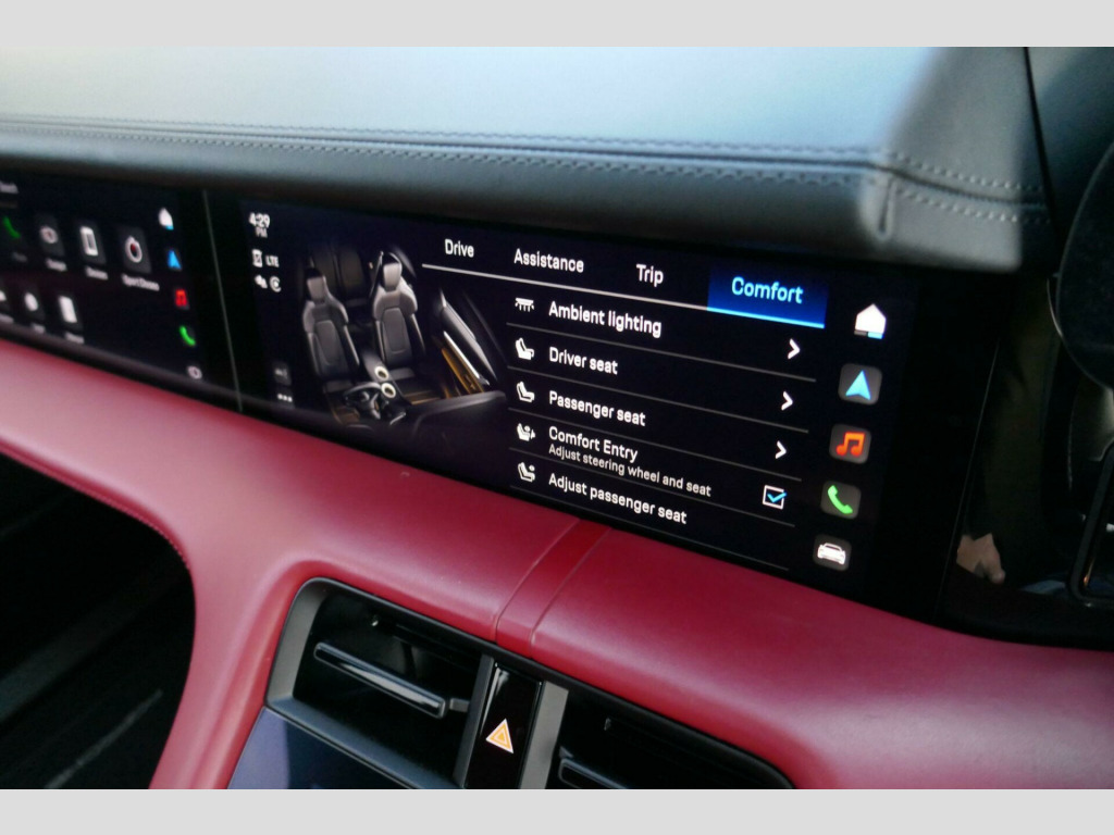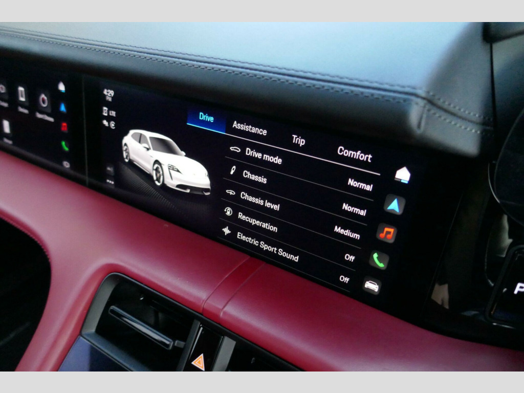 Simply amazing and unique specification Taycan Sport Turismo with over 30k of upgrades, finished in Jet Black with Bordeaux Red/Black Smooth Leather Interior, its huge list of other factory options includes: Adaptive Air Suspension including Porsche Active Suspension Management (PASM), Comfort Access, BOSE Surround Sound System, 14-way Comfort front seats with memory package, Side window trims in Black (high-gloss), Tyre sealing compound and electric air compressor, PORSCHE' Logo on centre console storage compartment lid, Roof rails in Black Aluminium, Seat ventilation (front), Porsche Crest embossed on headrests (front and outer rear seats), Porsche InnoDrive including Adaptive Cruise Control, Remote ParkAssist with Lane Change Assist, SportDesign Package painted in Black (high-gloss), LED main headlights including Porsche Dynamic Light System Plus (PDLS Plus), Ambient lighting, Acoustically insulated laminated privacy glass, Rear-Axle Steering including Power Steering Plus, Exterior mirror lower trims painted in exterior colour, including mirror base painted in Black (high-gloss), ParkAssist including Surround View, Head-Up Display, Sport Chrono Package incl. mode switch, 4+1 Seats, Electric folding exterior mirrors, Model designation painted in Black (high-gloss), Passenger Display, Panoramic roof, fixed, Porsche Electric Sport Sound, 'PORSCHE' logo LED door courtesy lights, 22kW on-board AC charger, Electric charging cover, Performance Battery Plus, VAT qualifying. v electrical socket in rear luggage compartment, 12v electrical socket in the centre console storage compartment, 16.8in curved display, 2 usb-c charge ports in the rear, 2 usb-c connectivity and charge ports in the centre console storage compartment, 3-point automatic seat belts with pre-tensioners - front and outer rear seats and front force limiter, 4-point led daytime running lights, abs - anti-lock brake system, accent package in black, active bonnet system, active carbon fine dust filter, advanced 2-zone climate control, aluminium double-wishbone front axle, aluminium multi-link rear axle, auto-deploying door handles, automatic headlight activation including welcome home lighting, automatic hold function, automatic tailgate, brake calipers - black, centre console with direct touch control, collision and brake assist, curtain airbags along entire roof frame and side windows from the a-pillar to the c-pillar, dc charging at public charging stations with voltage of 800v, digital radio, door sill guards - black, driver personalisation, electric parking brake, electric windows - front and rear, emergency tyre sealant and pump kit, engine immobiliser with remote central locking and alarm system with radar-based interior surveillance, four-piston aluminium monobloc fixed brake calipers at rear, front centre console armrest with integrated storage compartment, front side airbags, full size airbags for driver and front passenger, full surface aerodynamic underbody panelling, fully galvanised steel-aluminium hybrid lightweight bodyshell, heat pump, integrated front headrests, integrated porsche 4d chassis control, keyless drive, knee airbags for driver and front passenger, lane keeping assist including traffic sign recognition, light strip, lower valance in black, luggage compartments at front and rear, multi-function sports steering wheel in leather, parkassist - front and rear with visual and audible warning, parking pre-climatisation, performance battery plus, permanent magnet synchronous - psm - motor on the rear axle, porsche active aerodynamics with active air intake flaps, porsche communication management pcm includes navigation module mobile phone preparation audio interface and voice control system, porsche connect with apple carplay, porsche intelligent range manager, porsche logo in glass look integrated into rear light strip, porsche recuperation management - prm, porsche stability management - psm including abs with extended brake functions, porsche vehicle tracking system plus, rear diffuser in black, seats - heated front, side impact protection integrated into doors, single-speed transmission on the front axle, six-piston aluminium monobloc fixed brake calipers at front, sport mode for the activation of dynamic performance settings including launch control, storage package, third brake light, two integrated cupholders front and rear, tyre pressure monitoring - tpm, upper valance with vertical air intakes - air curtain, wireless phone charging in centre console storage compartment, bose surround sound system with 14 speakers including subwoofer and a total output of 710 watts, head up display, parkassist including surround view, porsche innodrive including adaptive cruise assist, remote parkassist, fixed glass panoramic roof, roof rails - black aluminium, thermally and noise insulated glass including privacy glass, powered charging port cover, 4+1 seats system, comfort seats - front 14-way electric with memory package, seat ventilation - front, led headlights including porsche dynamic light system - pdls plus, adaptive air suspension including porsche active suspension management - pasm, rear axle steering including power steering plus, sport chrono package, electrically folding exterior mirrors, exterior mirror lower trims painted and mirror base painted in black high-gloss, comfort access, porsche crest on head restraints, model logo on centre console storage compartment lid, porsche logo led door courtesy lights, side window trims - black high gloss, sportdesign package painted in black - high-gloss, 22kw on-board ac charger