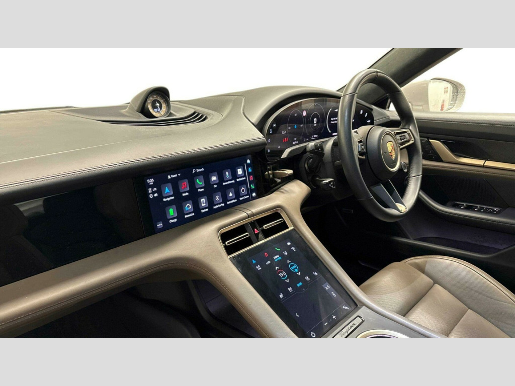 Crayon Taycan Turbo with Basalt Black/Meranti Brown Olea Club Leather Interior. Other factory options include: SportDesign Package, Comfort Access, Side window trims in Black (high-gloss), HomeLink, 18-way Adaptive Sports Seats with memory package, Carbon interior package, Seat ventilation (front), Side airbags in the rear, Storage Package, Ambient lighting, Acoustically insulated laminated privacy glass, Exterior Mirrors painted in Exterior Colour, Preparation for Porsche Rear Seat Entertainment, ParkAssist including Surround View, Head-Up Display, Sport Chrono Package incl. mode switch, 4+1 Seats, Wheels painted in Exterior Colour, Electric folding exterior mirrors, Heated GT sports steering wheel in leather, 21-Inch Mission E Design Wheels, Panoramic roof, fixed, Porsche Electric Sport Sound, 'PORSCHE' logo LED door courtesy lights, 150kW DC on-board booster, Lane Change Assist, Deletion of Model Designation, was £150k new! Arriving soon, VAT qualifying. o-tone olea club leather interior - basalt black-meranti brown, 18-way adaptive sports seats - front with memory package, seat ventilation - front, sportdesign package, interior package - carbon, head up display, 21in alloy wheels - mission e design, lane change assist, parkassist including surround view, preparation for porsche rear seat entertainment, electrically folding exterior mirrors, exterior mirrors painted in exterior colour, sport chrono package, fixed glass panoramic roof, porsche logo led door courtesy lights, side window trims - black high gloss, thermally and noise insulated glass including privacy glass, wheels painted in high gloss black, 4+1 seats system, accent package in neodyme, ambient lighting, homelink - garage door opener, storage package, comfort access, side airbags in rear compartment, 150kw on-board dc-dc converter, 11kw ac on-board charger, 12v electrical socket in rear luggage compartment, 12v electrical socket in the centre console storage compartment, 16.8in curved display, 2 usb-c charge ports in the rear, 2 usb-c connectivity and charge ports in the centre console storage compartment, 3-point automatic seat belts with pre-tensioners - front and outer rear seats and front force limiter, abs - anti-lock brake system, active bonnet system, active carbon fine dust filter, adaptive air suspension including porsche active suspension management - pasm, advanced 2-zone climate control, aluminium double-wishbone front axle, aluminium multi-link rear axle, auto-deploying door handles, automatic headlight activation including welcome home lighting, automatic hold function, automatically dimming exterior and interior mirrors, bose surround sound system with 14 speakers including subwoofer and a total output of 710 watts, brake calipers painted in white finish, brake pad wear indicator, charge port on driver and front passenger side, collision and brake assist, cruise control including adaptive speed limiter, curtain airbags along entire roof frame and side windows from the a-pillar to the c-pillar, dc charging at public charging stations with voltage of 800v, digital radio, door sill guards in brushed aluminium, driver personalisation, electric parking brake, engine bonnet - rear tailgate - doors - side panels - roof and front wings in aluminium, engine immobiliser with remote central locking and alarm system with radar-based interior surveillance, floor mats, four-piston aluminium monobloc fixed brake calipers at rear, front centre console armrest with integrated storage compartment, front side airbags, full size airbags for driver and front passenger, full surface aerodynamic underbody panelling, fully galvanised steel-aluminium hybrid lightweight bodyshell, heat pump, integrated front headrests, integrated porsche 4d chassis control, keyless drive, knee airbags for driver and front passenger, led matrix headlights including porsche dynamic light system plus, lane keeping assist including traffic sign recognition, lower valance with inlays painted in exterior colour, luggage compartments at front and rear, multi-collision brake, multi-function sports steering wheel in leather, pscb - porsche surface coated brake, ptv plus - porsche torque vectoring plus, parking pre-climatisation, pedal pads edges in stainless steel, performance battery plus, porsche active aerodynamics with active air intake flaps and adaptive rear spoiler, porsche communication management pcm includes navigation module mobile phone preparation audio interface and voice control system, porsche connect with apple carplay, porsche intelligent range manager, porsche logo in glass look integrated into rear light strip, porsche recuperation management - prm, porsche stability management - psm including abs with extended brake functions, porsche vehicle tracking system plus, power boot lid, range mode for the activation of efficiency-orientated settings, rear diffuser in louvered design with inlay painted in exterior colour, roof lining in race-tex, seat heating - front and rear, side impact protection integrated into doors, sideskirts in black with inlays painted in exterior colour, six-piston aluminium monobloc fixed brake calipers at front, sport mode for the activation of dynamic performance settings including launch control, storage compartment, taycan badge on the centre console, thermally insulated glass all round, third brake light, turbo logo on the front and rear headrests, two integrated cupholders front and rear, tyre pressure monitoring - tpm, upper valance with vertical air intakes - air curtain, wheel centres with monochrome porsche crest, wireless phone charging in centre console storage compartment
