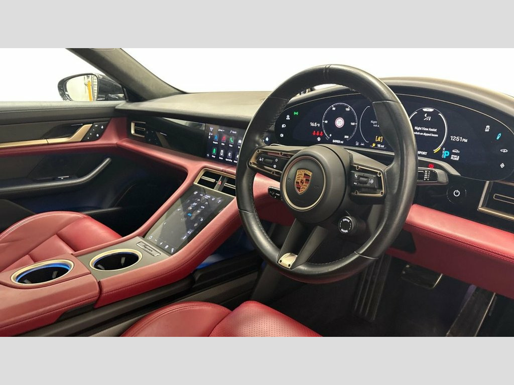 This Taycan Turbo S is a 1 owner car with full Service history at Porsche. This car is VAT QUALIFYING. Looks great in black exterior with two red and black leather interior. Great options which include Panoramic roof, Carbon SportDesign Package, Burmester® 3D High-End Surround Sound System, Porsche InnoDrive including Adaptive Cruise Control, Privacy glass, Ambient lighting, Night View Assist, Porsche Dynamic Chassis Control Sport (PDCC Sport), Head-Up Display, 4+1 Seats, Electric folding exterior mirrors, Heated GT sports steering wheel in leather, Windscreen with grey top-tint, 150kW DC on-board booster, Accent Package Neodyme, 21-inch RS Spyder Design wheels, Trim B-Pillars Race-Tex, Panoramic Roof with Variable Light Control, Climate, SatNav, Cruise Control, CD Player, Alloys, Leather, Park Assist, Aircon, Heated Seats. This car is in beautiful condition both inside and out and must be seen to be appreciated. Speak to our sales team Directly or WhatsApp Message on 07526717741 for any enquiries or to discuss part exchange valuations. Xclusive Xports are a used car dealership based in Bayford Hertfordshire, SG13 8PZ. Specialising in UK sales as well as export of vehicles, upon request. Established since 2008, with a wide range of used vehicles to suit all budgets and lifestyles, we are sure to have the right car for you. VIEWINGS ONLY BY APPOINTMENT 7 DAYS A WEEK. As an APPROVED AA CAR DEALERSHIP all vehicles are HPI CHECKED & PROVIDED WITH A 12 MONTHS FREE AA BREA Two-Tone Leather Interior - Smooth-Finis, Burmester High-End 3D Surround Sound Sys, Porsche Dynamic Chassis Control Sport - , Porsche InnoDrive including Adaptive Cru, ParkAssist Including Surround View, Head Up Display, Night View Assist, Ambient Lighting, GT Sport Steering Wheel in Leather - Hea, 4+1 Seats System, Panoramic Roof with Variable Light Contr, SportDesign Package - Carbon, 10-Piston Aluminium Monobloc Fixed Calip, 11kW AC On-Board Charger, 12v Electrical Socket in Rear Luggage Co, 12v Electrical Socket in the Centre Cons, 16.8in Curved Display, 18-Way Adaptive Sports Seats - Front wit, 2 USB-C Charge Ports in the Rear, 2 USB-C Connectivity and Charge Ports in, 21in Alloy Wheels