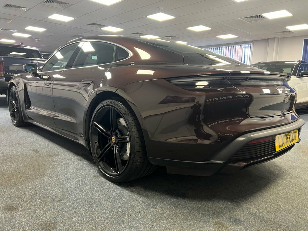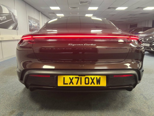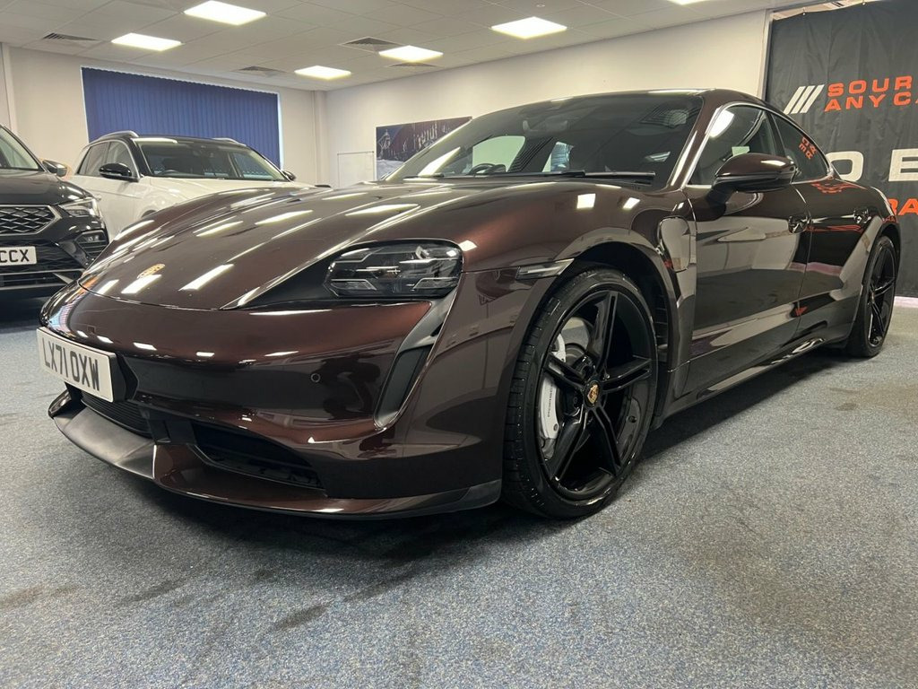This Beautiful Porsche Taycan turbo comes Finished in mahogany metallic and with only 1 owner and full dealer service history including 4 new Pirelli p-zero tyres. We are also including a 12 Month Warranty with Breakdown cover, It has undergone a professional valet inside and out along with a full mechanical inspection to give you the added reassurance you will be buying a reliable car from a trusted retailer. This vehicle also comes with Sat nav, Passenger Display, Heated electric leather memory seats, Heated rear seats, Pan roof, Bose sound system including USB/DAB Digital Radio, Apple Car Play and Android Auto, wireless phone charger, Digital cockpit, Heated GT sports steering wheel in leather with mounted controls, Bluetooth with Bluetooth audio, Voice command, Air con, Quad zone climate control, Porsche drive select, Cruise control with lane assist and front assist, Park assist including Front and rear parking sensors with reverse camera, Auto lights and wipers, LED matrix Exterior lighting, Electric parking brake with auto hold, Electric boot, Heated electric door mirrors with auto fold, Porsche Electric Sport Sound, 21-Inch Mission E Design Wheels painted in high-gloss black , 2 Keys. 11kW AC On-Board Charger, 12v Electrical Socket in Rear Luggage Co, 12v Electrical Socket in the Centre Cons, 16.8in Curved Display, 18-Way Adaptive Sports Seats - Front wit, 2 USB-C Charge Ports in the Rear, 2 USB-C Connectivity and Charge Ports in, 20in Alloy Wheels - Taycan Turbo Aero, 21in Alloy Wheels - Mission E Design, 3-Point Automatic Seat Belts with Pre-Te, 4-Point LED Daytime Running Lights, 50kW DC On-Board Charger for use of Publ, ABS - Anti-lock Brake System, Accent Package in Black, Active Bonnet System, Active Carbon Fine Dust Filter, Adaptive Air Suspension including Porsch, Advanced 2-Zone Climate Control, Advanced 4-Zone Climate Control, Aluminium Double-Wishbone Front Axl