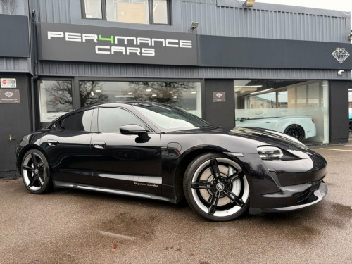 PER4MANCE CARS ARE EXCITED TO OFFER THIS UNBELIEVABLE PORSCHE TAYCAN PERFORMANCE PLUS TURBO SALOON (680PS) FINISHED IN JET BLACK METALLIC WITH LIMESTONE BEIGE SPORTS SEATS, PORSCHE COMMUNICATION MANAGEMENT SYSTEM WITH SATELLITE NAVIGATION, APPLE CAR PLAY, DAB AND BLUETOOTH, BOSE SURROUND SOUND, ADAPTIVE CRUISE CONTROL, TYRE PRESSURE MONITOR, FRONT AND REAR PARK ASSIST WITH VIRTUAL CAMERA, 20" TAYCAN TURBO AERO WHEELS, SPORT MODE FOR DYNAMIC SELECT AND LAUNCH CONTROL, WHITE BRAKE CALIPERS, PORSCHE ACTIVE AERODYNAMICS WITH ADAPTIVE REAR SPOILER, PANORAMIC GLASS ROOF, LED MATRIX HEADLIGHTS, AUTOMATIC HEADLIGHT ACTIVATION, DUAL ZONE CLIMATE CONTROL, HEATED FRONT & REAR SEATS, KEYLESS DRIVE, RAIN SENSOR WIPERS, PORSCHE ACTIVE SUSPENSION MANAGEMENT, ISOFIX ANCHOR POINTS, LANE KEEP ASSIST, PORSCHE STABILITY MANAGEMENT AND MUCH MIORE... CAR MAY NOT BE ON SITE PLS CALL FOR AN APPOINTMENT! Full dealer facilities available, Finance available, please apply via our website or call for a quote. We have a team of experienced buyers who hand pick our cars from all parts of the UK so you can buy with confidence all vehicles are HPI Clear and prepared to the highest standard. We believe in providing our customers with a personal and first class level of service,Full dealer facilities available, Part exchanges welcomed. CONTACT OUR EXPERIENCED SALES TEAM ON 0333 988 7777 OR EMAIL [email protected]. 10-Piston Aluminium Monobloc Fixed Calip, 11kW AC On-Board Charger, 12v Electrical Socket in Rear Luggage Co, 12v Electrical Socket in the Centre Cons, 16.8in Curved Display, 2 USB-C Charge Ports in the Rear, 2 USB-C Connectivity and Charge Ports in, 20in Alloy Wheels - Taycan Turbo Aero, 3-Point Automatic Seat Belts with Pre-Te, 4-Point LED Daytime Running Lights, 50kW DC On-Board Charger for use of Publ, ABS - Anti-lock Brake System, Accent Package in Black, Active Bonnet System, Active Carbon Fine Dust Filter, Adaptive Air Suspension including Porsch, Advanced 2-Zone Climate Control, Aluminium Double-Wishbone Front Axle, Aluminium Multi-Link Rear Axle, Auto-Deploying Door Handles, Automat
