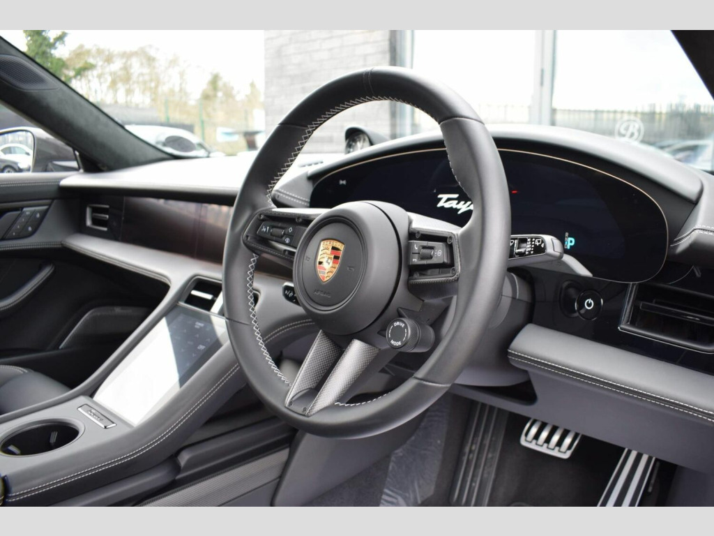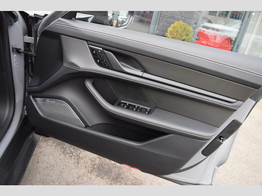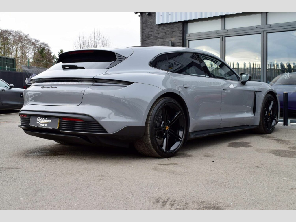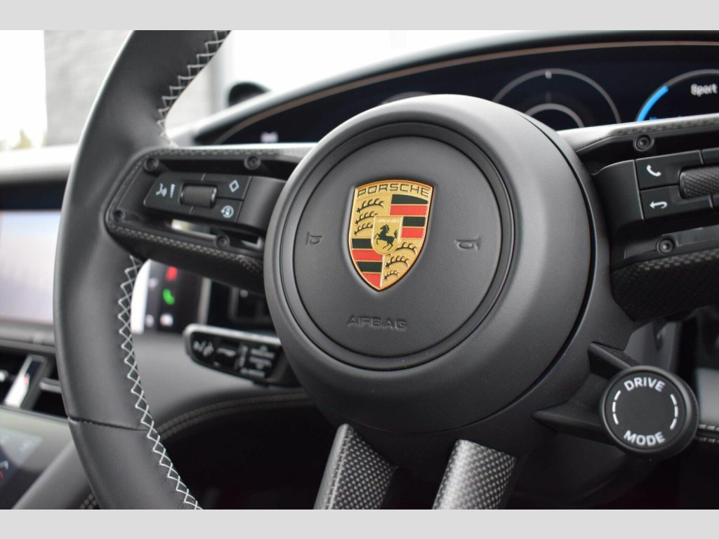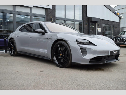 December 2022 72 Porsche Taycan Turbo Performance Plus 93.4kWh Sport Turismo Auto 4WD finished in a one-off Porsche Paint to Sample Audi Nardo Grey with black interior with a paint finish cost of over £6000 alone. 1650 miles covered by just one owner and supplied with Porsche warranty in place until December 2025. Presented in flawless showroom condition, this Taycan is boasting the most incredible spec we have seen with an enormous options list totalling £44,000 and making a total list price of £162832. This extensive list consists of: Porsche Logo LED Door Courtesy Lights, 21in Alloy Wheels - Mission E Design, Thermally and Noise Insulated Glass including Privacy Glass, 18-Way Adaptive Sports Seats - Front with Memory Package, Ambient Lighting, Memory Package, Burmester High-End 3D Surround Sound System, Carbon Interior Package, Decorative Contrasting Stitching, Door Sill Guards in Carbon - Illuminated, Powered Charging Port Cover, Electrically Folding Exterior Mirrors, Exterior Mirror Upper Trims in Carbon, Fire Extinguisher, Head Up Display, Interior Trim Package with Decorative Stitching in Contrasting Colour, Ioniser, Smooth Finish Leather - Black, Rear Light Strip with PORSCHE logo in Black, Model Designation on Doors - Silver, Model Designation Painted - Black High-Gloss, Fixed Glass Panoramic Roof, ParkAssist Including Surround View, Passenger Display, Aluminium Pedals, PCCB - Porsche Ceramic Composite Brakes - Calipers in Black High Gloss, Porsche Crest on Centre Console Storage Compartment Lid, Porsche Logo on Centre Console Storage Compartment Lid, Porsche Dynamic Chassis Control Sport - PDCC Sport, Porsche Electric Sport Sound, Rear Axle Steering including Power Steering Plus, Seat Belts - Crayon, Side Window Trims - Black High Gloss, Sport Chrono Package with Porsche Design Subsecond Clock, SportDesign Package - Carbon, Heated Steering Wheel with Carbon Trim - For Leather Interior with Sport Chrono, Wheels Painted in High Gloss Black and Exclusive Matrix LED Headlights in Black with Porsche Dynamic Light System Plus.