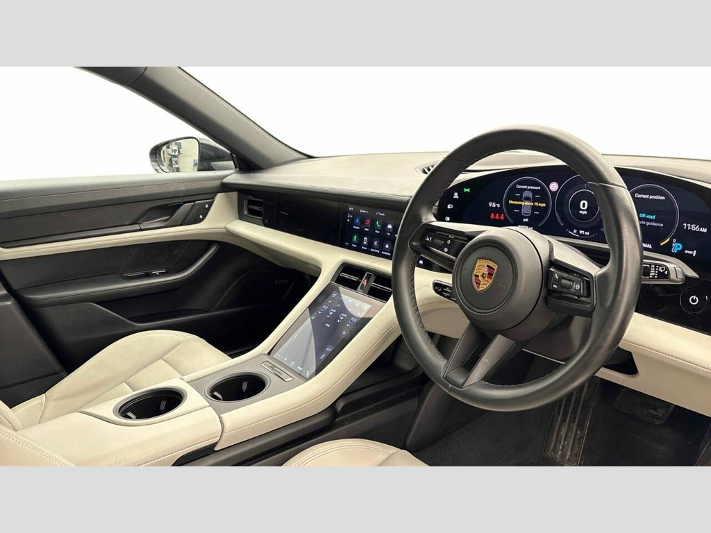 1 OWNER VAT QUALIFYING PERFORMANCE PLUS - MEGA VALUE! This 2022 Porsche Taycan Performance Plus 4S is a superb example, having had only one owner since new. As a fully electric vehicle, it offers a compelling blend of performance and sustainability. This four wheel drive model boasts a substantial 93 kWh battery, providing a maximum range of up to 309 miles when new. Charging is convenient, with a full charge at home taking approximately 13 hours and 30 minutes using a 7kW charger, while rapid public charging can replenish the battery from empty to 80% in as little as 24 minutes. Experience exceptional sound with the BOSE Surround Sound System, featuring 14 speakers and a subwoofer delivering a powerful 710 Watts. The Taycan also includes a fixed glass panoramic roof for an airy cabin feel, a heated steering wheel for added comfort, and a powered charging port cover for seamless operation. The model designation is finished in a striking black high gloss. This Taycan Performance Plus 4S accelerates from 0 to 60mph in a swift 4.0 seconds, demonstrating its dynamic capabilities and setting it apart from other vehicles in its class. 11kW AC On-Board Charger, 12v Electrical Socket in Rear Luggage Co, 12v Electrical Socket in the Centre Cons, 150kW On-board DC-DC Converter, 16.8in Curved Display, 19in Alloy Wheels - Taycan S Aero, 2 USB-C Charge Ports in the Rear, 2 USB-C Connectivity and Charge Ports in, 20in Alloy Wheels - Taycan Turbo Aero, 3-Point Automatic Seat Belts with Pre-Te, 4+1 Seats System, 4-Point LED Daytime Running Lights, 50kW DC On-Board Charger for use of Publ, ABS - Anti-lock Brake System, Accent Package in Black, Active Bonnet System, Active Carbon Fine Dust Filter, Adaptive Air Suspension including Porsch, Advanced 2-Zone Climate Control, Aluminium Double-Wishbone Front Axle, Aluminium Multi-Link Rear