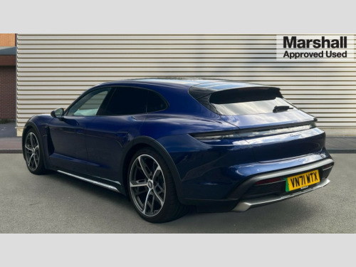 Porsche Taycan 350kW 4 93kWh 5dr Auto 16.8 inch curved touchscreen display, Brake pad wear indicator, Centre console with direct touch control includes climate settings, opening and closing charge port doors, battery level indicator, handwriting panel, Driver personalisation for ergonomic, comfort, infotainment and lighting functions as well as assistance and display systems, E-call, Lane keeping assist including traffic sign recognition, Porsche Communication Management (PCM) including online navigation module, mobile phone preparation, audio interfaces and voice control system, Porsche connect with apple carplay, Porsche recuperation management, Power tailgate, Range mode for activation efficiency orientated settings, Tailgate button, Wireless phone charging in centre console storage compartment, 11 kW AC onboard charger, 2 Speed automatic transmission, Adaptive air suspension including Porsche Active Suspension Management (PASM), Adaptive damping system, Aluminium double wishbone front axle, Aluminium multi link rear axle, Charge port on driver (AC Type 2) and front passenger sides AC/DC Type 2 CCS Combo, DC charging at public charging with 800V, Electric drive transmission, Performance battery plus with 93.4 kWh capacity, Porsche permanent magnet synchronous motors on the front and rear axles, Porsche Stability Management (PSM), vehicle stability system with ABS and extended brake functions, Single speed transmission on the front axle, 2-speed transmission on the rear axle, Sport mode for activation dynamic performance settings including launch control, Supply cable for domestic electrical socket, Supply cable for industrial electrical outlet (230V, 32A), 2 USB-C charge ports in rear, 2 USB-C connectivity and charge ports in the centre console storage compartment, Digital radio, 4-point LED daytime running lights, Additional ground clearance +20mm, Air curtain upper valance with vertical air intakes, Aluminium bonnet with tailgate door, side sections and front wings, Aluminium roof contoured design with dynamic recess profile, Auto deploying door handles, Automatic headlight activation including welcome home lighting, Bumper system with high strength cross members and two deformation elements + Two threaded fixture point for towing eye contained in onboard tool kit, Cross Turismo style lower valance, side skirts and rear diffuser with inlays in brilliant silver finish, Electrically adjustable and heated exterior mirrors with aspherical on driver's side, Front and rear electric windows, Full surface aerodynamic underbody panelling, Fully galvanised steel/aluminium hybrid lightweight bodyshell, Heated rear window with automatic switch off, Integrated side impact protection in doors, Porsche active aerodynamics (PAA) with active air intake flaps, Roof spoiler painted in gloss black, Silver model designation on tailgate, Third brake light, Windscreen wiper system including rain sensor and washer jets, 12V electrical socket in centre console storage compartment, 12V electrical socket in rear luggage compartment, 2 separate seats in 2nd row, 60:40 rear seats with 2 seats in single seat look with fold out center armrest and split folding backrests, Active carbon fine dust filter keeps pollen and odours, Bag hooks in rear luggage compartment, Clothes hooks on B-pillars on driver's and front passenger's sides, Driver and front passenger illuminated vanity mirrors, Folding luggage compartment cover, Front and rear luggage compartments, Front centre console armrest with integrated storage compartment, Heat pump, Integrated front headrests, ISOFIX child seats mounting system on outer rear seats, LED interior light with switchoff delay, front and rear reading spot light, footwell illumination, luggage compartment lights, glove compartment light, Manual height adjust for driver and front passenger seat belt, Net and straps in luggage compartment, Parking pre-climatisation including pre-conditioning of battery, Porsche intelligent range manager, Rear head restraints, Single front passenger seat, Storage compartments in glove comaprtment, front centre console, outer rear seats, front and rear doors, sides of rear luggage compartment recess, Taycan badge on center console, Two integrated cup holders in front and rear, Storage package - Taycan, 3 point automatic seatbelts with front and outer rear seats pretensioners and front force limiter, 4 piston aluminium monobloc fixed brake calipers at rear, 6 piston aluminium monobloc fixed caliper brakes at front, Active bonnet, Auto hold function, Brake discs internally vented with 360mm diameter at front and 358mm diameter at rear, Collision and brake assist, Curtain airbags along entire roof frame and side windows from A pillar to the C pillar, Driver and front passenger knee airbag, Electric parking brake, Front side airbags, Full size driver and front passenger airbags, Gravel Mode for activation of settings for enhanced rough road and loose surface capability, Manual rear child locks, Multi collision brake assist, PTM (Porsche Traction Management), Rollover detection for activation of curtain airbags and seat belt pretensioners, Seatbelt warning system for driver/front passenger and rear seat system, Tyre pressure monitoring system, Engine immobiliser with remote central locking and alarm system with radar based interior surveillance, Keyless Start, Porsche vehicle tracking system (PVTS Plus)