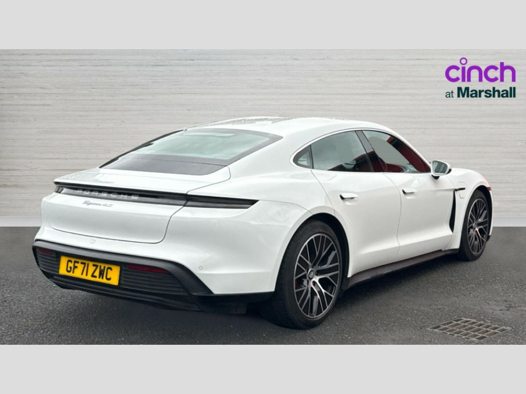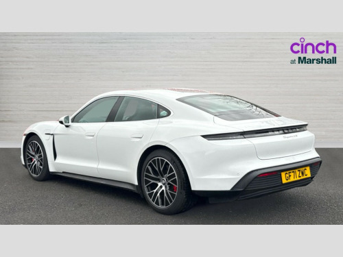 Porsche Taycan 420kW 4S 93kWh 4dr Auto 16.8 inch curved touchscreen display, Brake pad wear indicator, Centre console with direct touch control includes climate settings, opening and closing charge port doors, battery level indicator, handwriting panel, Driver personalisation for ergonomic, comfort, infotainment and lighting functions as well as assistance and display systems, E-call, Lane keeping assist including traffic sign recognition, Porsche Communication Management (PCM) including online navigation module, mobile phone preparation, audio interfaces and voice control system, Porsche connect with apple carplay, Porsche recuperation management, Power boot lid, Range mode for activation efficiency orientated settings, Tailgate button, Wireless phone charging in centre console storage compartment, 11 kW AC onboard charger, 2 Speed automatic transmission, Adaptive air suspension including Porsche Active Suspension Management (PASM), Adaptive damping system, Aluminium double wishbone front axle, Aluminium multi link rear axle, Charge port on driver (AC Type 2) and front passenger sides AC/DC Type 2 CCS Combo, DC charging at public charging with 800V, Electric drive transmission, Performance battery plus with 93.4 kWh capacity, Porsche permanent magnet synchronous motors on the front and rear axles, Porsche Stability Management (PSM), vehicle stability system with ABS and extended brake functions, Single speed transmission on the front axle, 2-speed transmission on the rear axle, Sport mode for activation dynamic performance settings including launch control, Supply cable for domestic electrical socket, Supply cable for industrial electrical outlet (230V, 32A), 2 USB-C charge ports in rear, 2 USB-C connectivity and charge ports in the centre console storage compartment, Digital radio, 4-point LED daytime running lights, Air curtain upper valance with vertical air intakes, Aluminium bonnet with tailgate door, side sections and front wings, Aluminium roof contoured design with dynamic recess profile, Auto deploying door handles, Automatic headlight activation including welcome home lighting, Bumper system with high strength cross members and two deformation elements + Two threaded fixture point for towing eye contained in onboard tool kit, Electrically adjustable and heated exterior mirrors with aspherical on driver's side, Front and rear electric windows, Full surface aerodynamic underbody panelling, Fully galvanised steel/aluminium hybrid lightweight bodyshell, Heated rear window with automatic switch off, Integrated side impact protection in doors, Lower valance in black, Porsche active aerodynamics (PAA) with active air intake flaps and adaptive rear spoiler, Rear boot, Silver model designation on tailgate, Third brake light, Windscreen wiper system including rain sensor and washer jets, 12V electrical socket in centre console storage compartment, 12V electrical socket in rear luggage compartment, 2 separate seats in 2nd row, 60:40 rear seats with 2 seats in single seat look with fold out center armrest and split folding backrests, Active carbon fine dust filter keeps pollen and odours, Clothes hooks on B-pillars on driver's and front passenger's sides, Driver and front passenger illuminated vanity mirrors, Front and rear luggage compartments, Front centre console armrest with integrated storage compartment, Heat pump, Integrated front headrests, ISOFIX child seats mounting system on outer rear seats, LED interior light with switchoff delay, front and rear reading spot light, footwell illumination, luggage compartment lights, glove compartment light, Manual height adjust for driver and front passenger seat belt, Parking pre-climatisation including pre-conditioning of battery, Porsche intelligent range manager, Rear head restraints, Single front passenger seat, Storage compartments in glove comaprtment, front centre console, outer rear seats, front and rear doors, sides of rear luggage compartment recess, Taycan badge on center console, Two integrated cup holders in front and rear, 3 point automatic seatbelts with front and outer rear seats pretensioners and front force limiter, 4 piston aluminium monobloc fixed brake calipers at rear, 6 piston aluminium monobloc fixed caliper brakes at front, Active bonnet, Auto hold function, Brake discs internally vented with 360mm diameter at front and 358mm diameter at rear, Collision and brake assist, Curtain airbags along entire roof frame and side windows from A pillar to the C pillar, Driver and front passenger knee airbag, Electric parking brake, Front side airbags, Full size driver and front passenger airbags, Manual rear child locks, Multi collision brake assist, PTM (Porsche Traction Management), Rollover detection for activation of curtain airbags and seat belt pretensioners, Seatbelt warning system for driver/front passenger and rear seat system, Tyre pressure monitoring system, Engine immobiliser with remote central locking and alarm system with radar based interior surveillance, Keyless start, Porsche vehicle tracking system (PVTS Plus)