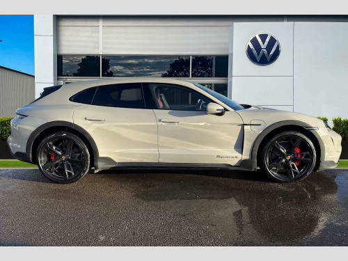 *Range depicts brand new model. Current maximum range may differ in line with battery depreciation. 150kW DC On-Board Booster, 21in Alloy Wheels - Cross Turismo Design, Electrically Folding Exterior Mirrors, Exterior Mirror Lower Trims Painted and Mirror Base Painted in Black High-Gloss, Fixed Glass Panoramic Roof, Model Designation Painted in Black Matt, Model Designation on Doors - Black, Offroad Design Package in Black, Porsche Crest on Centre Console Storage Compartment Lid, Powered Charging Port Cover, Side Window Trims - Black High Gloss, Thermally and Noise Insulated Glass including Privacy Glass, Tyre Sealing Compound and Electric Air Compressor, 18-Way Adaptive Sports Seats - Front with Memory Package, Two-Tone Leather Interior - Smooth-Finish Leather - Black-Bordeaux Red, Comfort Access, Porsche Electric Sport Sound, Public Charging Cable - Mode 3, 11kW AC On-Board Charger, 12v Electrical Socket in Rear Luggage Compartment, 12v Electrical Socket in the Centre Console Storage Compartment, 16.8in Curved Display, 19in Alloy Wheels - Taycan S Aero, 2 USB-C Charge Ports in the Rear, 2 USB-C Connectivity and Charge Ports in the Centre Console Storage Compartment, 3-Point Automatic Seat Belts with Pre-Tensioners - Front and Outer Rear Seats and Front Force Limiter, 4-Point LED Daytime Running Lights, 50kW DC On-Board Charger for use of Public Charging Stations with a voltage of 400V, ABS - Anti-lock Brake System, Accent Package in Black, Active Bonnet System, Active Carbon Fine Dust Filter, Adaptive Air Suspension including Porsche Active Suspension Management - PASM, Advanced 2-Zone Climate Control, Aluminium Double-Wishbone Front Axle, Aluminium Multi-Link Rear Axle, Auto-Deploying Door Handles, Automatic Headlight Activation including Welcome Home Lighting, Automatic Hold Function, Automatic Tailgate, B-Pillar Clothes Hook on Driver and Passengers Side, Brake Calipers - Red, Brake Pad Wear Indicator, Bumpers Comprising High-Strength Cross Members and Two Deformation Elements Each with One Threaded Fixture Point for Towing Eye Contained in On-Board Tool Kit, Cable between Charger and Vehicle - 7.5m, Centre Console with Direct Touch Control, Charge Port on Driver and Front Passenger Side, Collision and Brake Assist, Comfort Seats - Front with 8-way Electrical Adjustment of Seat Height - Seat and Backrest Angle and Fore-aft Position, Cross Turismo Style Lower Valance with Inlays in Brilliant Silver Finish, Cross Turismo Style Rear Diffuser with Inlays in Brilliant Silver Finish, Cross Turismo Style Side Skirts with Inlays in Brilliant Silver Finish, Cruise Control including Adaptive Speed Limiter, Curtain Airbags Along Entire Roof Frame and Side Windows from the A-Pillar to the C-Pillar, DC Charging at Public Charging Stations with Voltage of 800V, Digital Radio, Door Sill Guards in Brushed Aluminium, Driver Personalisation, Electric Parking Brake, Electric Windows - Front and Rear, Electrically Adjustable and Heated Exterior Mirrors - Aspherical on Drivers Side, Engine Bonnet - Rear Tailgate - Doors - Side Panels - Roof and Front Wings in Aluminium, Engine Immobiliser with Remote Central Locking and Alarm System with Radar-Based Interior Surveillance, Exterior Mirror Lower Trims Including Mirror Base in Black, Floor Mats, Folding Luggage Compartment Cover, Four-Piston Aluminium Monobloc Fixed Brake Calipers at Rear, Front Centre Console Armrest with Integrated Storage Compartment, Front Side Airbags, Full Size Airbags for Driver and Front Passenger, Full Surface Aerodynamic Underbody Panelling, Fully Galvanised Steel-Aluminium Hybrid Lightweight Bodyshell, Gravel Mode for Activation of Settings for Enhanced Rough Road and Loose Surface Capability, Heat Pump, Heated Rear Window with Auto-Off Function, ISOFIX Mounting Points for Child Seats on Outer Rear Seats, Illuminated Vanity Mirrors for Driver and Front Passenger, Integrated Front Headrests, Integrated Porsche 4D Chassis Control, Keyless Drive, Knee Airbags for Driver and Front Passenger, LED Headlights including Porsche Dynamic Light System Plus - PDLS Plus, LED Interior Lighting Concept, Lane Keeping Assist including Traffic Sign Recognition, Light Strip, Luggage Compartments at Front and Rear, Manual Adjustment of Seat Belt Height for Driver and Front Passenger Seats, Mobile Charger Plus with 4.5m Vehicle Side Cable, Model Designation on Tailgate in Silver Colour, Multi-Collision Brake, Multi-Function Sports Steering Wheel in Leather, ParkAssist - Front and Rear with Visual and Audible Warning, Parking Pre-Climatisation, Performance Battery Plus, Porsche Active Aerodynamics with Active Air Intake Flaps and Adaptive Rear Spoiler, Porsche Communication Management PCM Includes Navigation Module Mobile Phone Preparation Audio Interface and Voice Control System, Porsche Connect with Apple Carplay, Porsche Intelligent Range Manager, Porsche Logo in Glass Look Integrated into Rear Light Strip, Porsche Recuperation Management - PRM, Porsche Stability Management - PSM Including ABS with Extended Brake Functions, Porsche Vehicle Tracking System Plus, Power Steering, Range Mode for the Activation of Efficiency-Orientated Settings, Rear Seats with 2 Seats in Single-Seat Look - Fold out Armrest and Split Folding Backrests 60-40, Rollover Detection for Activation of Curtain Airbags and Seat Belt Pretensioners, Roof Lining in Fabric, Roof Spoiler in High-Gloss Black, Roof in Aluminium Contoured Design with Dynamic Recess Profile, Seat Belt Warning System for Driver - Front Passenger and Rear Seat System, Seats - Heated Front, Side Impact Protection Integrated into Doors, Side Window Trims - Silver Colour - High-Gloss, Six-Piston Aluminium Monobloc Fixed Brake Calipers at Front, Sound Package Plus, Sport Mode for the Activation of Dynamic Performance Settings Including Launch Control, Storage Compartment, Storage Package, Sun Visors for Driver and Front Passenger, Supply Cable for Domestic Electrical Socket, Supply Cable for Industrial Electri