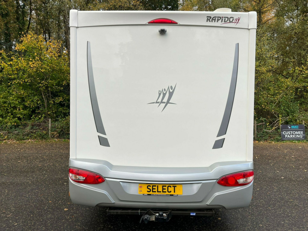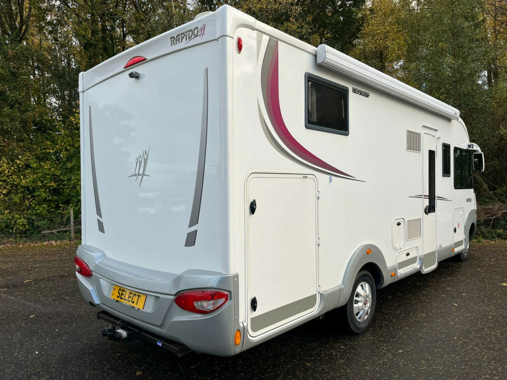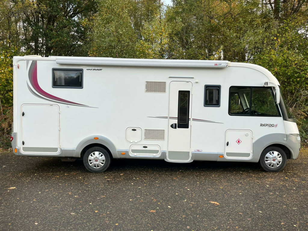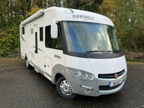 The 2015 Rapido 8090DF Motorhome, a premium A-Class vehicle combining luxury, comfort, and self-sufficiency for the ultimate touring experience. This beautifully maintained motorhome features a spacious and thoughtfully designed interior with high-quality finishes throughout, offering a large lounge area, fully equipped kitchen, generous storage, and a comfortable fixed bed. Built on a reliable Fiat Ducato chassis, the Rapido 8090DF delivers smooth performance and excellent handling, whether you're exploring the countryside or cruising along the motorway.Equipped for complete off-grid freedom, this model includes a powerful 300W solar power system paired with a 110Ah lithium leisure battery, ensuring plenty of energy for extended adventures. The refillable Gaslow system adds convenience and cost savings when topping up LPG anywhere in the UK or Europe. Meticulously cared for and ready to go, this Rapido offers a perfect blend of elegance, practicality, and independence ideal for anyone seeking a premium, go-anywhere motorhome experience. r conditioning, bluetooth connection, rain-sensing wipers, cassette toilet, double bed, end bedroom, island bed, shower, wardrobe, 3-burner hob, fridge freezer, grill, oven, side kitchen, sink/drainer, 3 point seatbelts, air conditioning, alarm, central locking, park assist camera, power steering, cruise control, parking camera, power steering, trip computer, multiple airbags, service indicator, tyre pressure monitor, immobiliser, electric mirrors, bluetooth enabled stereo, mobile phone app interface, radio, television, tv directional aerial, front armrest, front head restraints, alloy wheels, body coloured bumpers, colour coded body, solid paint, steel wheels, towbar - fixed, 300 watt solar, awning, cab air conditioning, cab blinds, cat 1 alarm, cruise control, fixed towbar, gas hob, gaslow, lithium battery upgrade, lithium leisure battery, loose carpets, rear view camera, solar panel, swivel captain chairs, television, toilet & shower, towbar, truma heating system